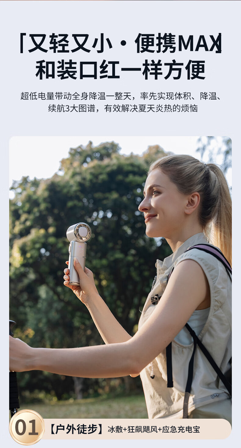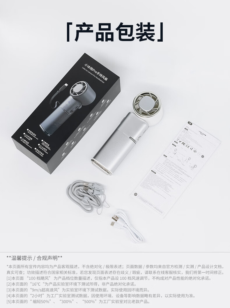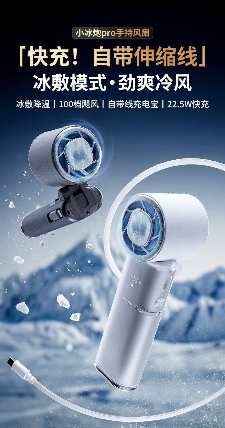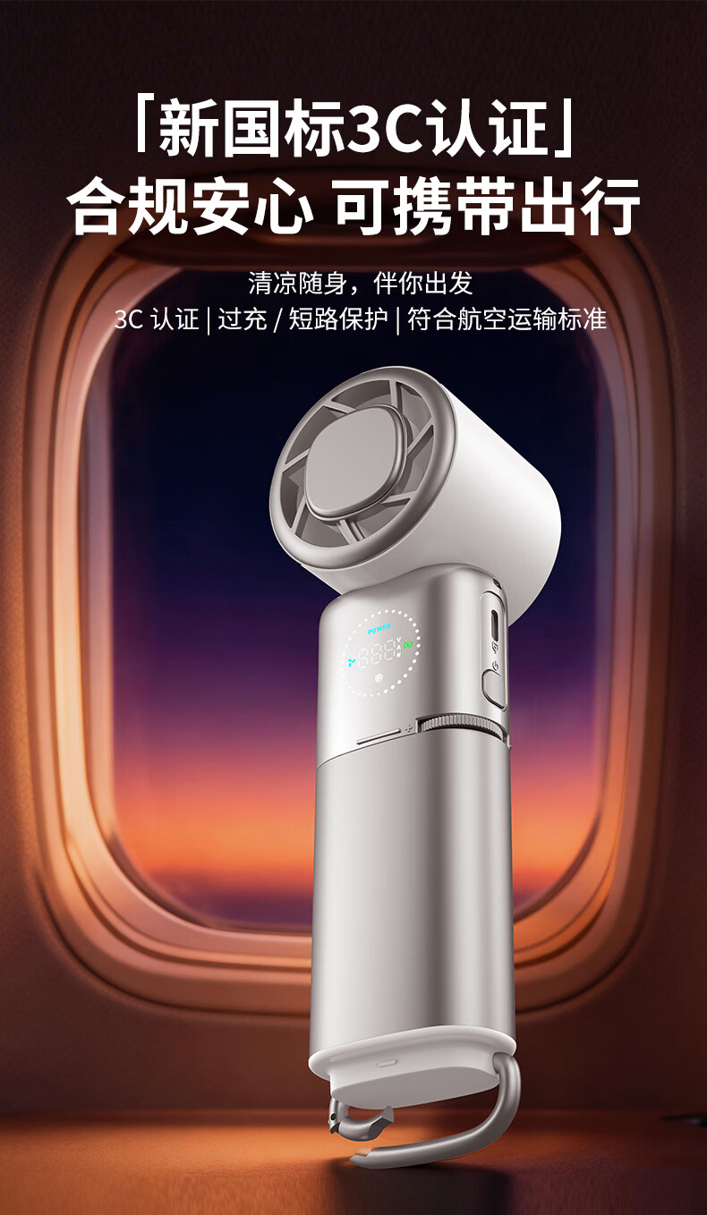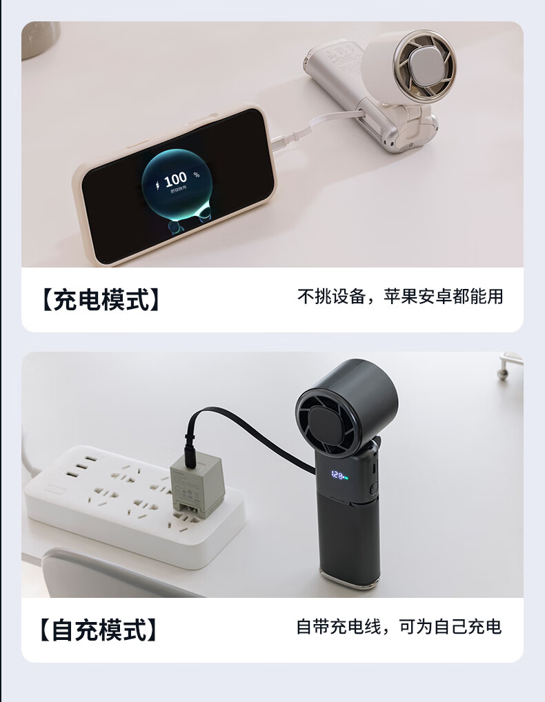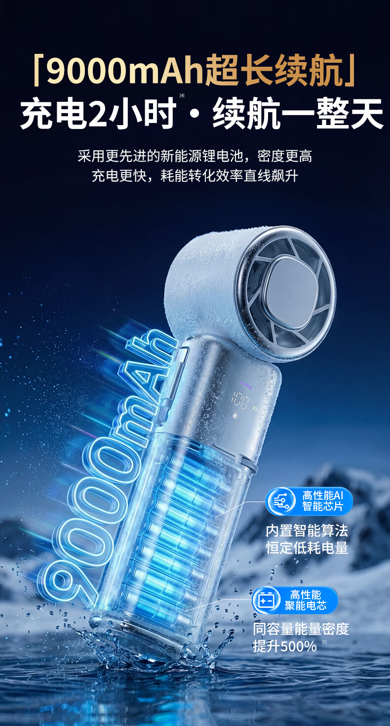 New For2026新款手持小风扇半导体制冷冰敷便携式usb风扇折叠挂脖挂绳户外长续航充电宝小风扇小型电风扇 银白色 9000mAh
