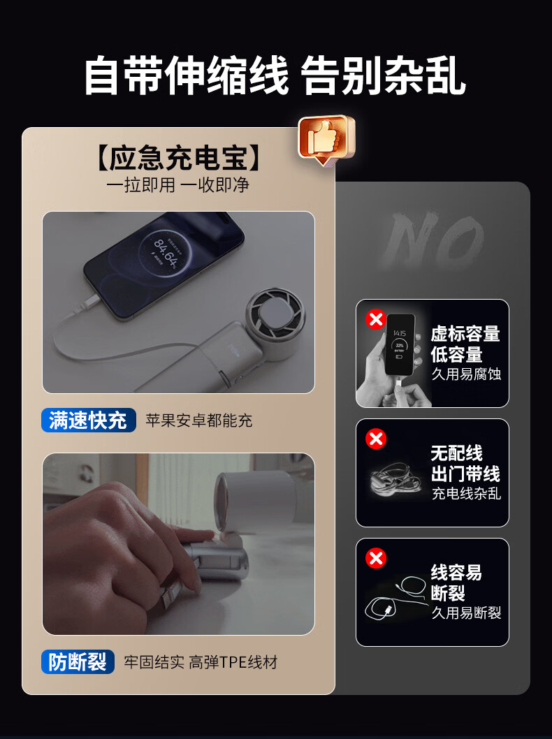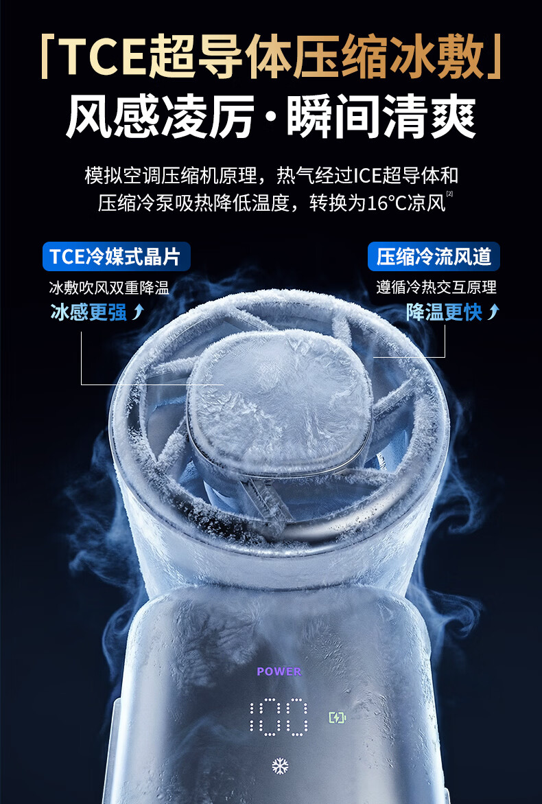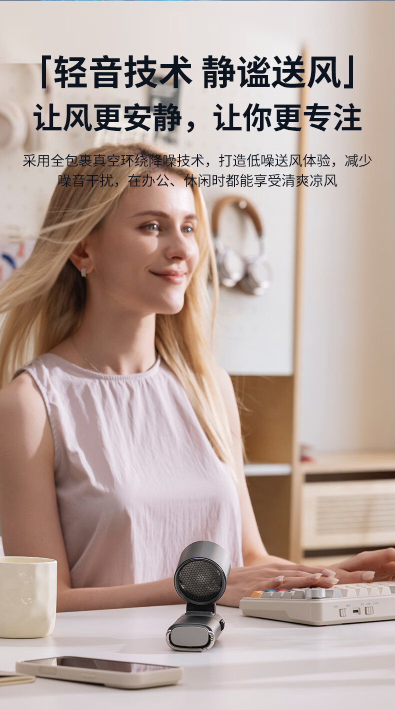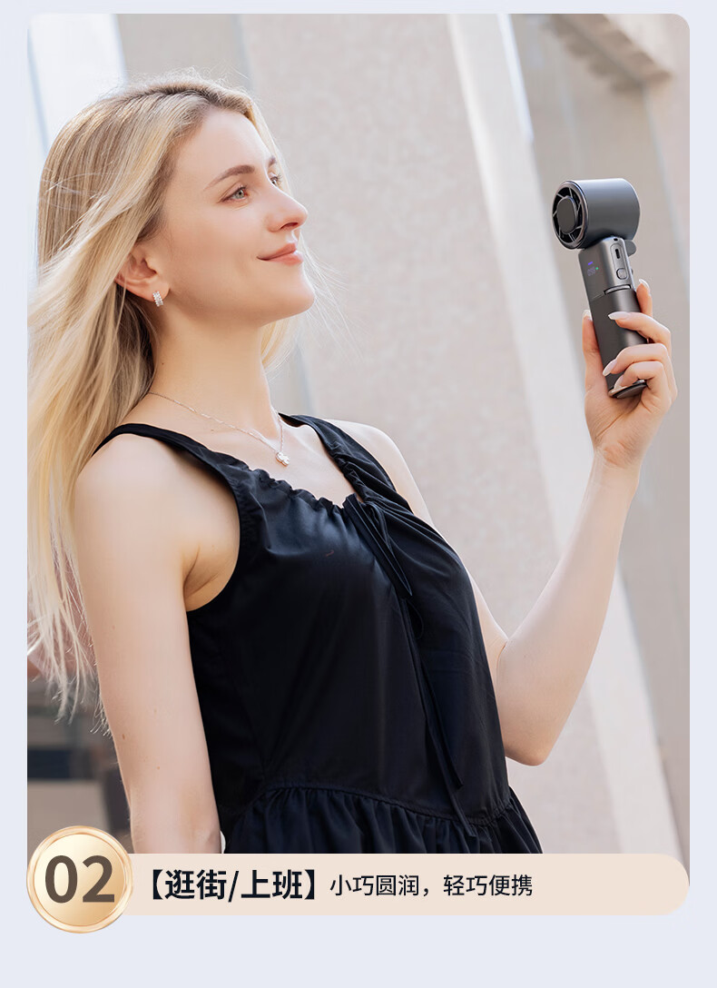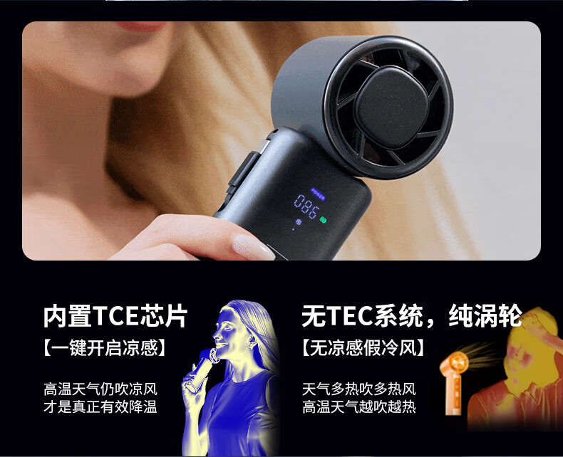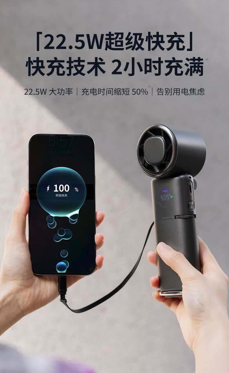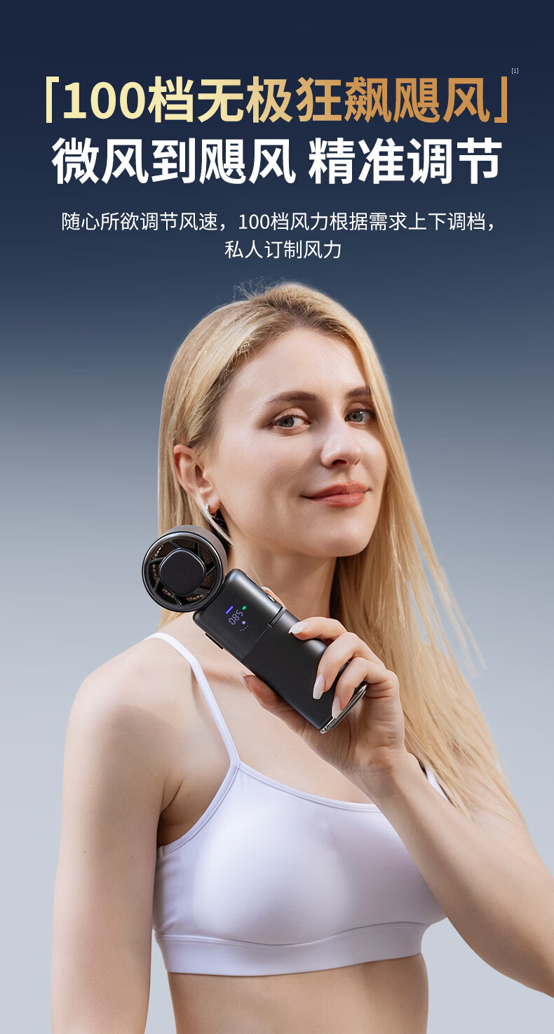 New For2026新款手持小风扇半导体制冷冰敷便携式usb风扇折叠挂脖挂绳户外长续航充电宝小风扇小型电风扇 银白色 9000mAh