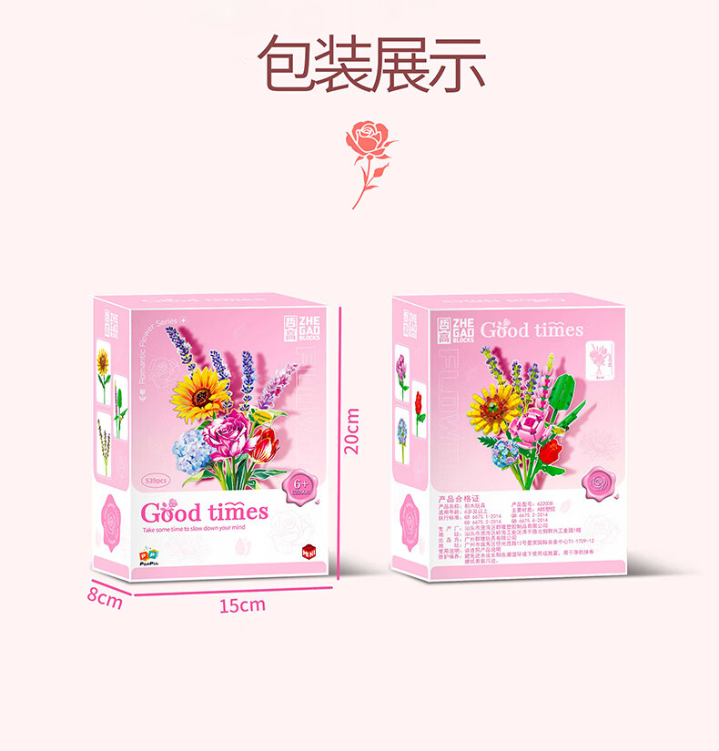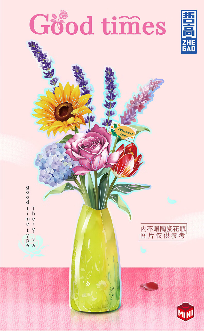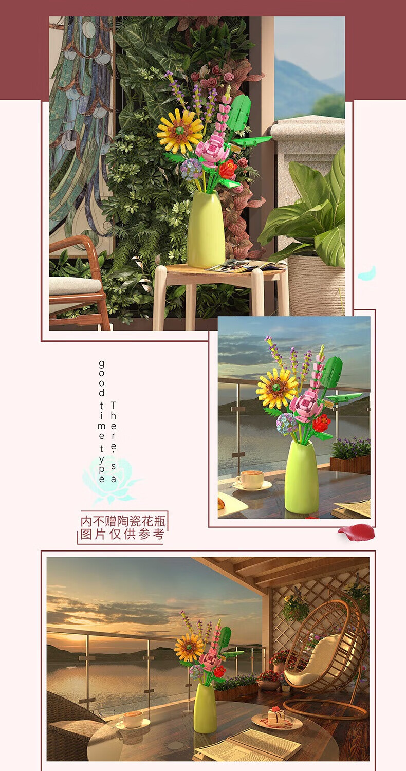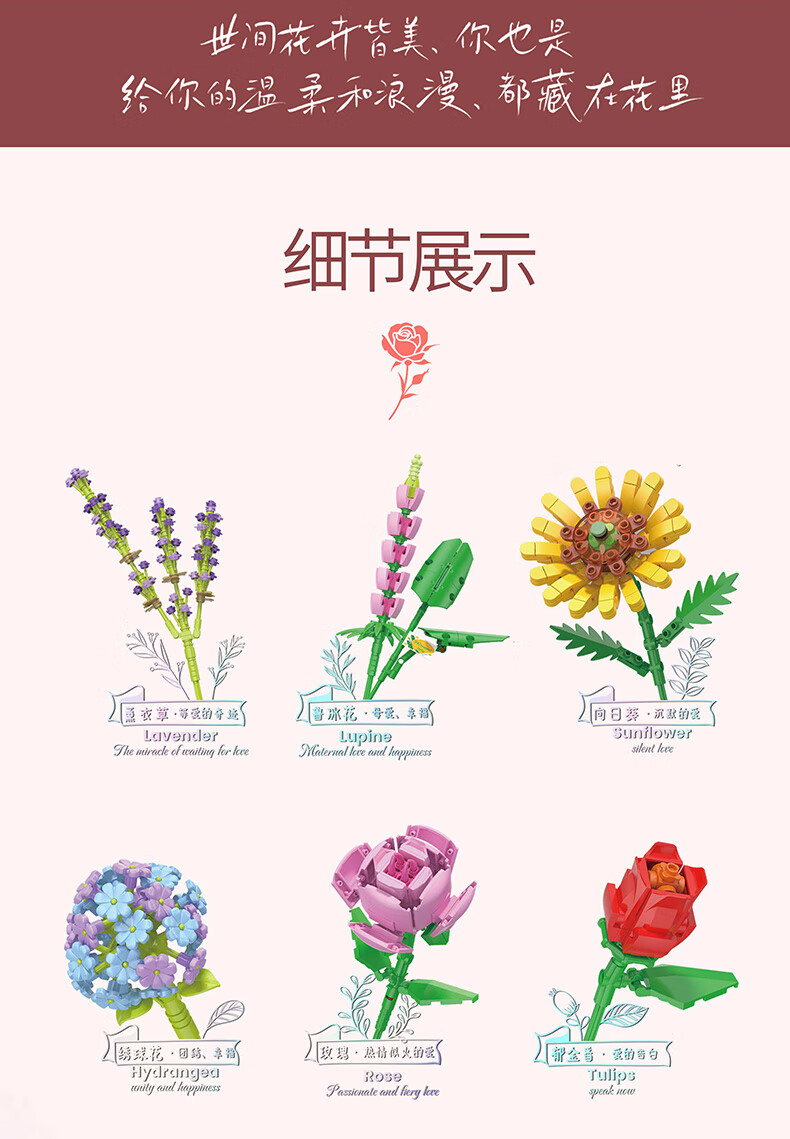 哲高女神节礼物积木花束永生花拼装花卉摆件装饰送女生闺蜜伴手治愈 朦胧之心(带陶瓷花瓶)