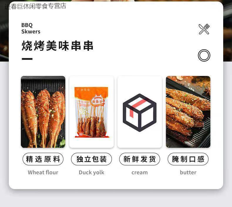 I新鲜网红夜猫子小黄鱼串鲜活冷冻半成品商用烧烤小吃1桶1600g 小黄鱼1袋20串