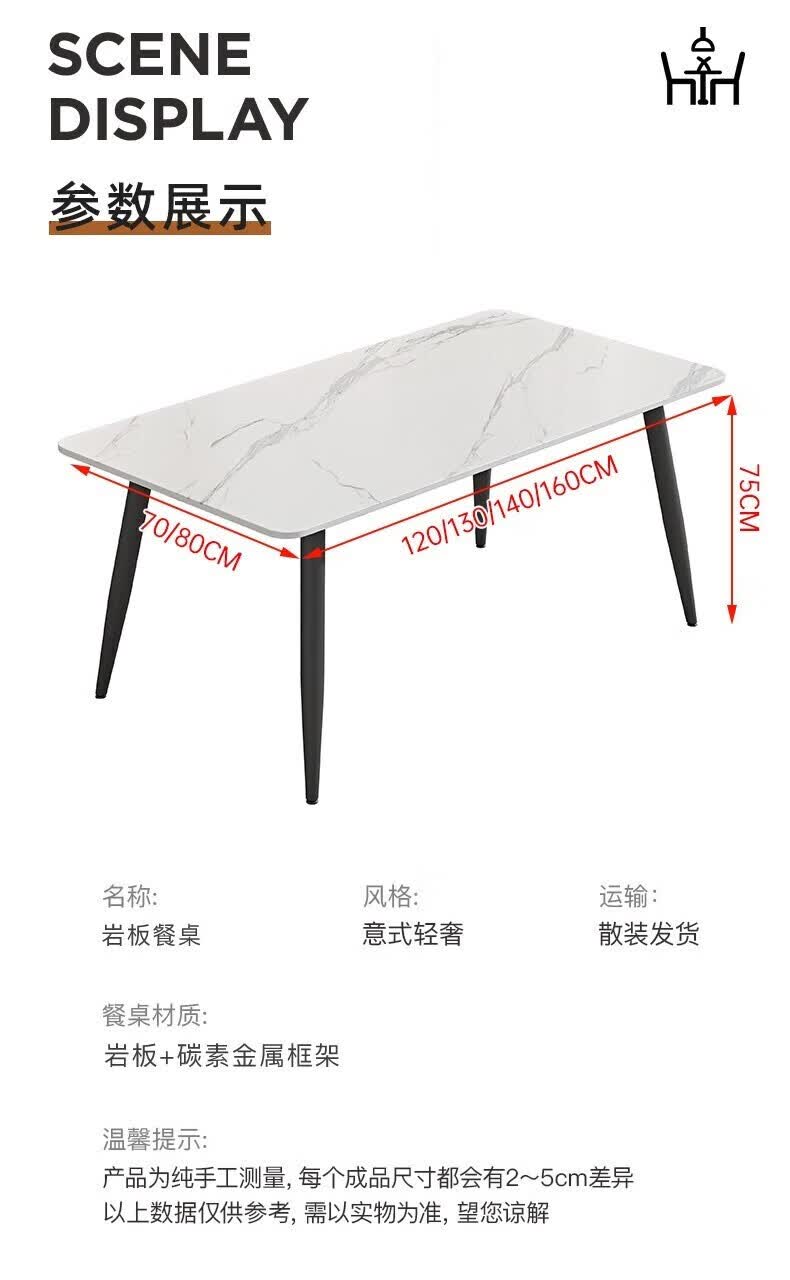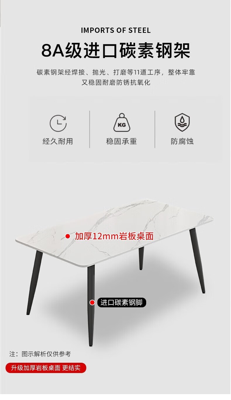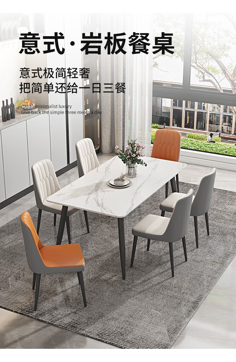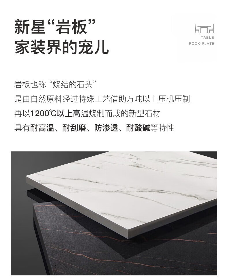岩板餐桌家用餐桌椅组合现代简约吃饭桌子小户型长方形餐桌子轻奢 120*70亮光白12mm加厚岩板 单桌