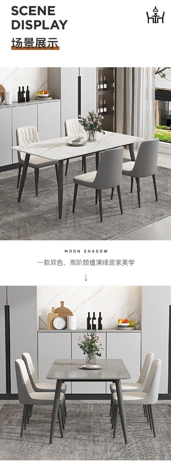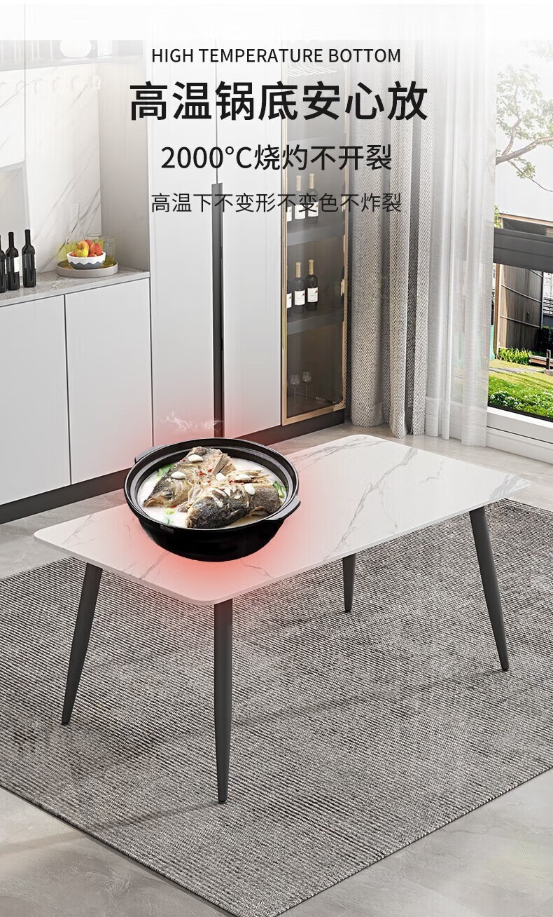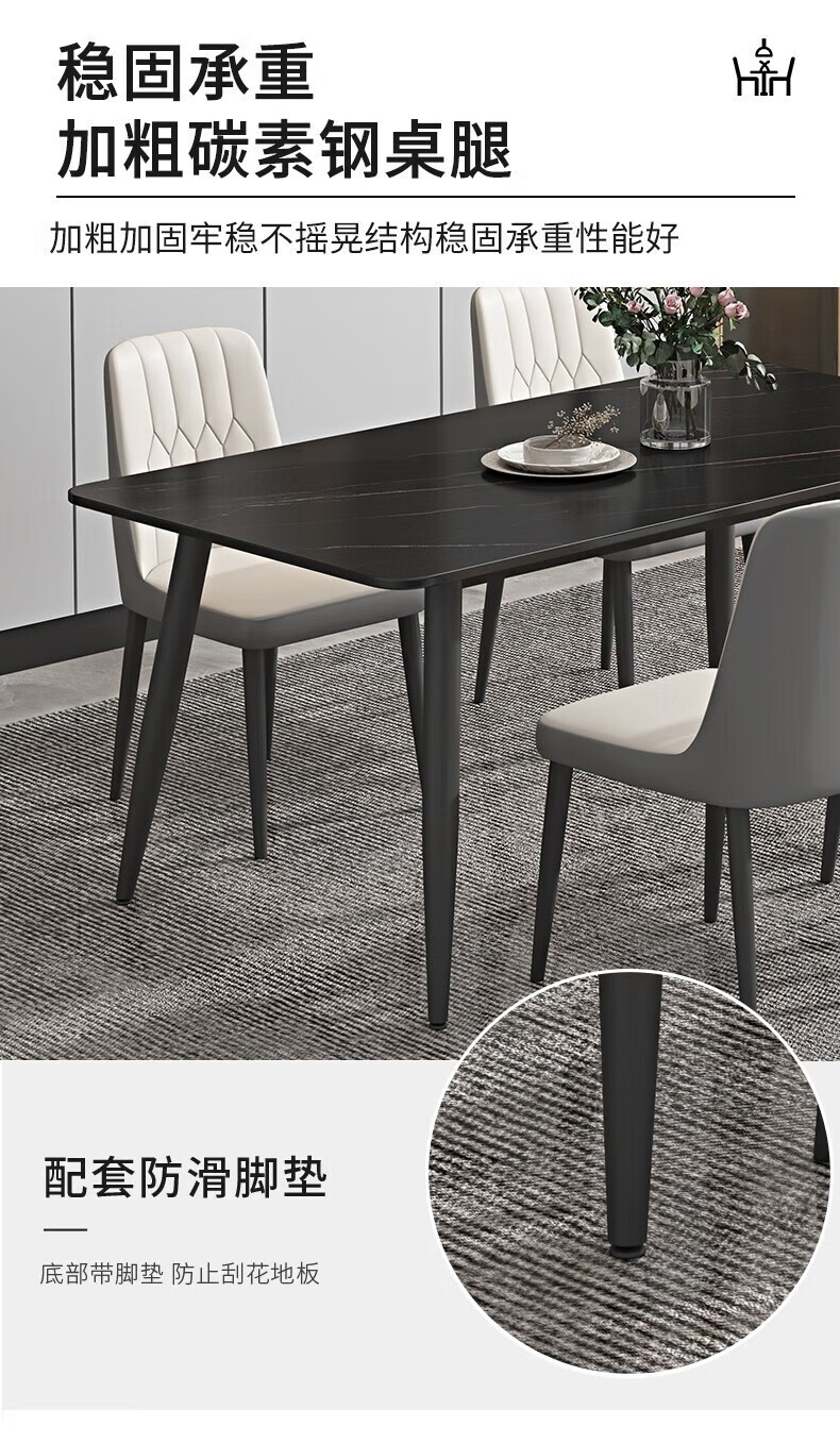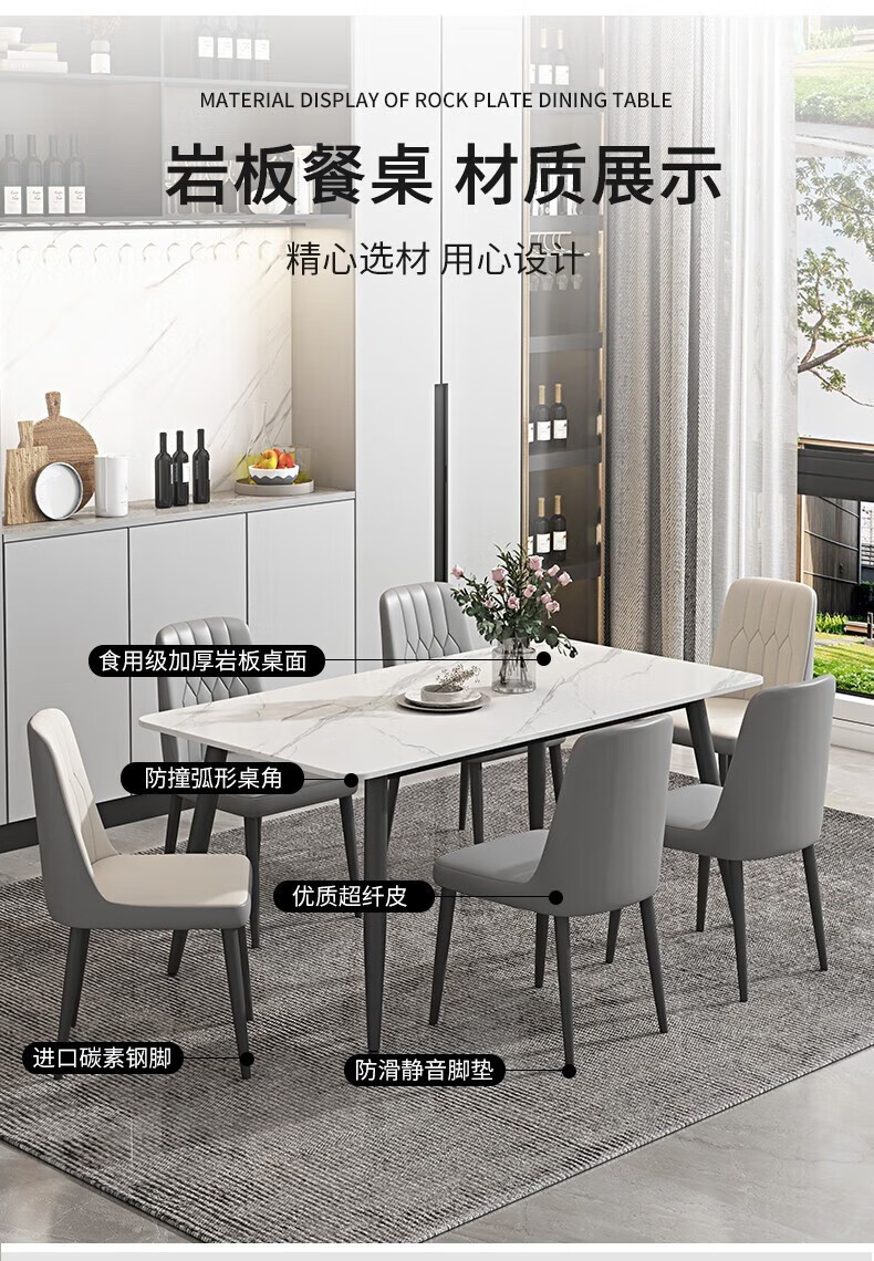 岩板餐桌家用餐桌椅组合现代简约吃饭桌子小户型长方形餐桌子轻奢 120*70亮光白12mm加厚岩板 单桌