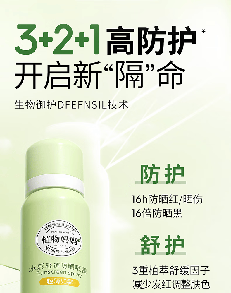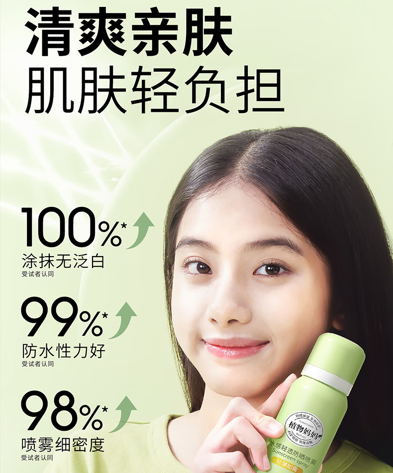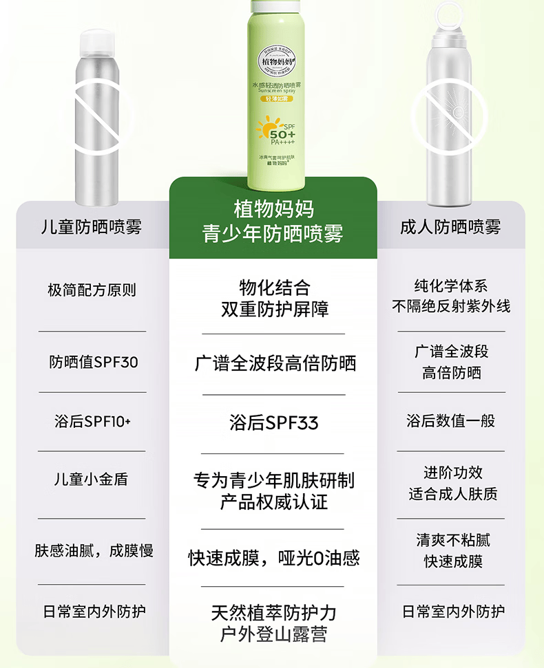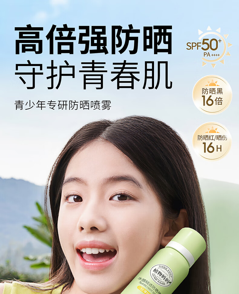 植物妈妈青少年儿童防晒喷雾SPF50防汗户外军训12-18岁专用可上飞机 100ml