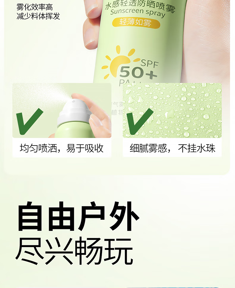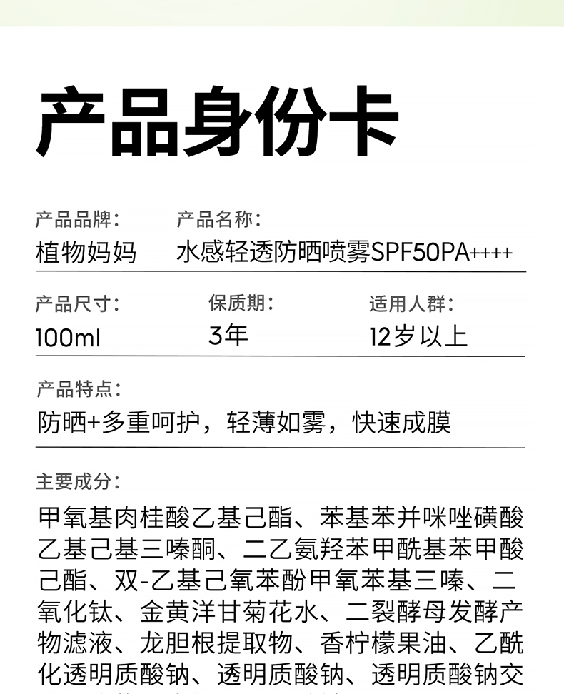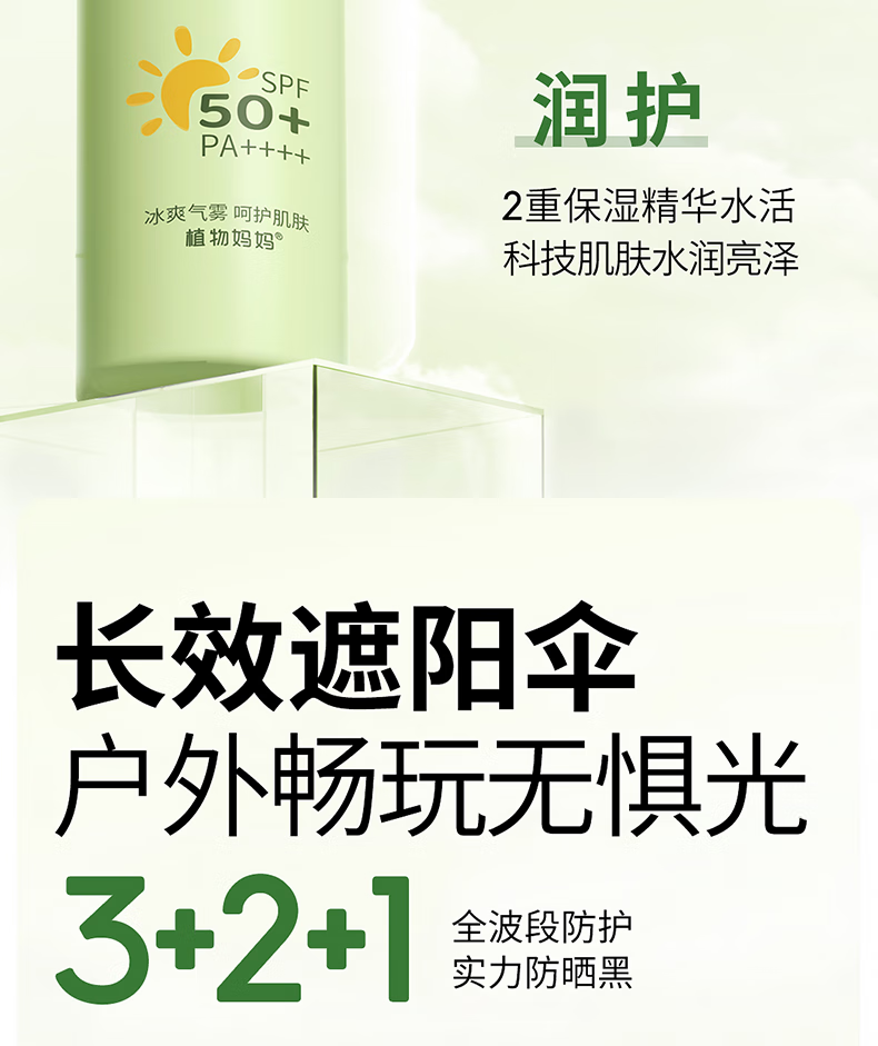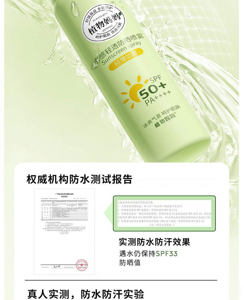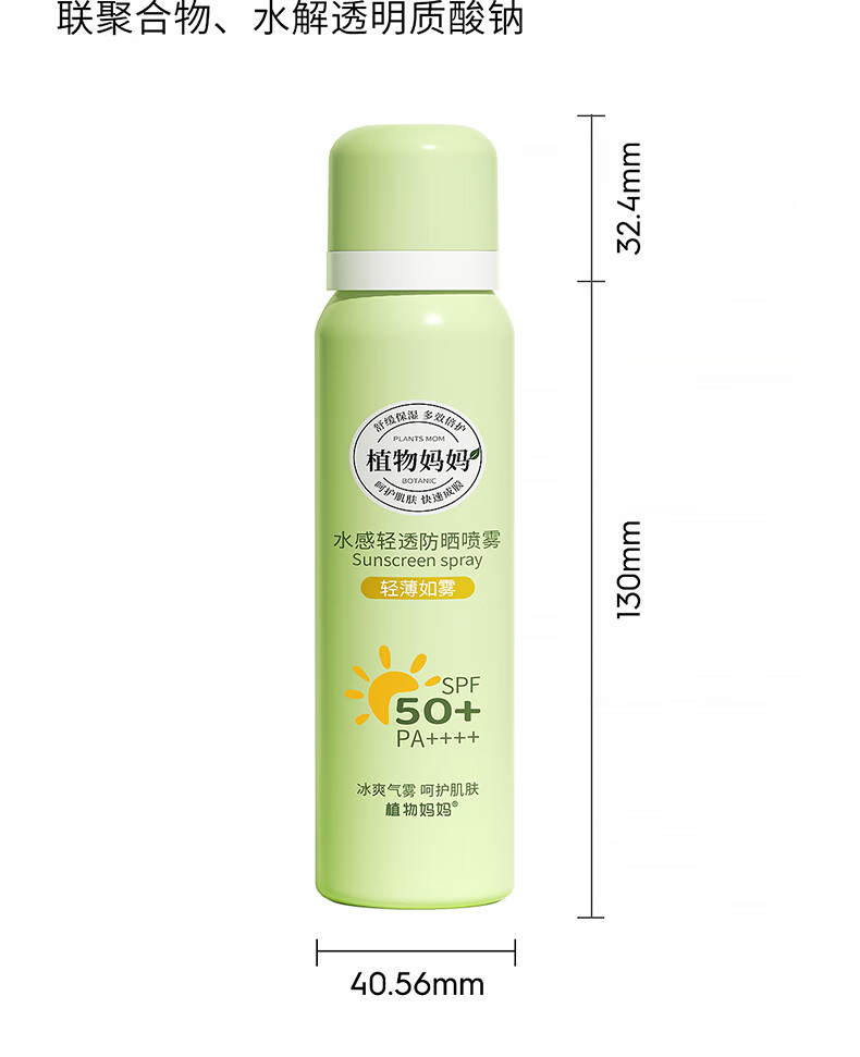 植物妈妈青少年儿童防晒喷雾SPF50防汗户外军训12-18岁专用可上飞机 100ml