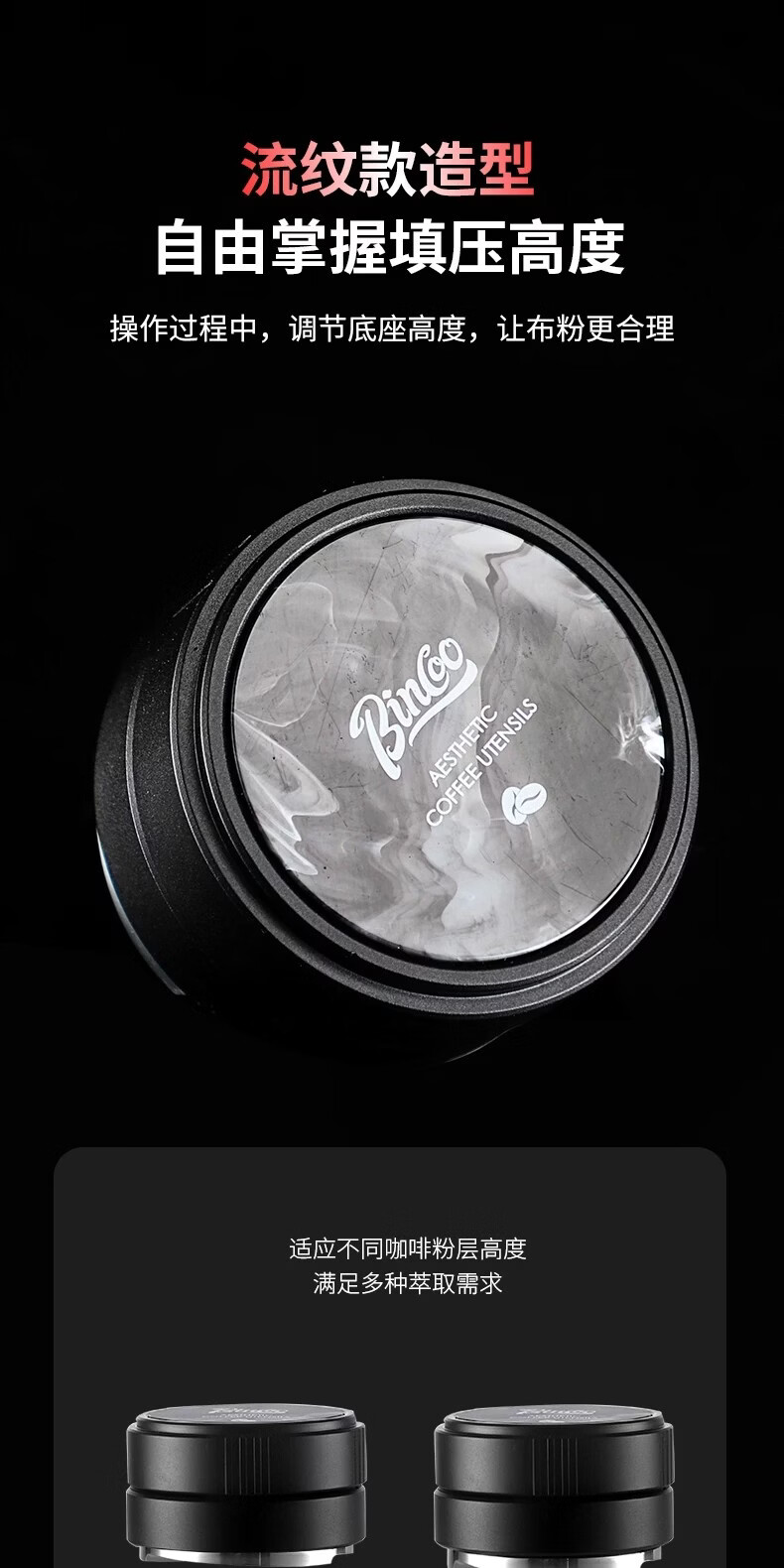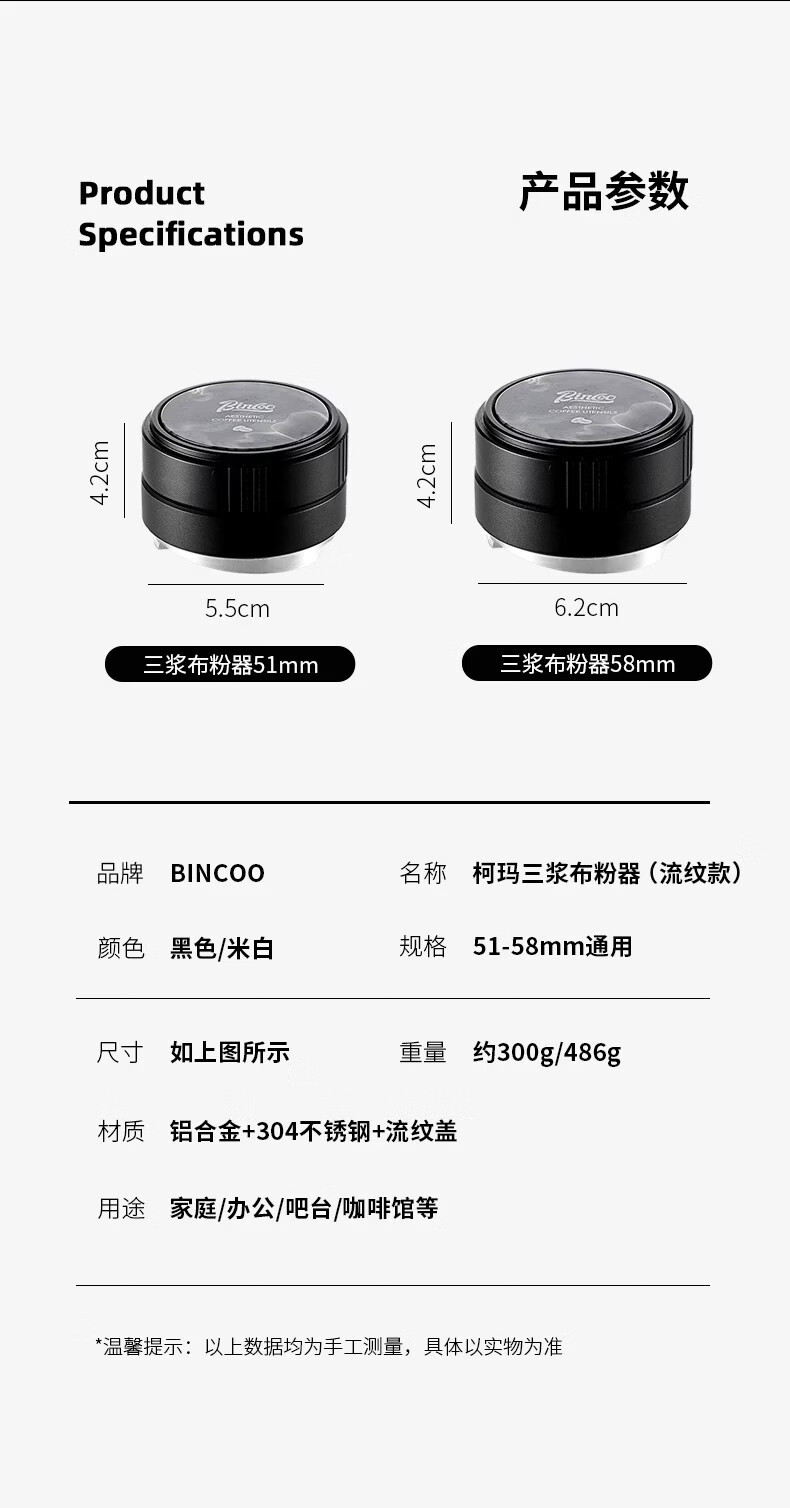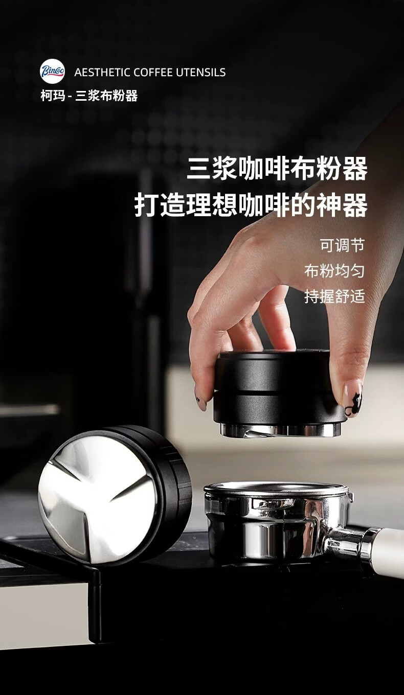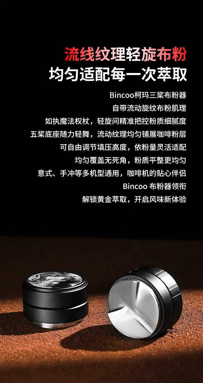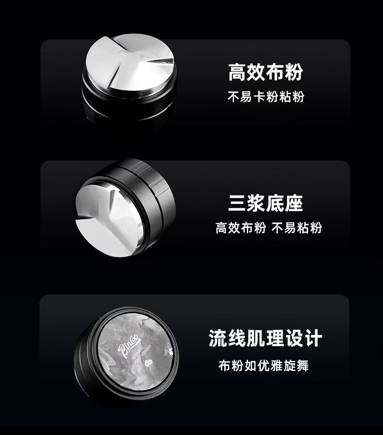 Bincoo意式三浆布粉器不锈钢 51/58mm通用咖啡器具配件意式压粉器 柯玛三浆布粉器-流纹款 51mm