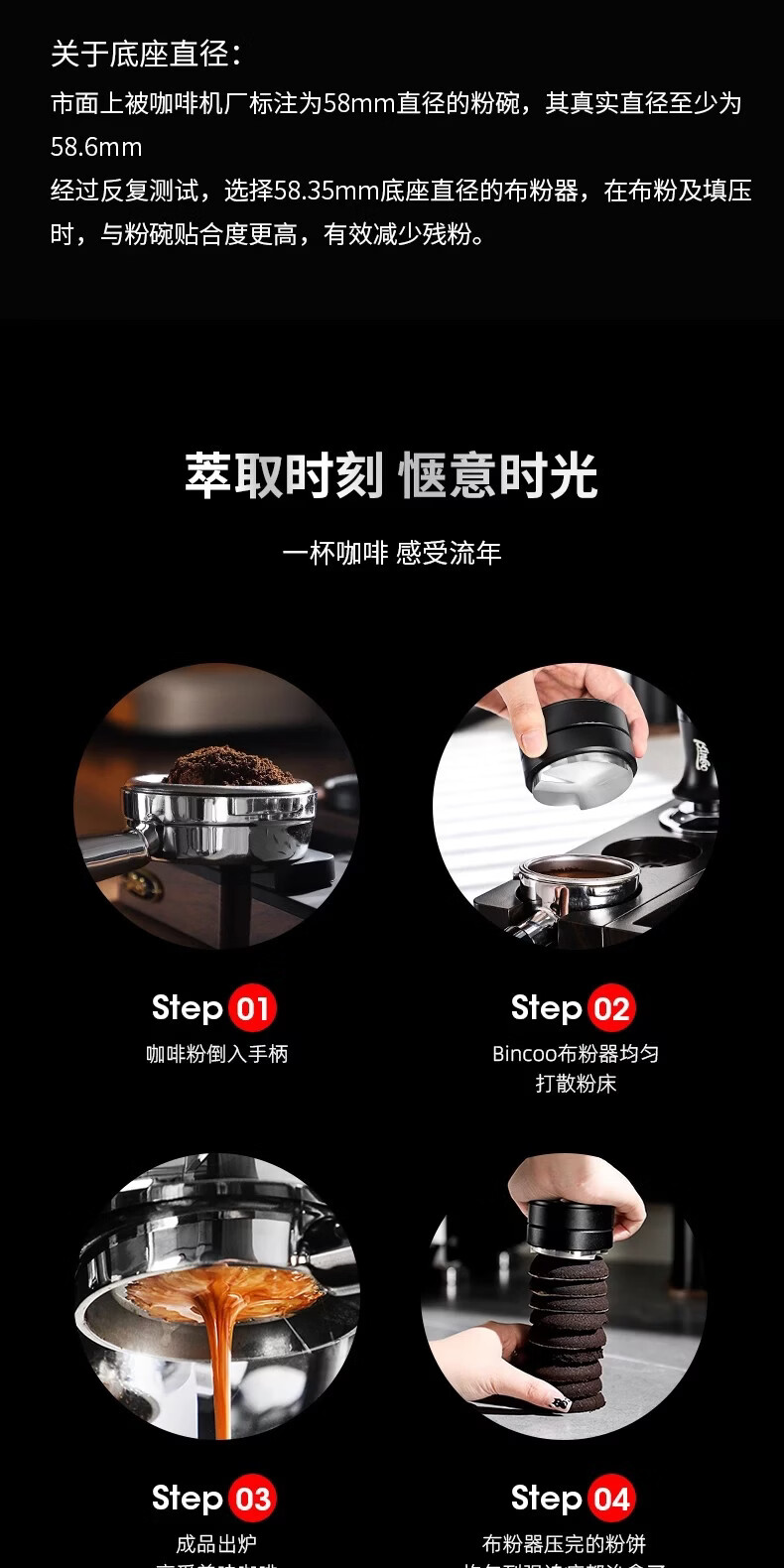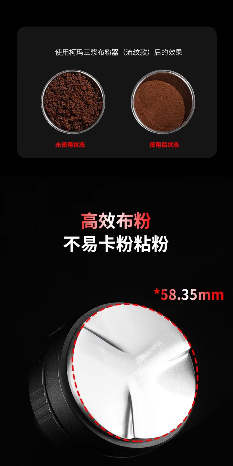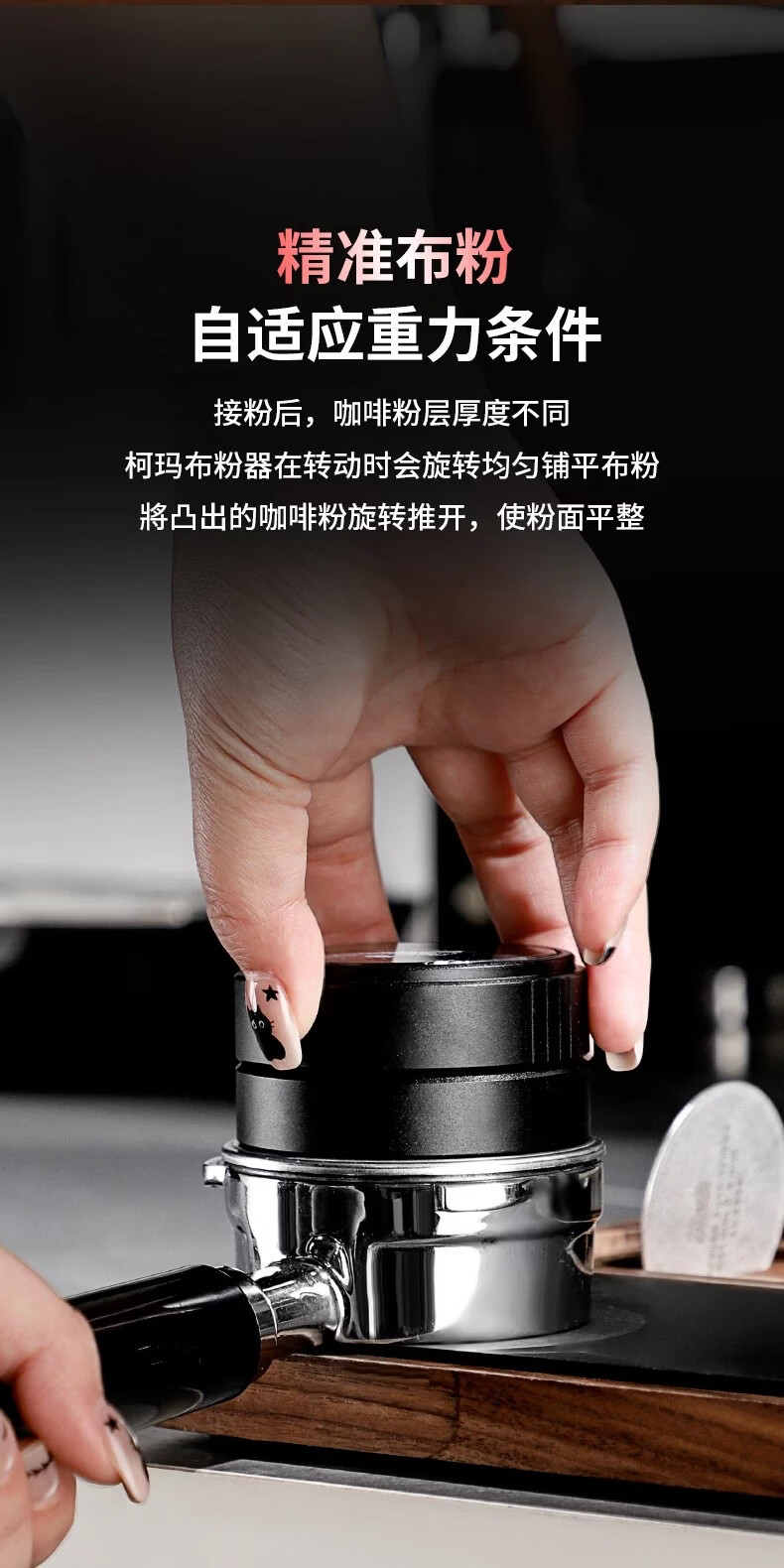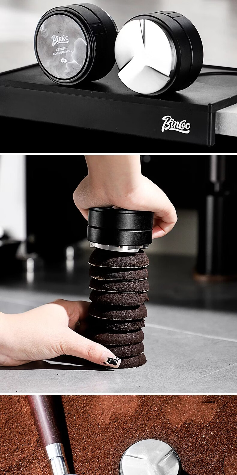 Bincoo意式三浆布粉器不锈钢 51/58mm通用咖啡器具配件意式压粉器 柯玛三浆布粉器-流纹款 51mm