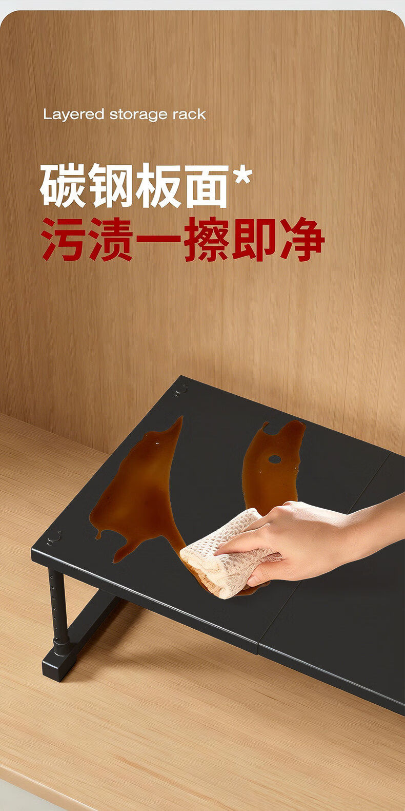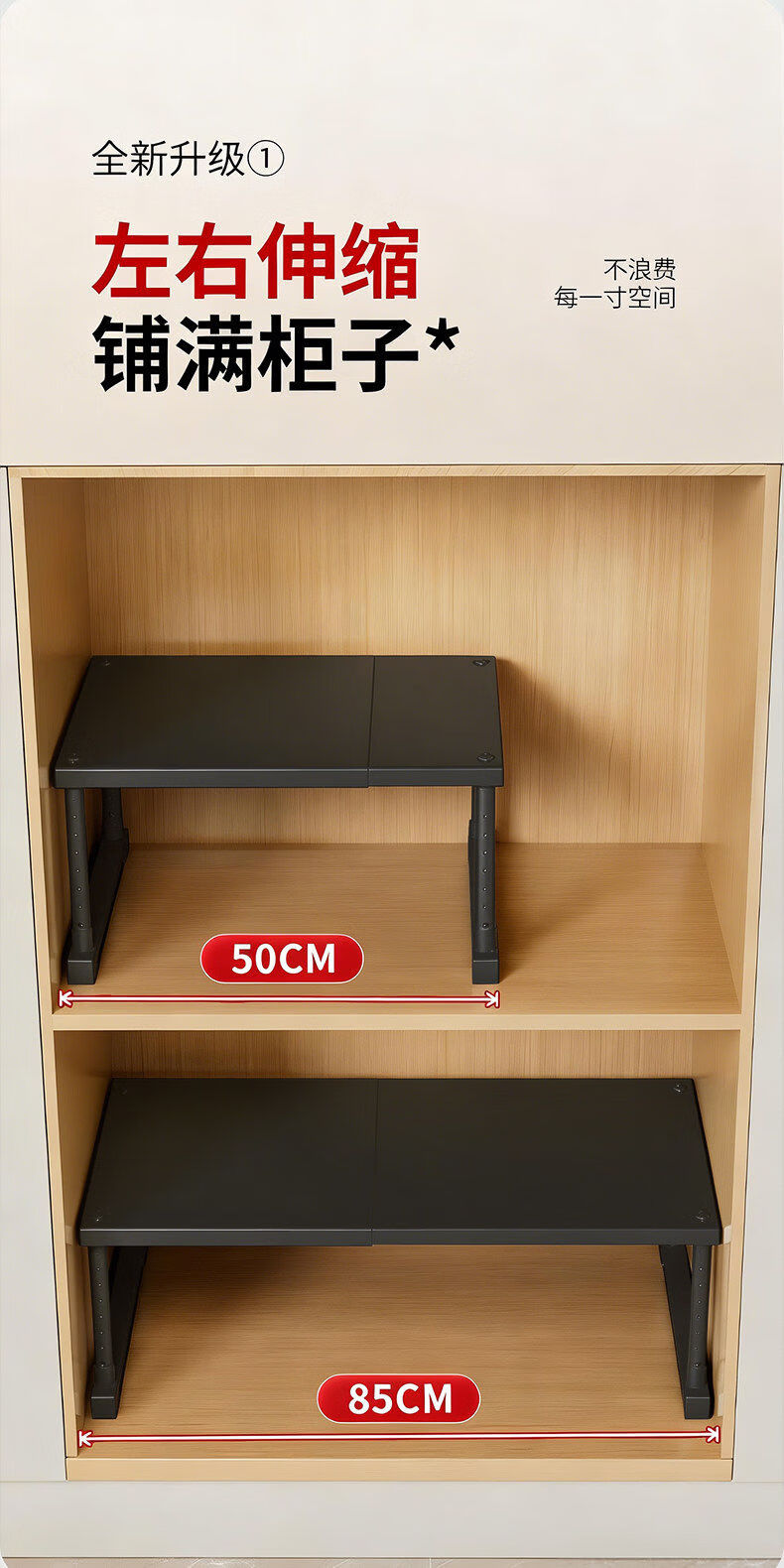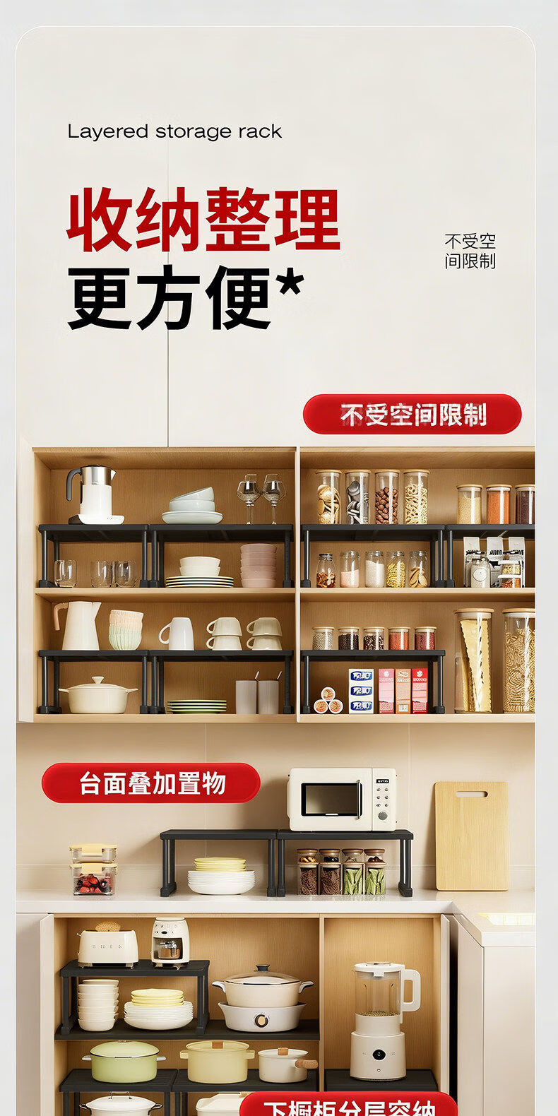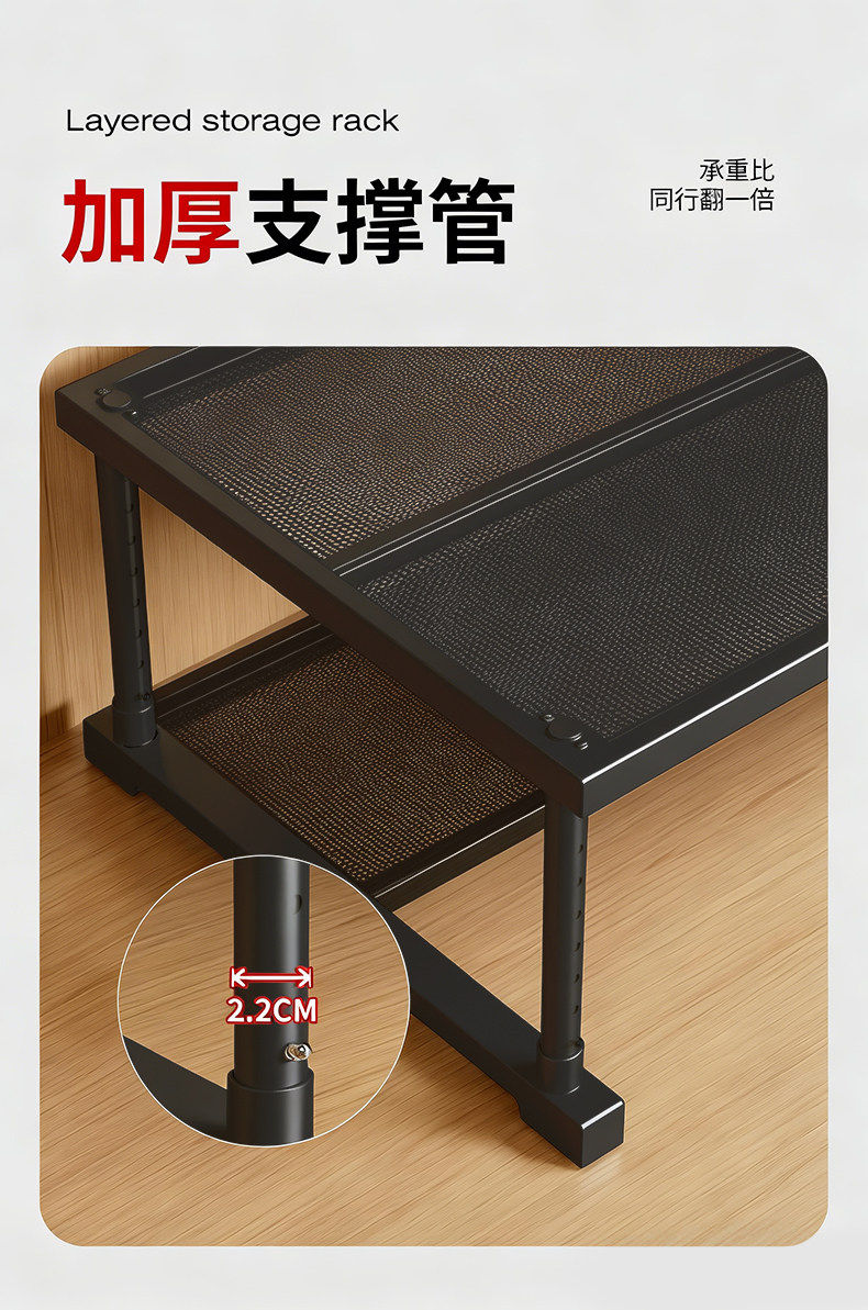 艾仕可(ASCOR)厨房微波炉置物架多功能下水槽橱柜内伸缩分层隔板台面多层收纳架 磨砂黑/长27-42/宽24高25-35cm【加厚碳钢-稳固不晃】
