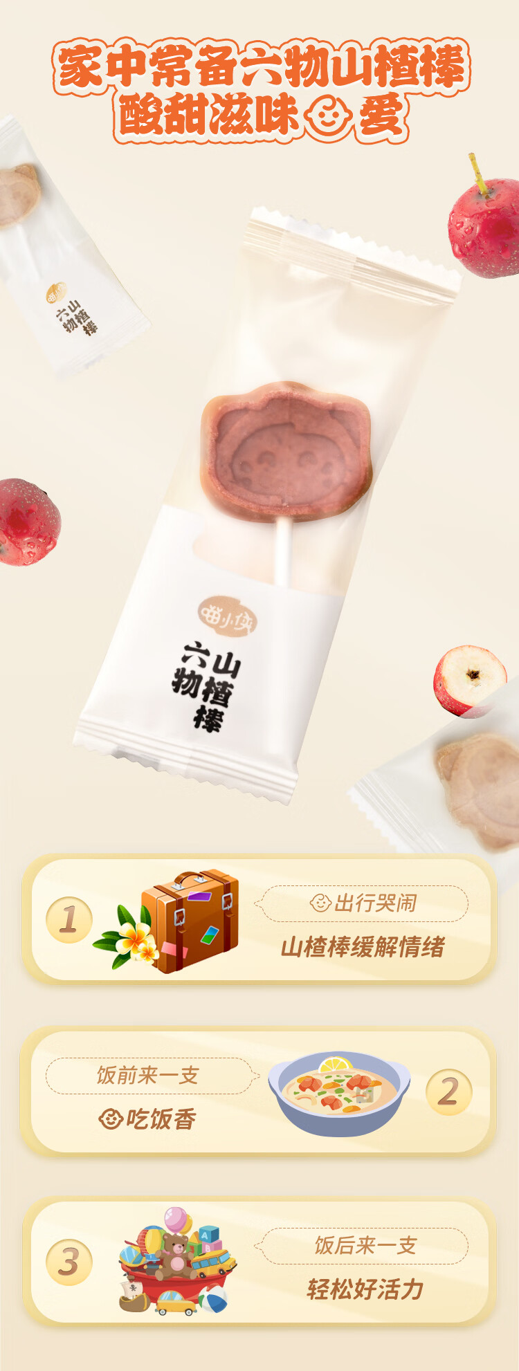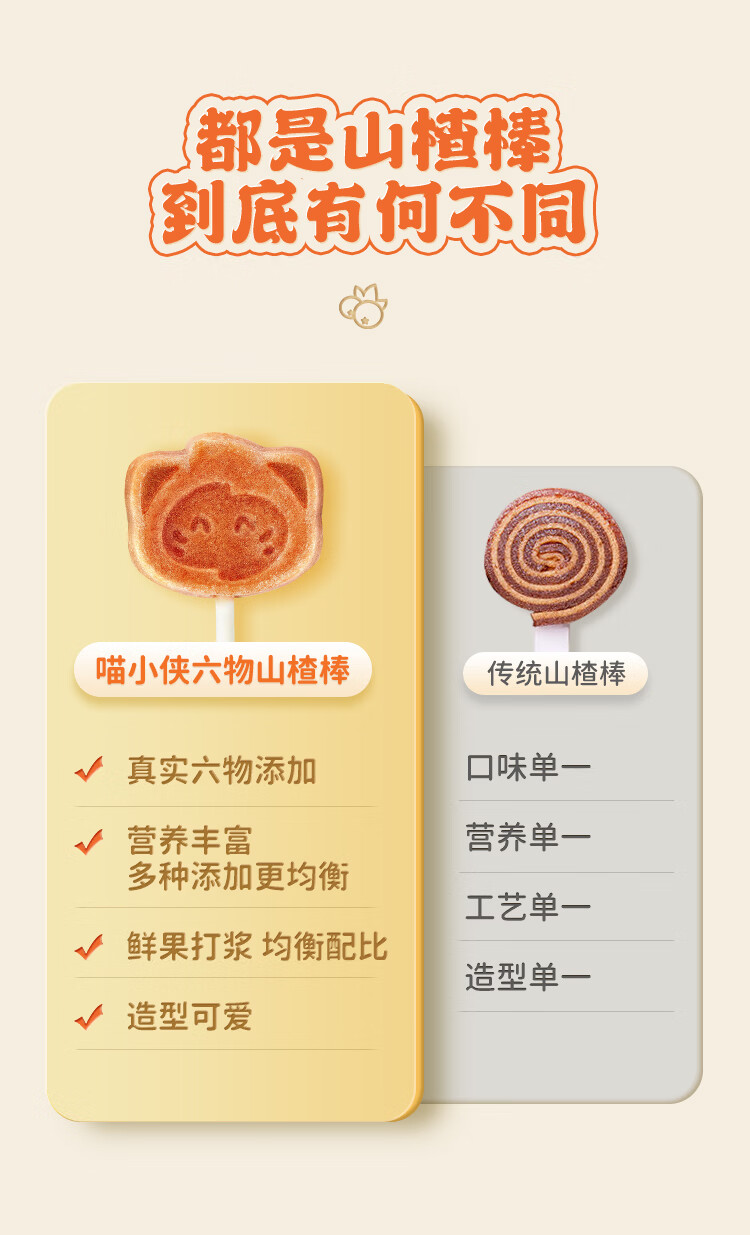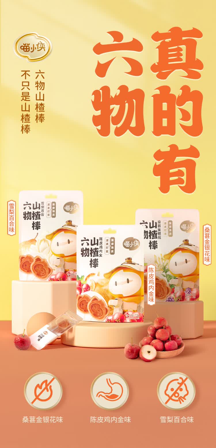 喵小侠儿童金银花山楂棒棒糖零食水果棒,送宝宝婴儿幼儿辅食食谱 六物山楂棒雪梨百合*2袋