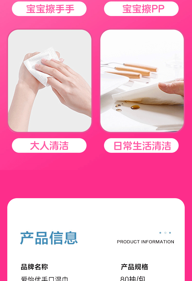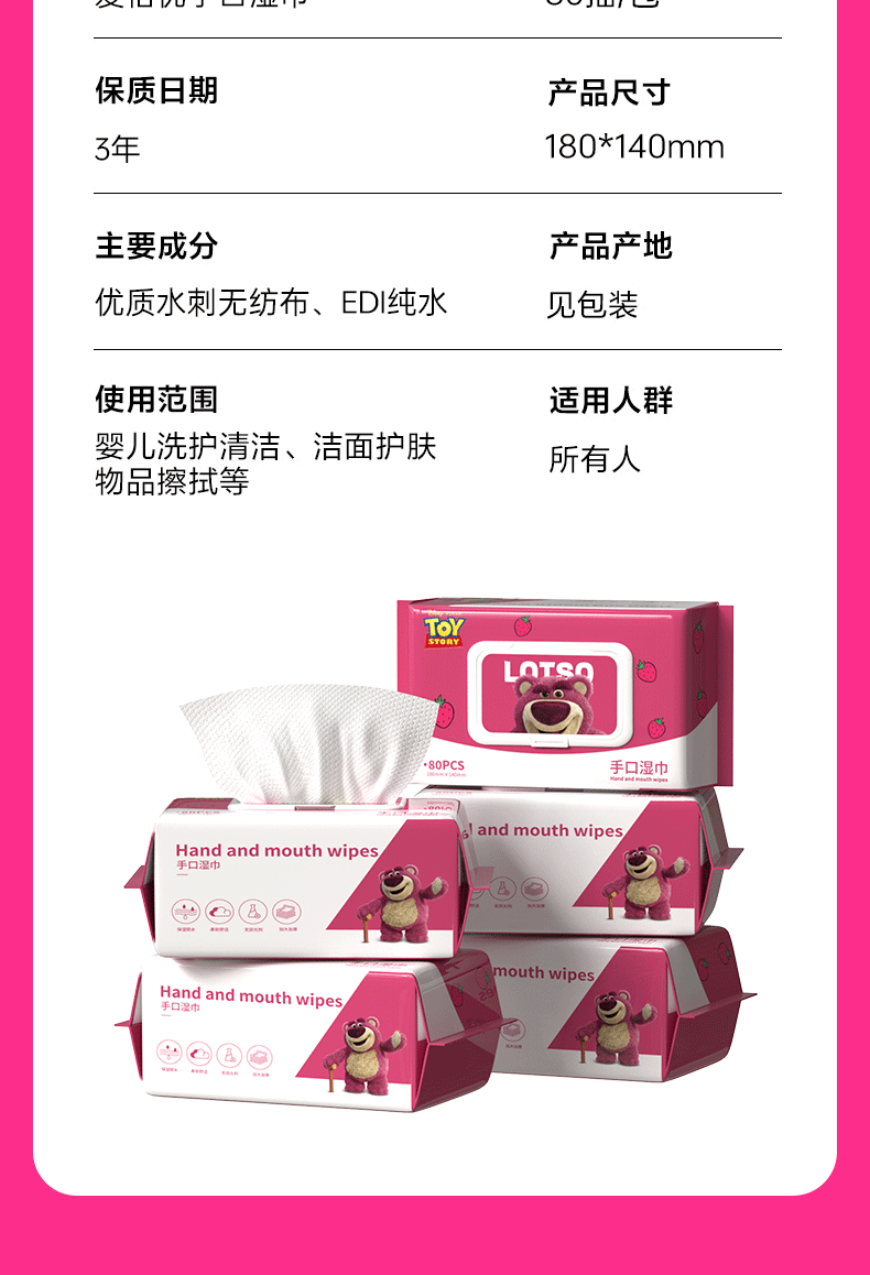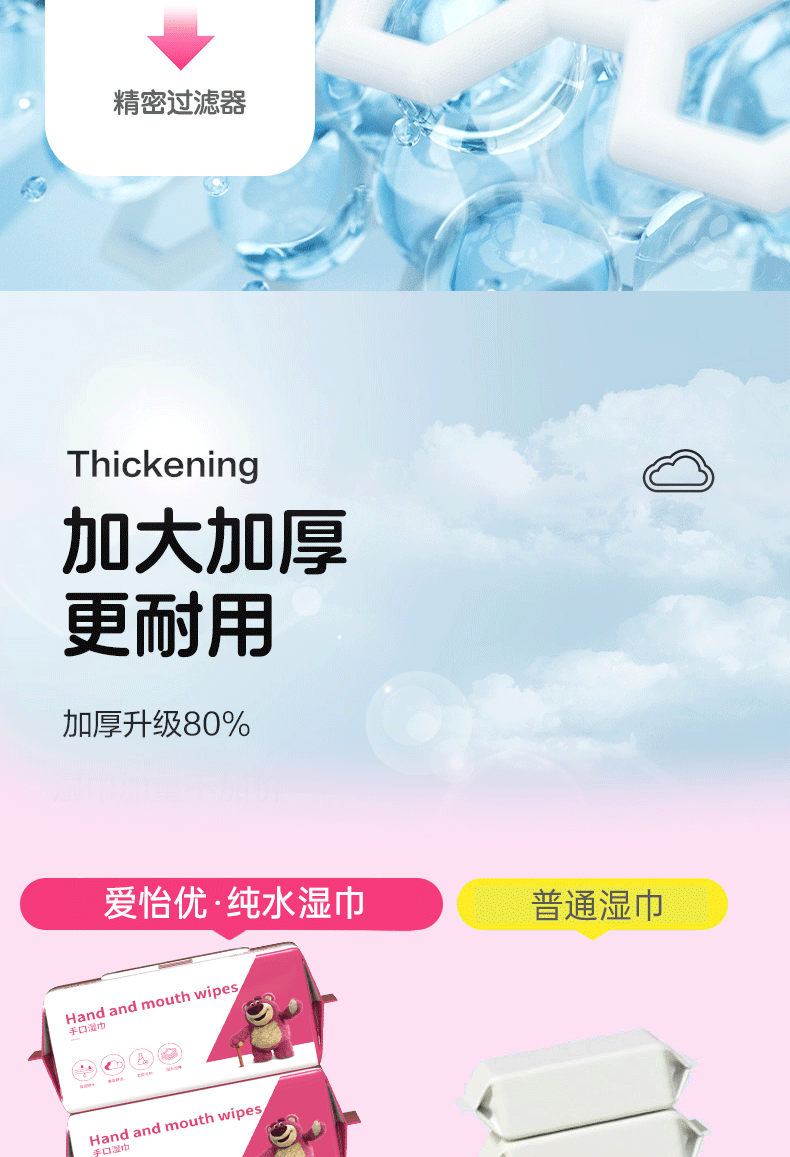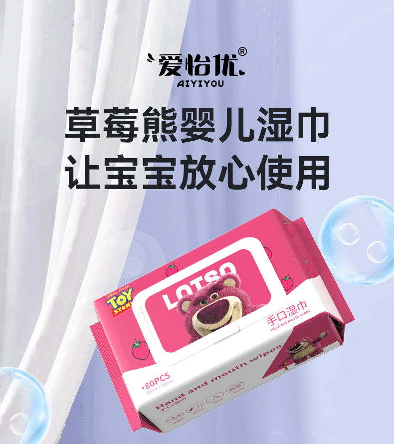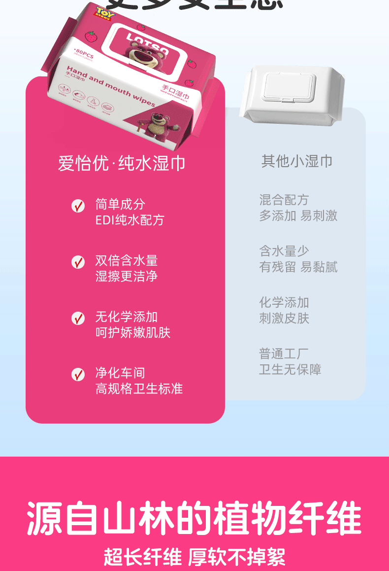 爱怡优×迪士尼联名 湿巾 80抽/包 EDI纯水 儿童手口湿纸巾婴幼儿湿巾纸 【180*140】80抽10包