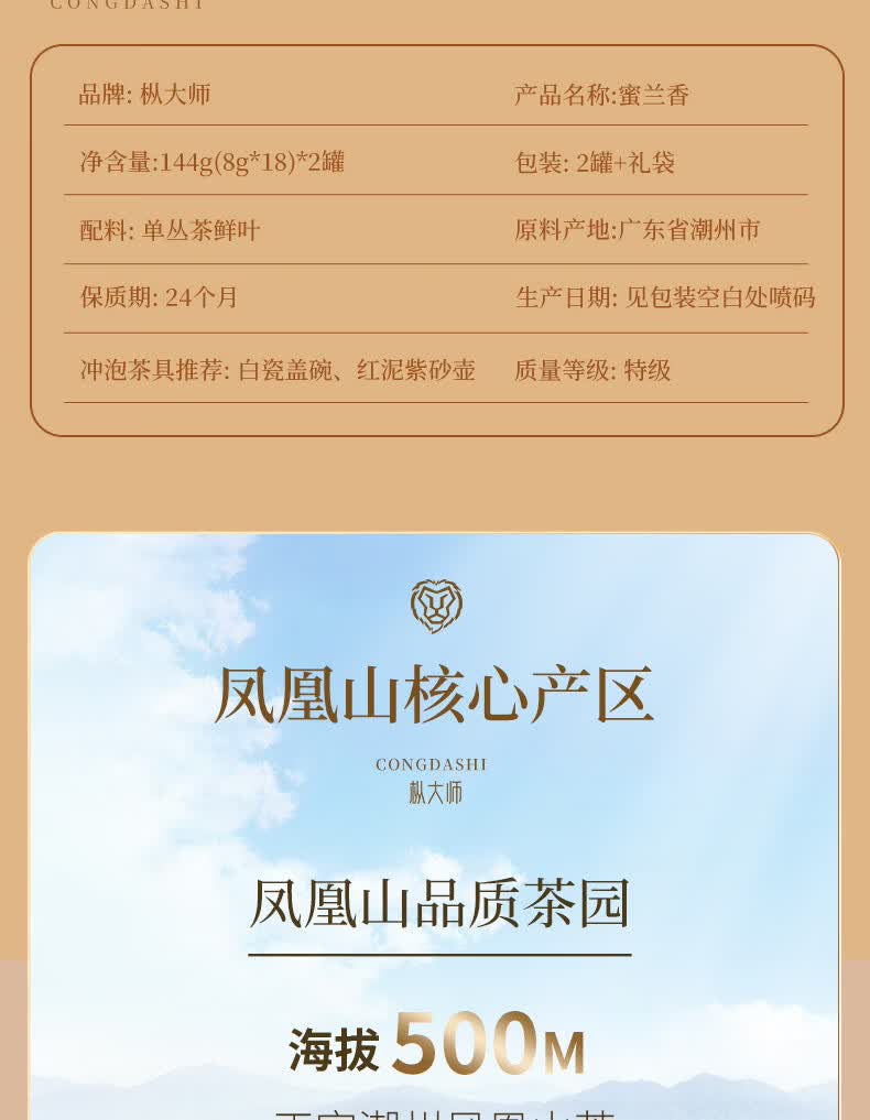 枞大师乌龙茶口粮凤凰单丛蜜兰香特级288g足火罐装浓香单枞茶叶春茶