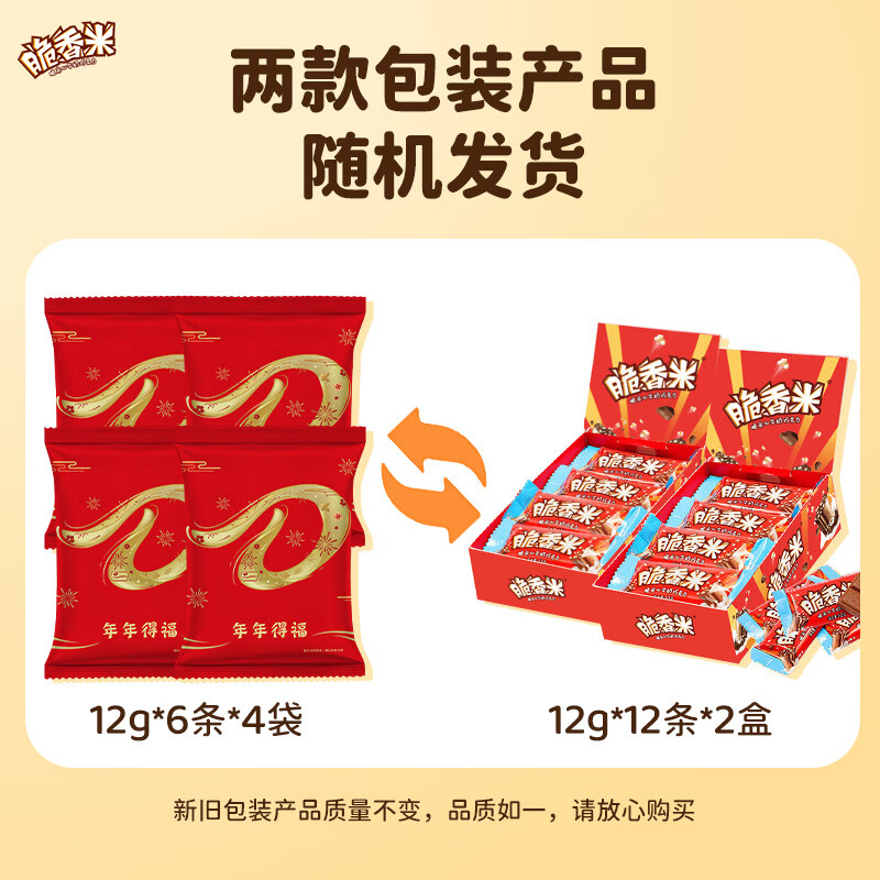 脆香米巧克力休闲零食婚庆喜糖果儿童解馋生日礼物办公充饥新旧包装随机 脆香米盒装144g*2