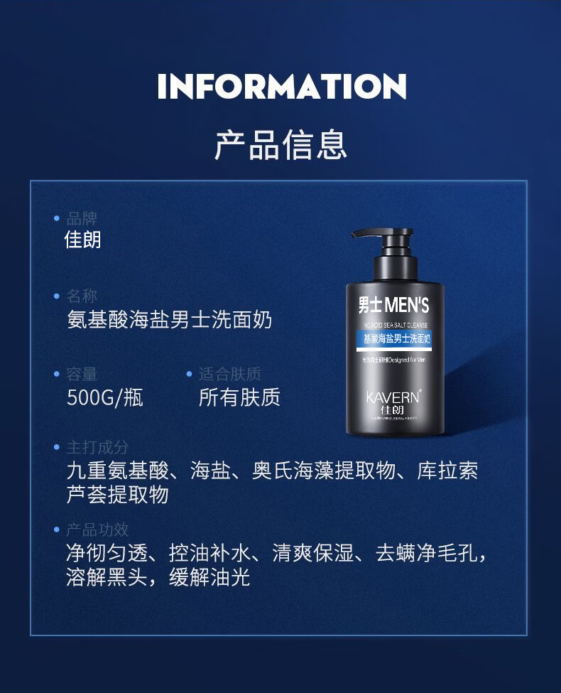 佳朗氨基酸洗面奶男士500毫升控油祛痘深层清洁加倍护理 男士洗面奶550g【两瓶装】
