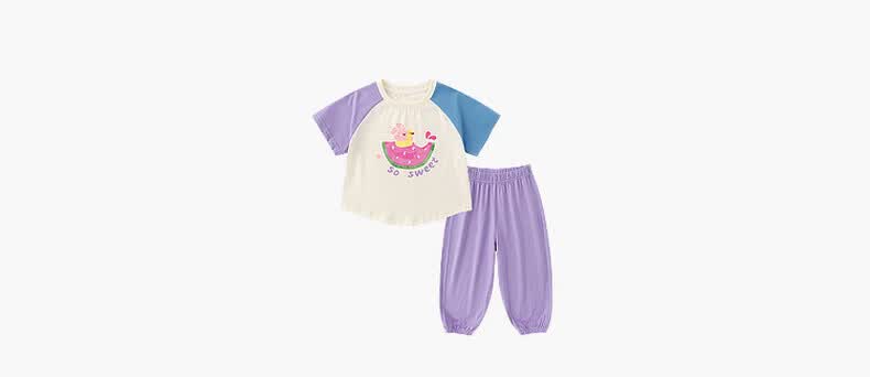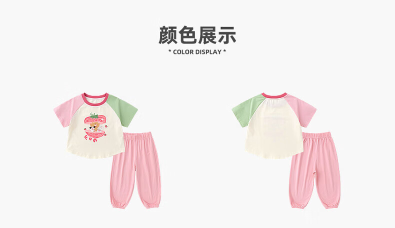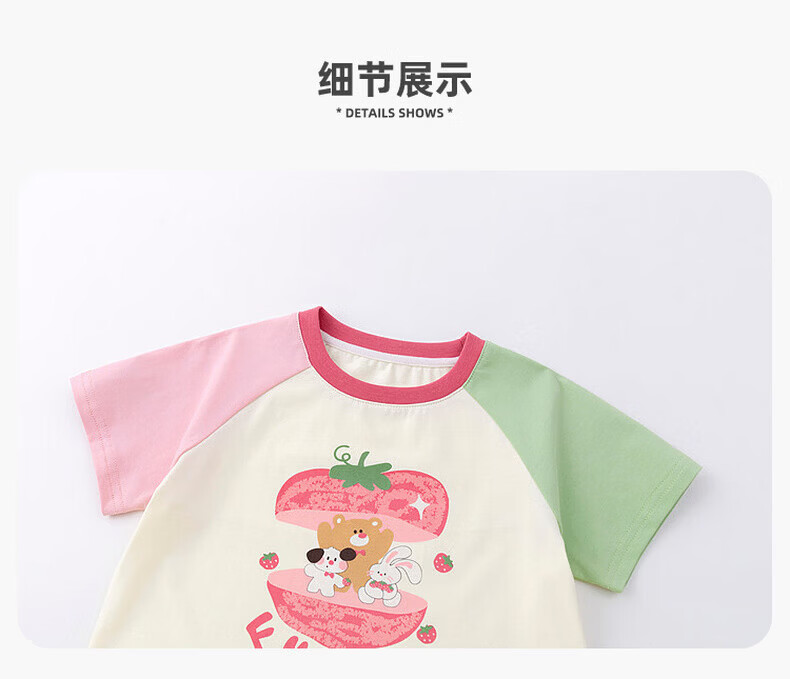 嘟嘟家女童套装卡通夏款女孩短袖裤子撞色夏装女宝两件套轻薄童装洋气潮 山茱萸粉 部分尺码预售 110
