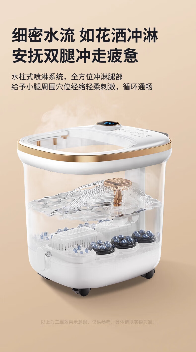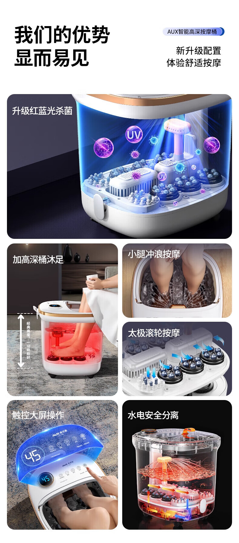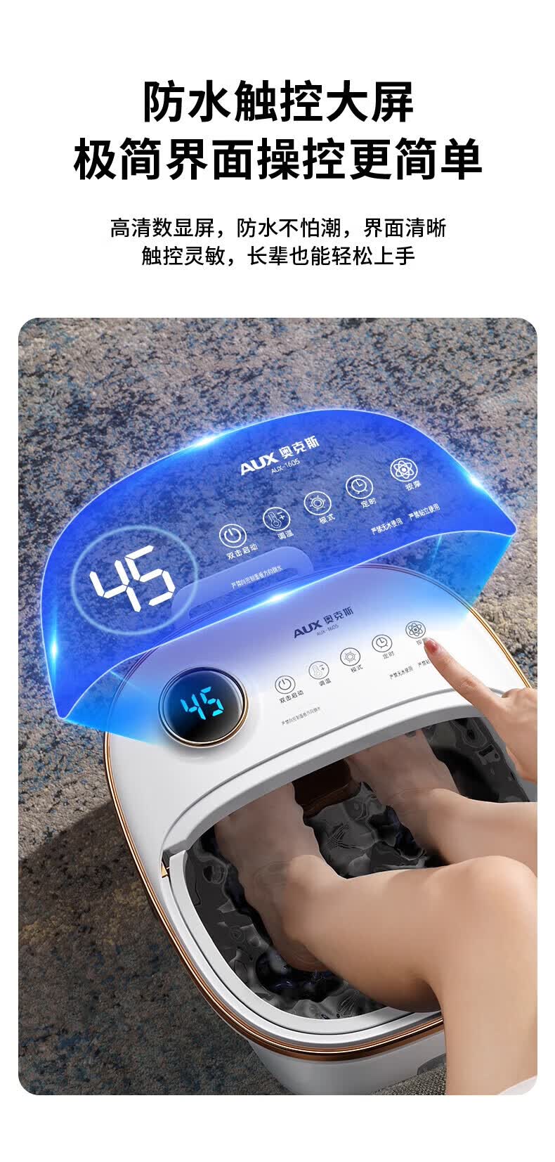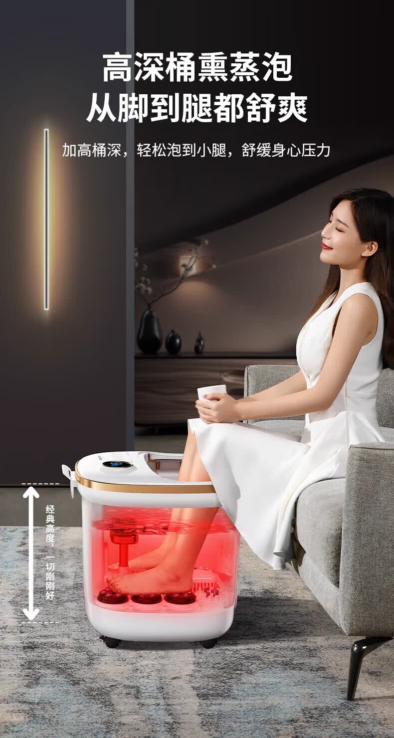 奥克斯泡脚桶足浴盆电动泡脚盆加热全自动按摩洗脚盆熏蒸一体智能恒温家用过膝足疗高深桶情人节礼物实用 【顶配升级款】电动滚轮+花洒淋浴+全覆盖足底按摩