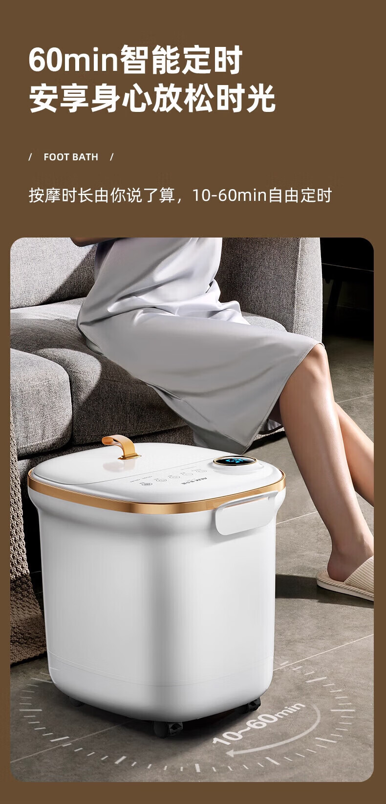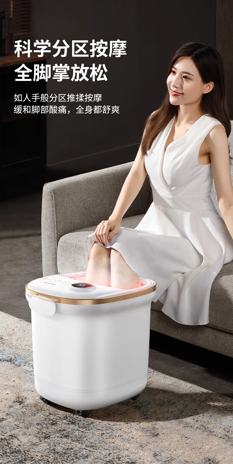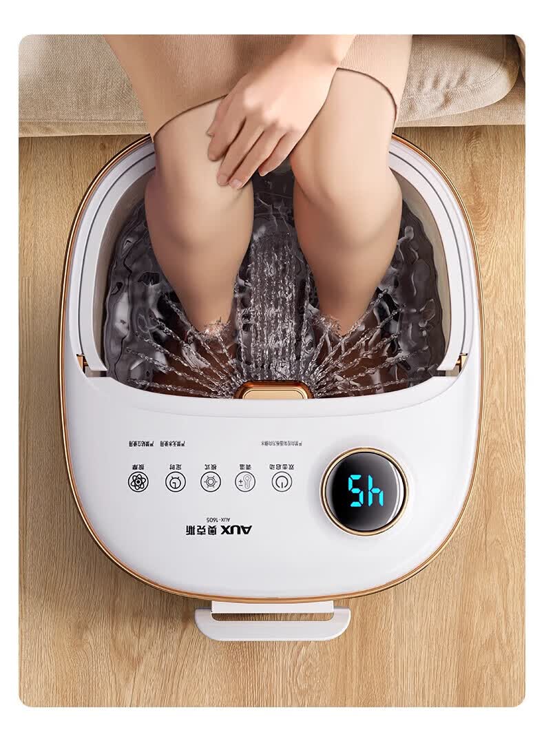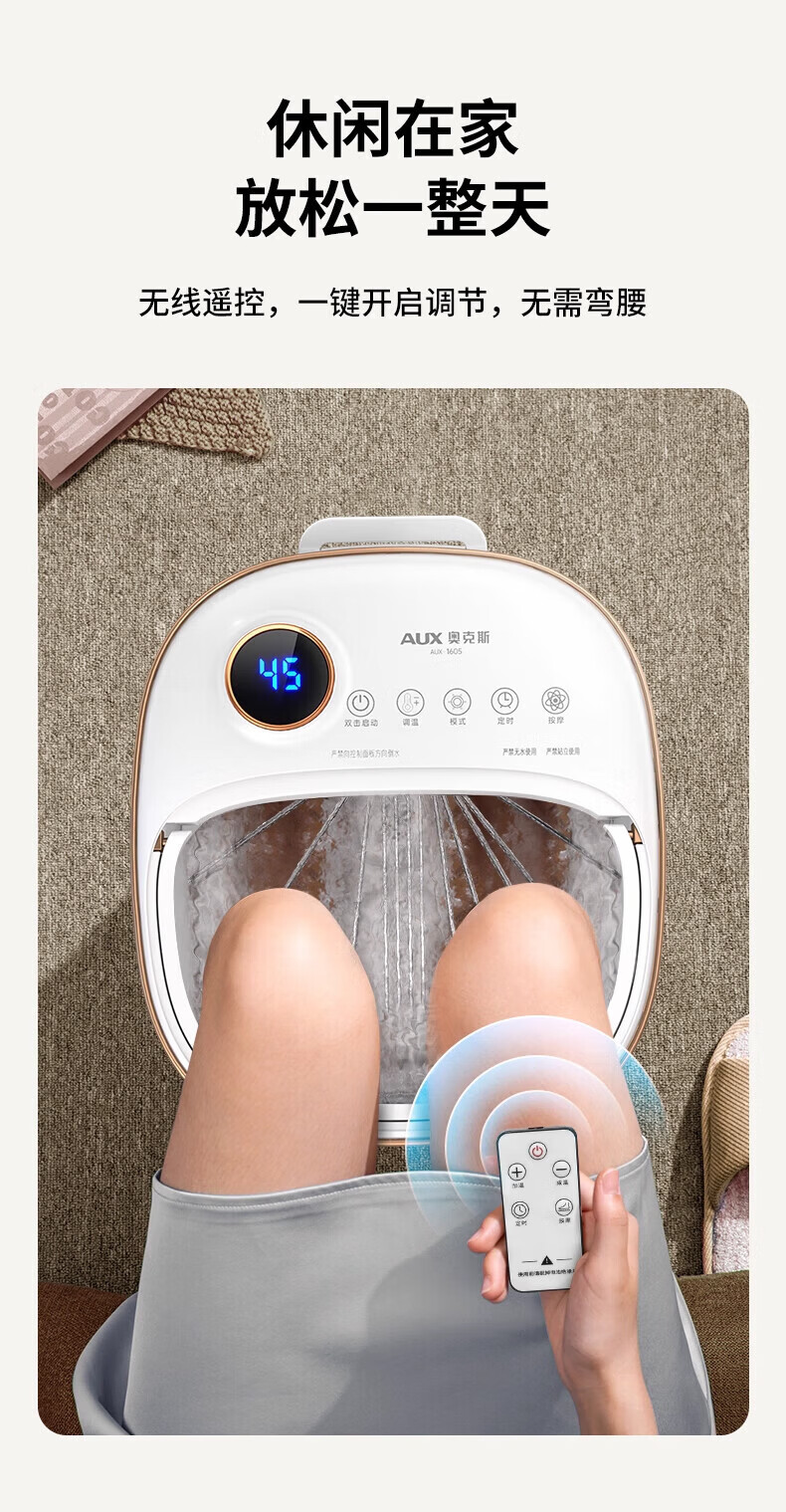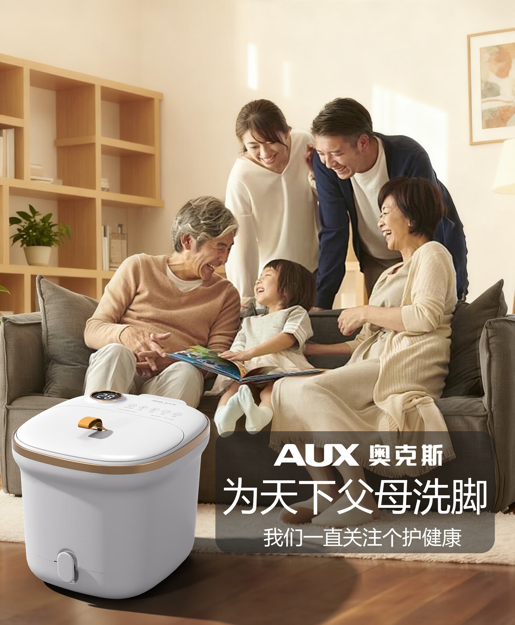 奥克斯泡脚桶足浴盆电动泡脚盆加热全自动按摩洗脚盆熏蒸一体智能恒温家用过膝足疗高深桶情人节礼物实用 【顶配升级款】电动滚轮+花洒淋浴+全覆盖足底按摩