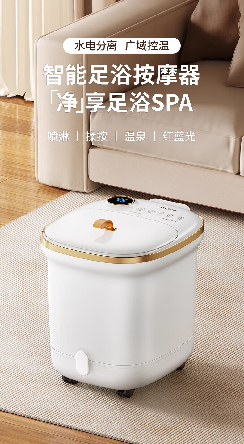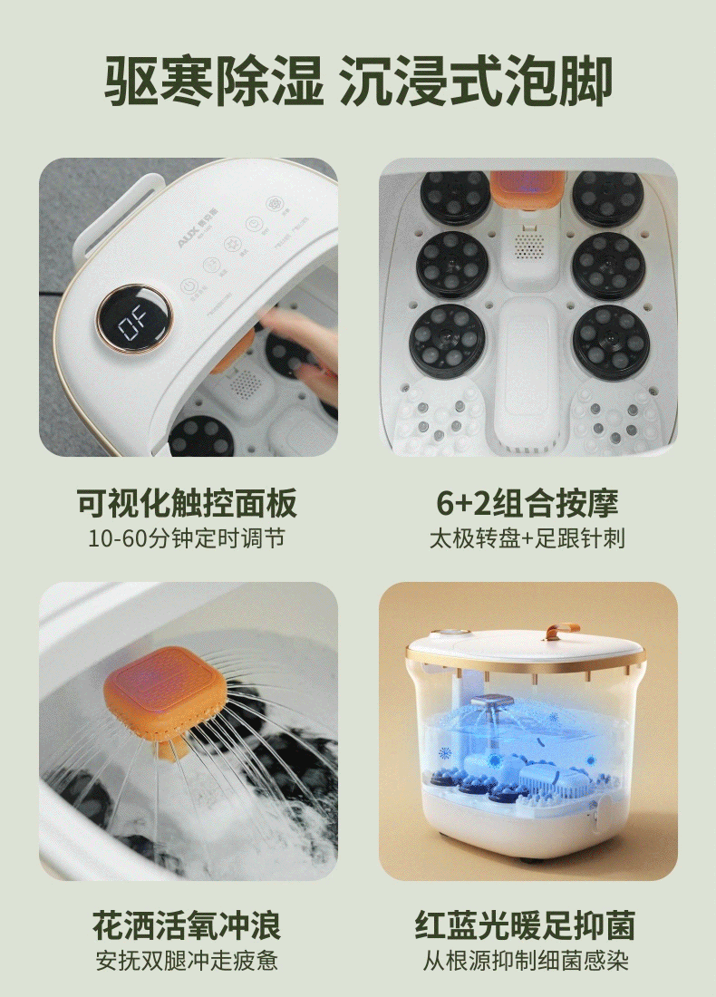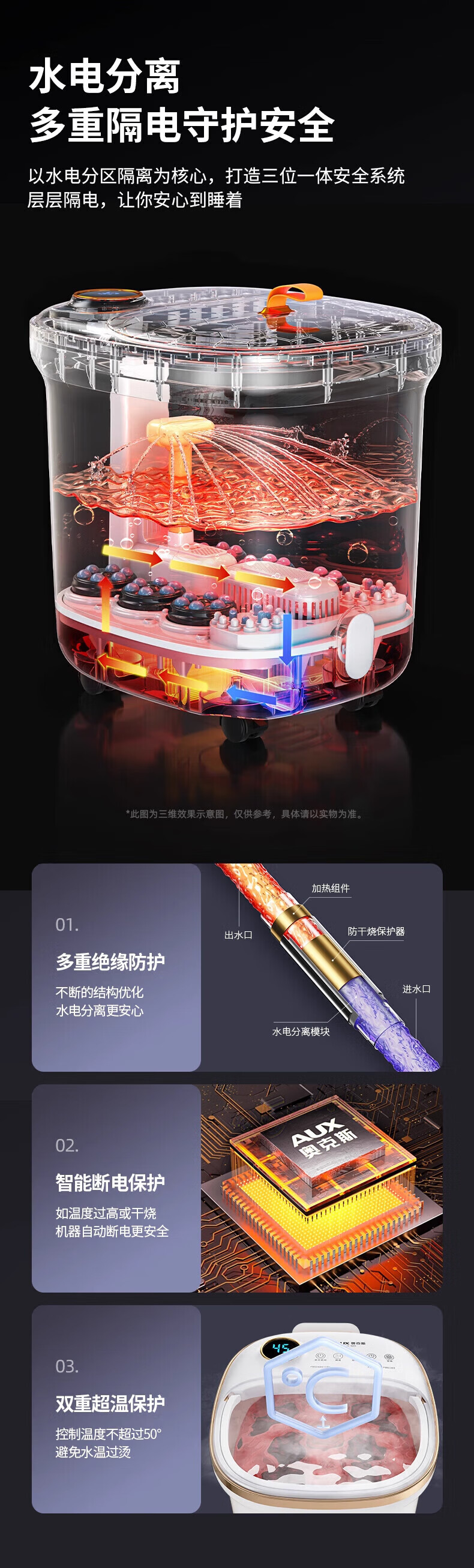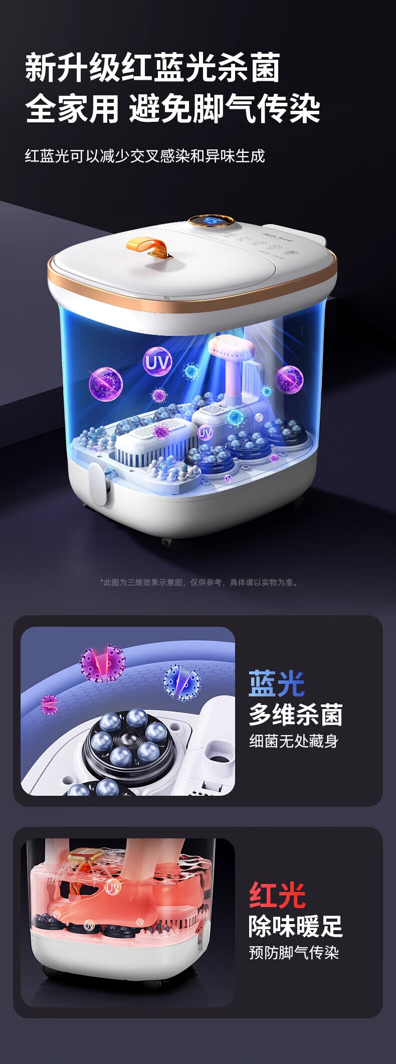 奥克斯泡脚桶足浴盆电动泡脚盆加热全自动按摩洗脚盆熏蒸一体智能恒温家用过膝足疗高深桶情人节礼物实用 【顶配升级款】电动滚轮+花洒淋浴+全覆盖足底按摩