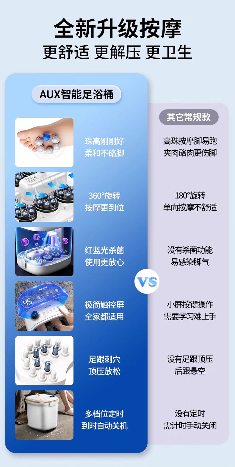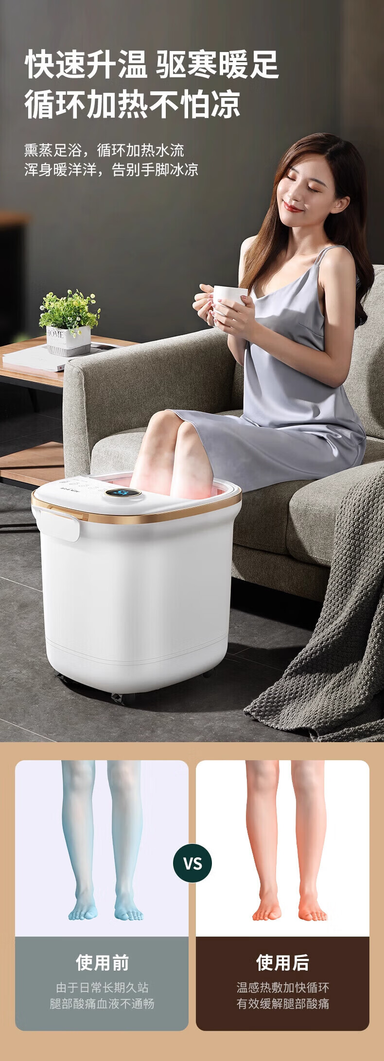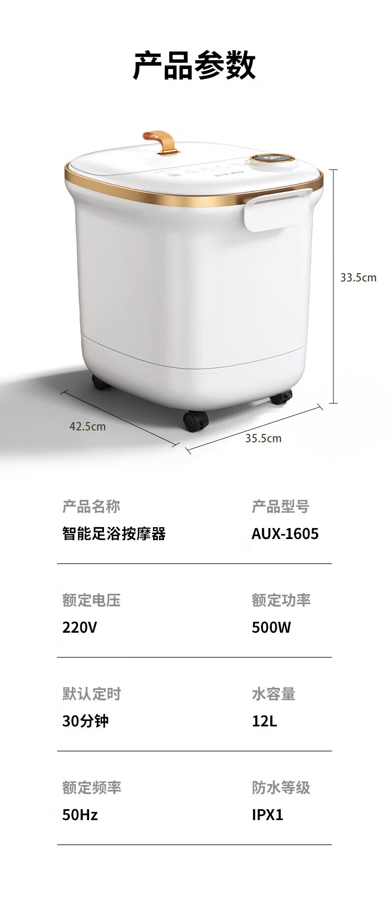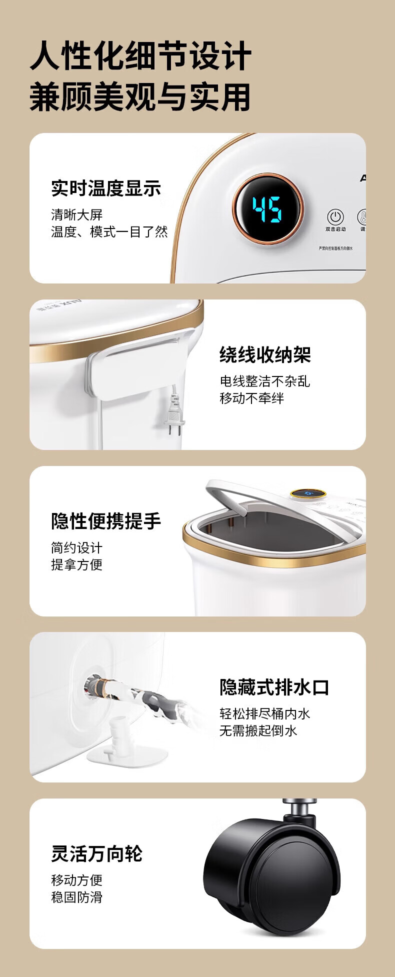 奥克斯泡脚桶足浴盆电动泡脚盆加热全自动按摩洗脚盆熏蒸一体智能恒温家用过膝足疗高深桶情人节礼物实用 【顶配升级款】电动滚轮+花洒淋浴+全覆盖足底按摩