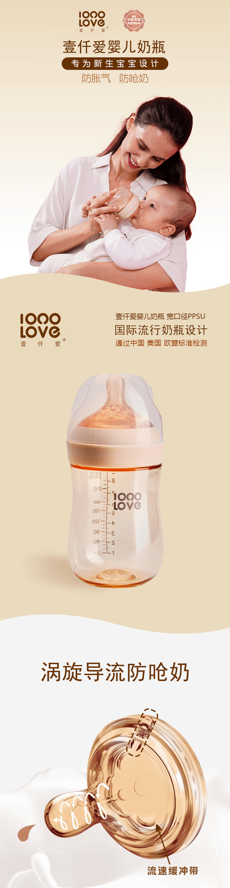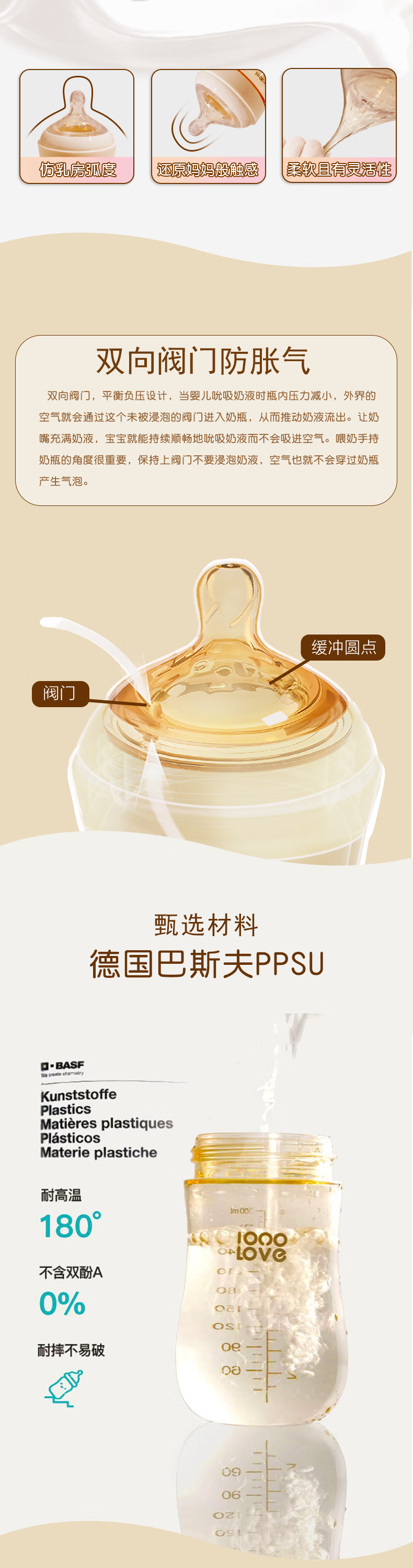 伊斯卡尔(EASYCare)大宽口径奶吸嘴重力球ppsu宽口径奶瓶一岁以上大宝宝吸管杯喝奶 米白-吸嘴款-300ml【6月+】