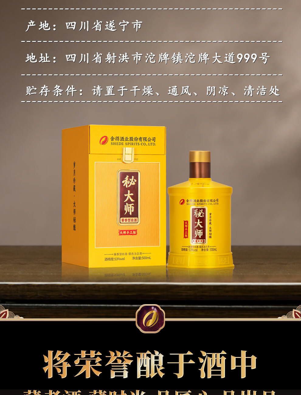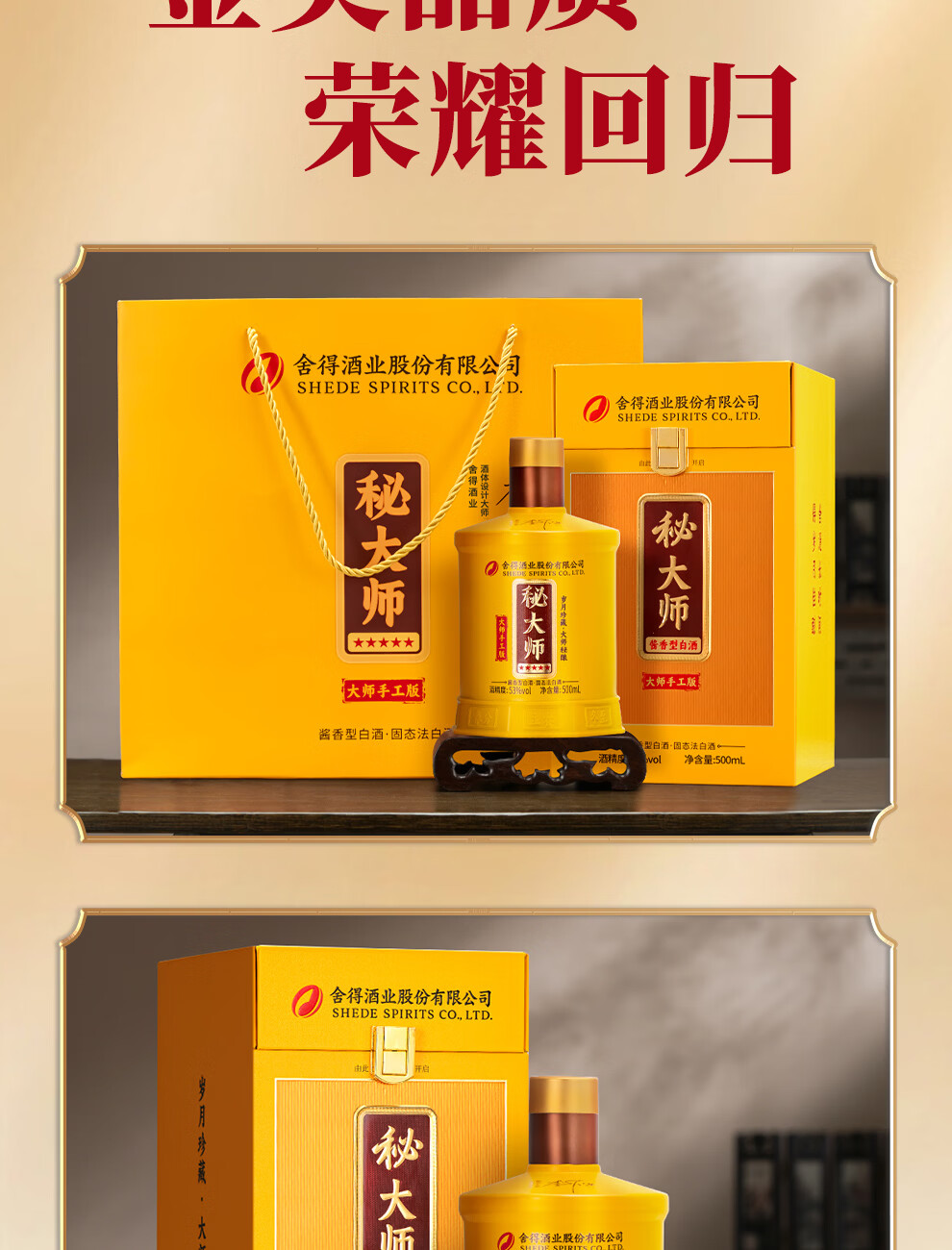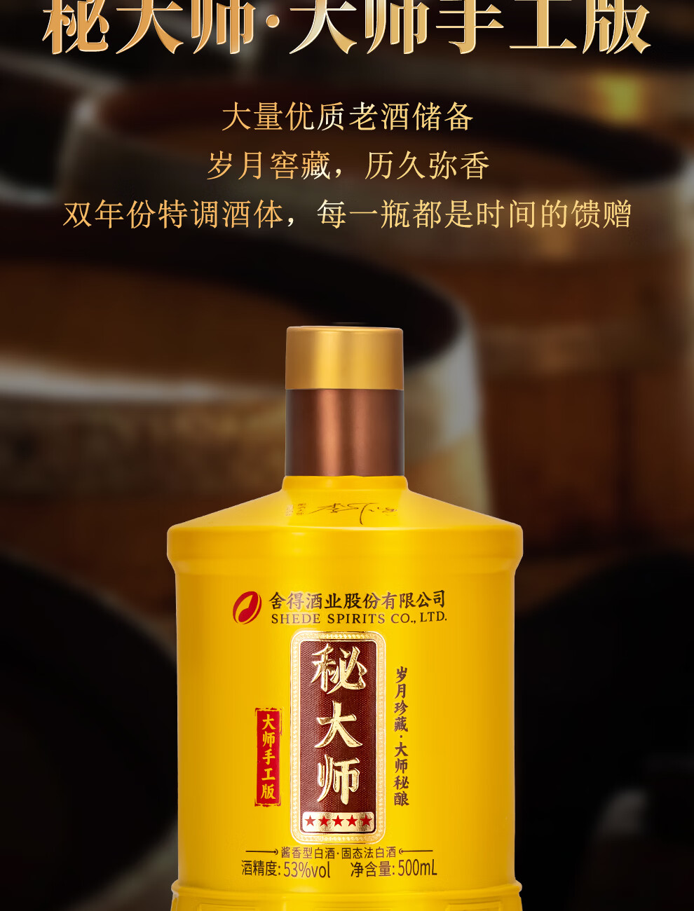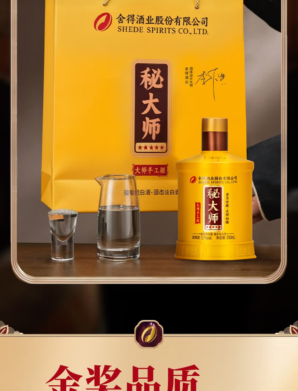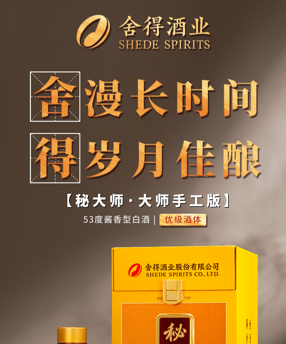 舍得股份 秘大师 手工版 纯粮酿造大师勾调 高端酱香型白酒 商务宴请 53%vol 500mL 1瓶 满两瓶赠礼袋