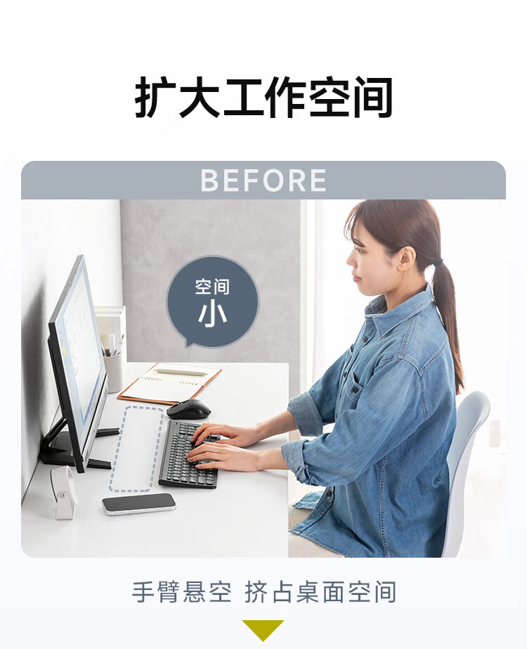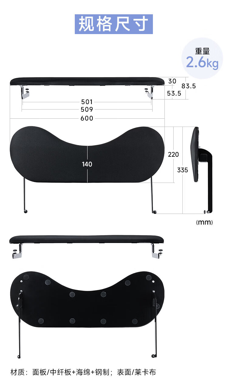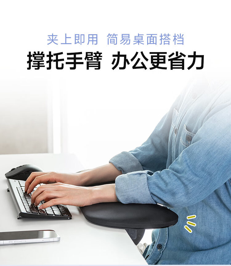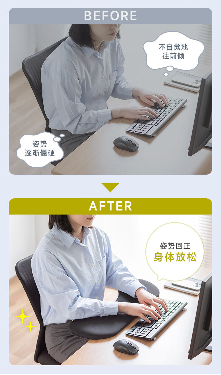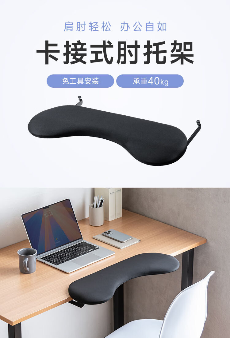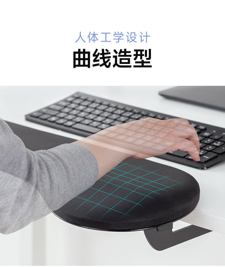 山业人体工学键盘托架护腕垫肘托架托台 支架臂桌面延长板拓展板 电脑鼠标收纳 免打孔 【新款2WAY】【挂钩】【莱卡布面】