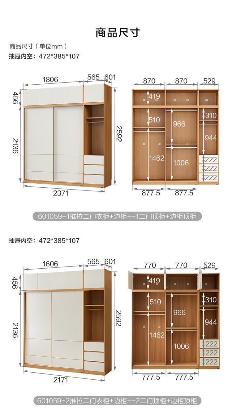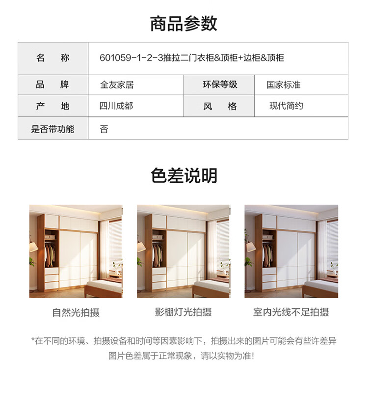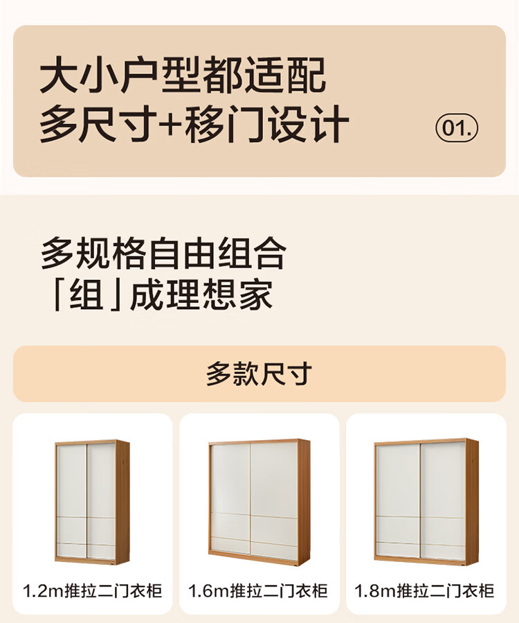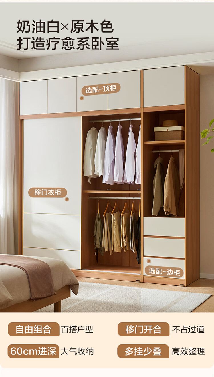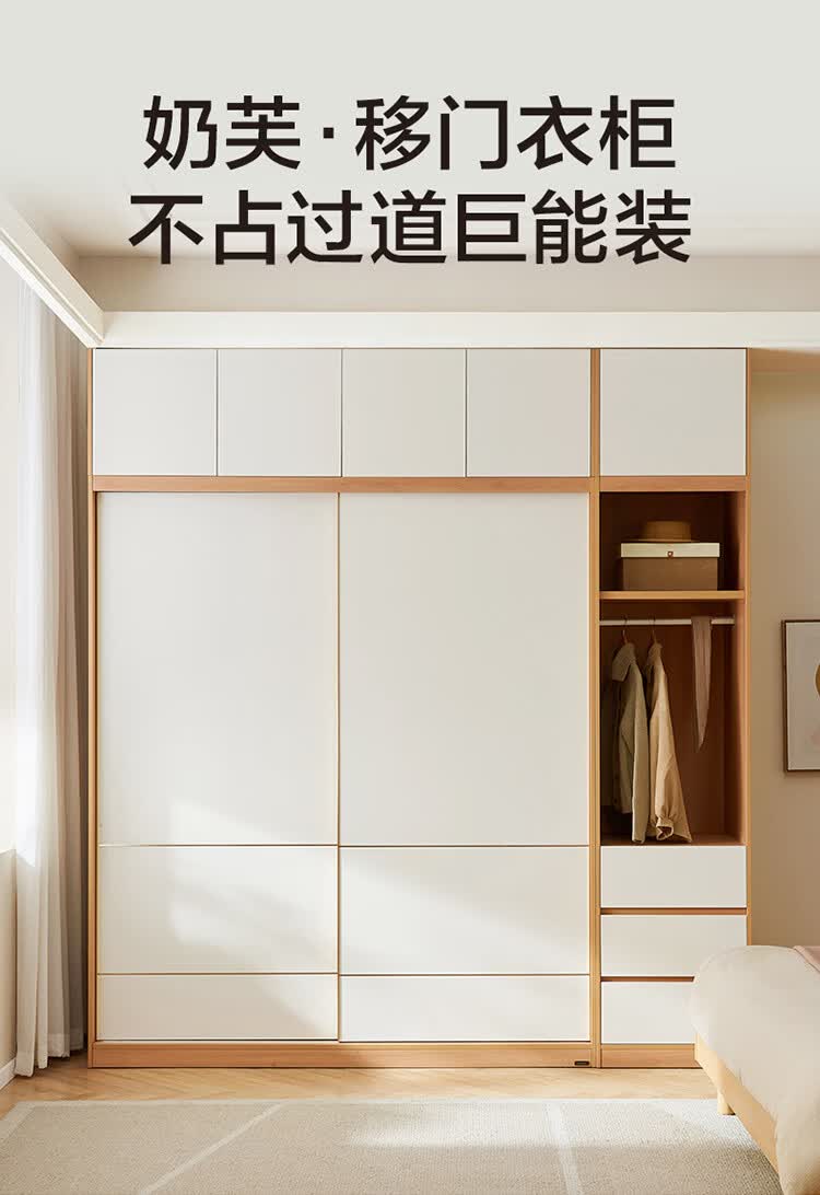全友(QUANU)家居现代简约推拉门衣柜卧室家用2026新款储物收纳柜一体靠墙衣橱 【1.61x2.14米】推拉二门衣柜