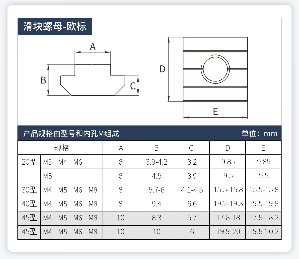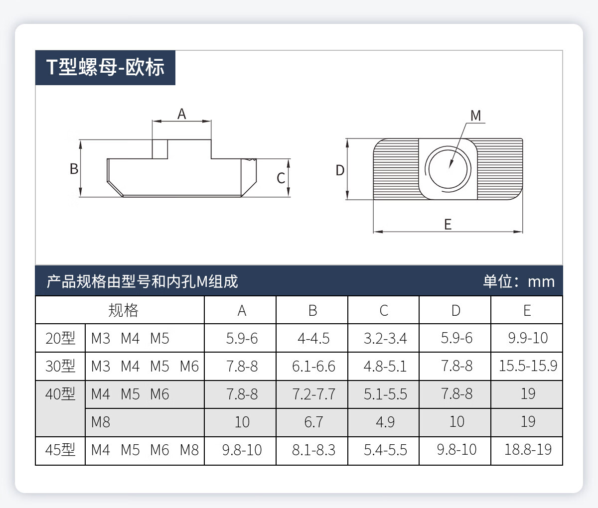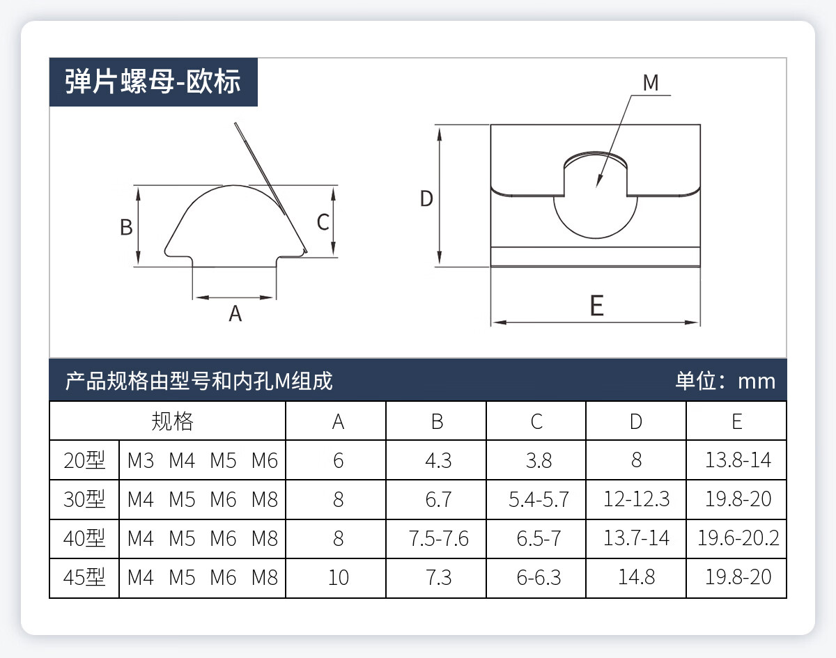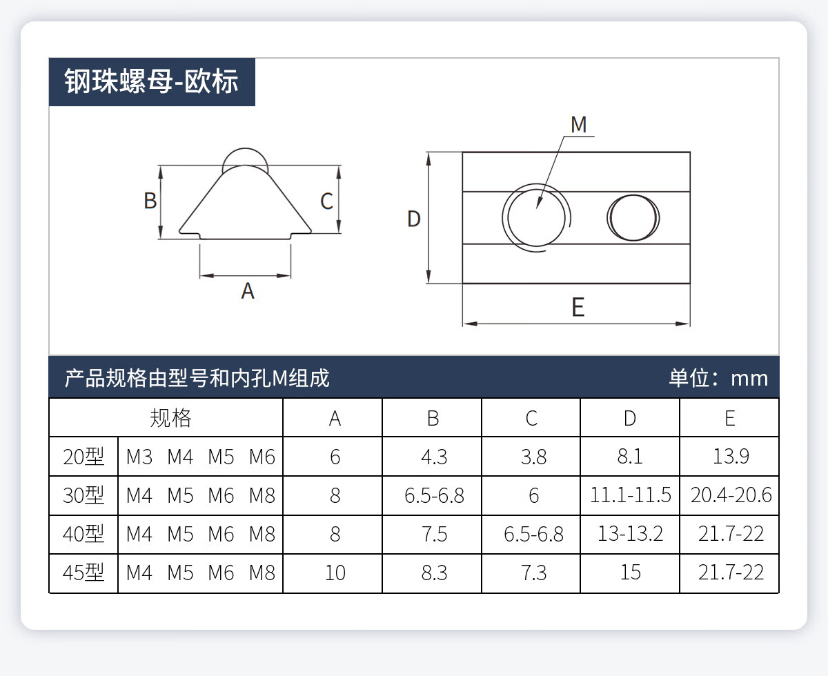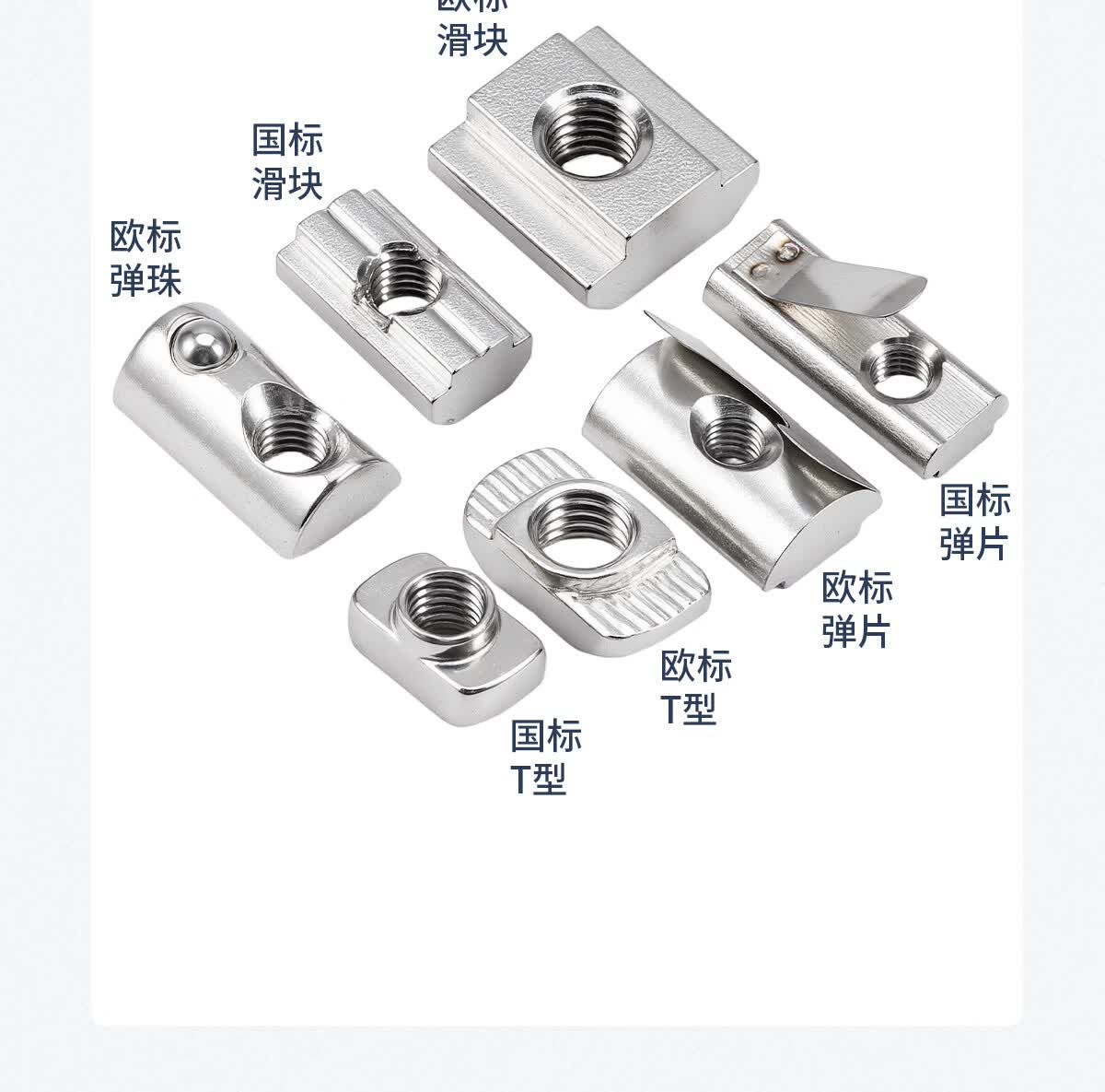20/30/40/45型欧标T型船型螺母滑块弹片钢珠螺帽国标铝型材配件 欧标T型 20型M3(20粒)