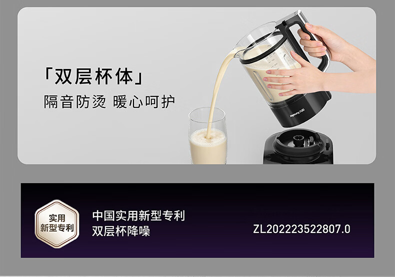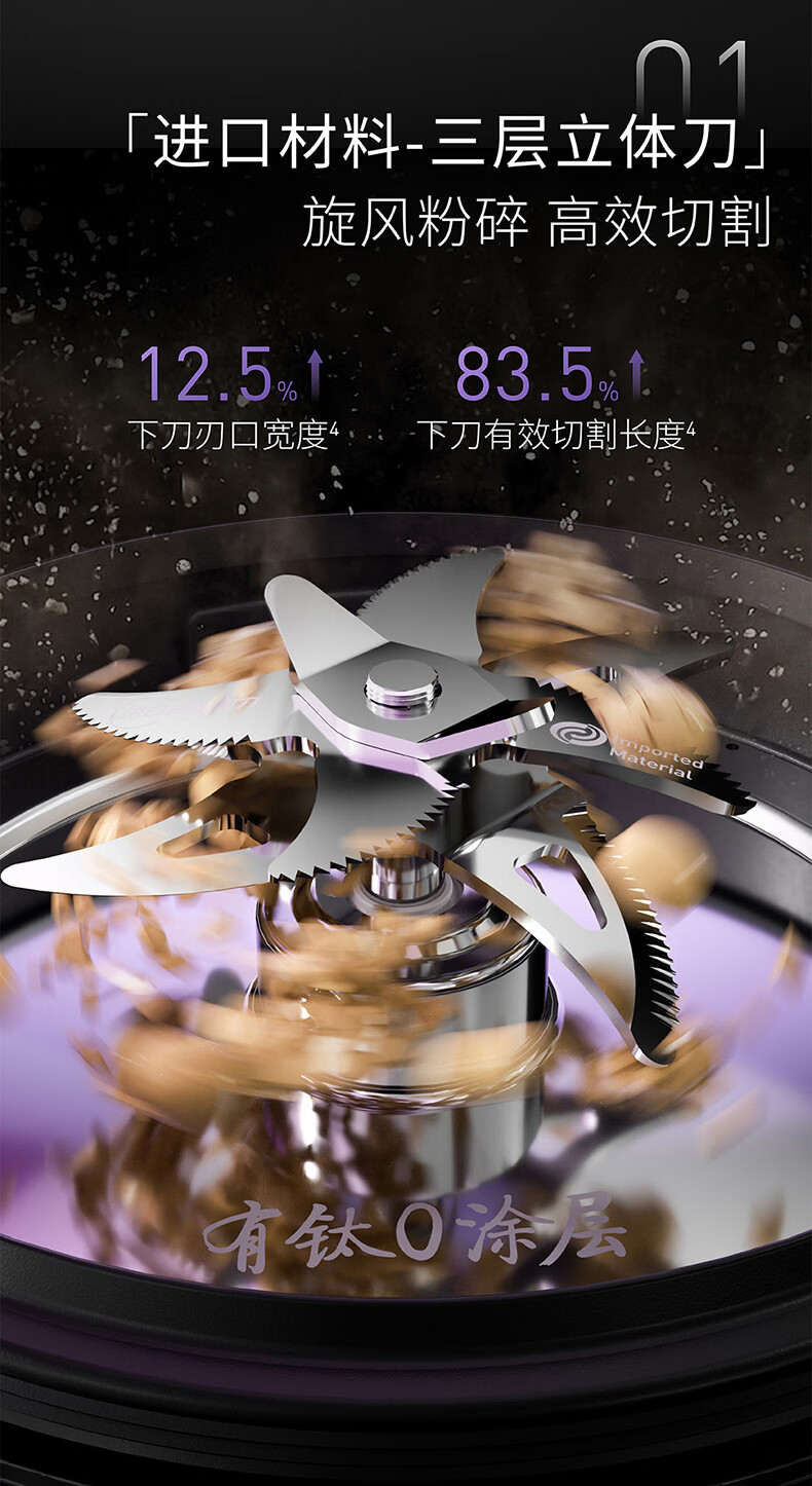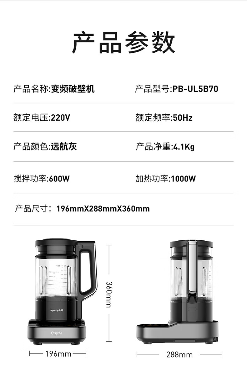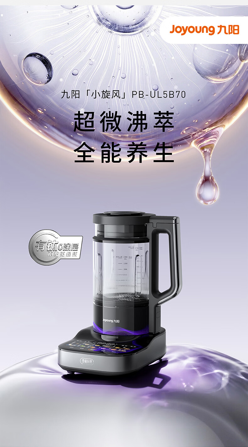 九阳(Joyoung)小旋风破壁机【重磅新品】有钛0涂层变频轻音家用全自动免煮豆浆机智能降噪料理机触控屏B70