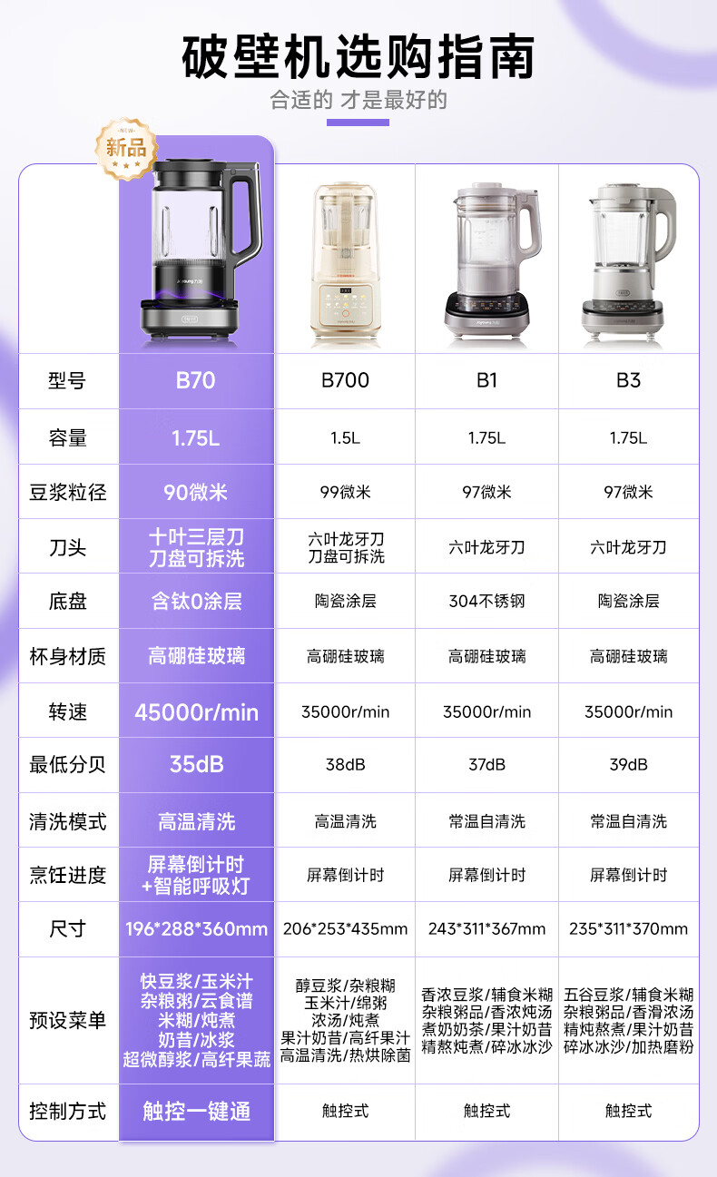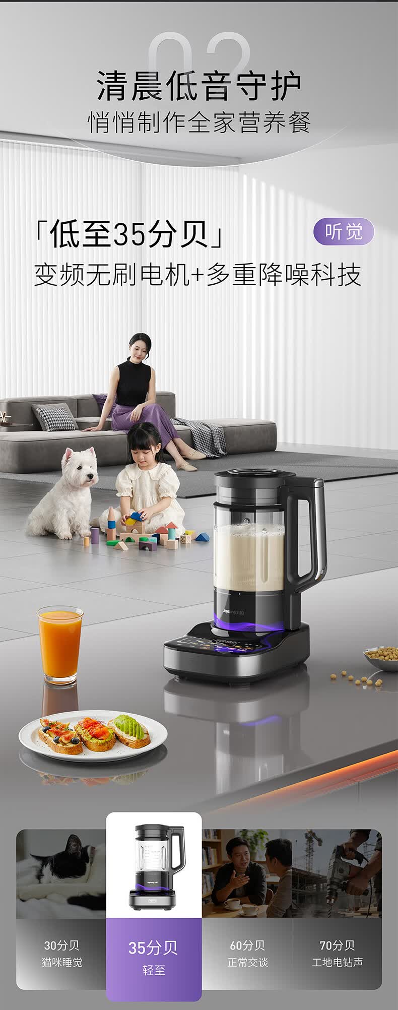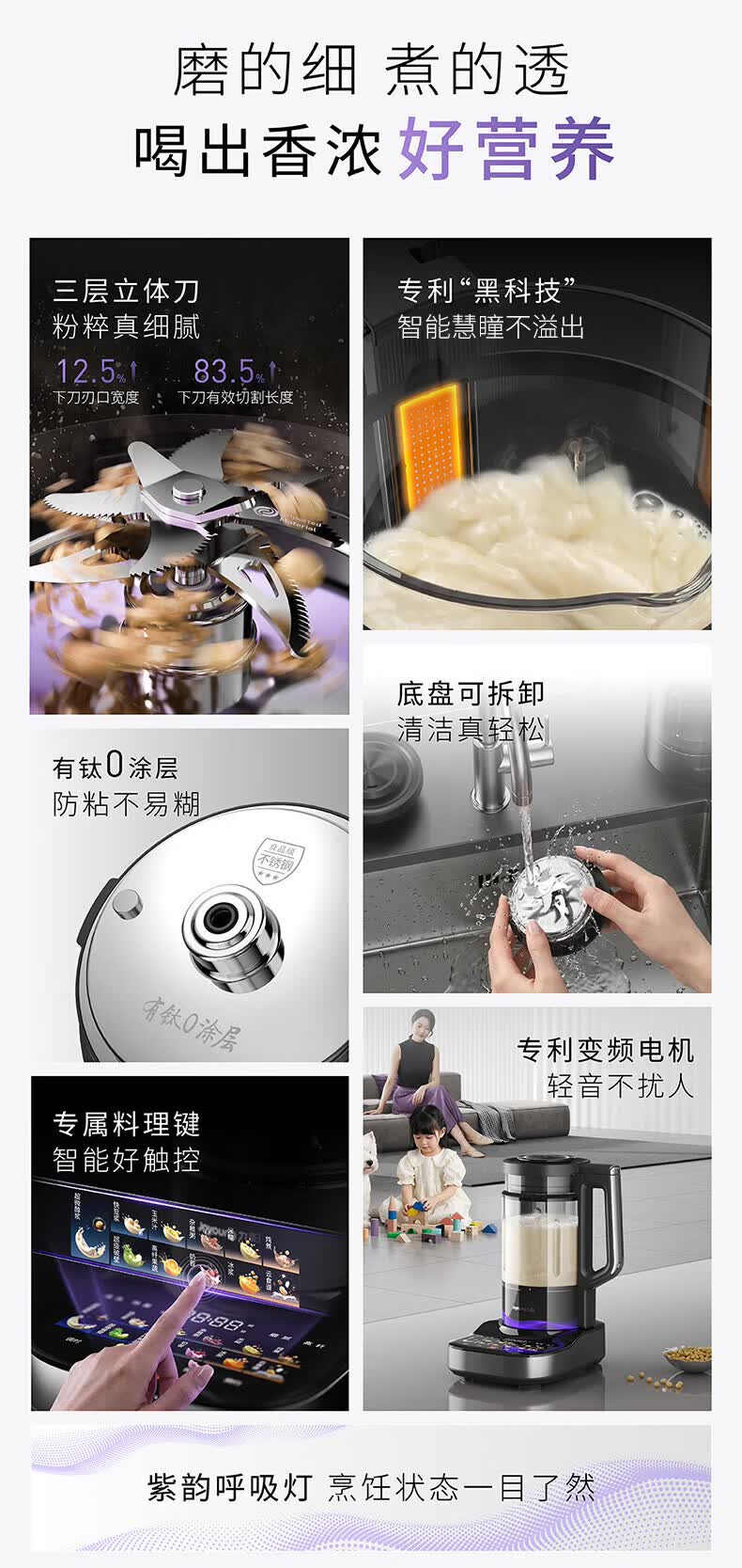 九阳(Joyoung)小旋风破壁机【重磅新品】有钛0涂层变频轻音家用全自动免煮豆浆机智能降噪料理机触控屏B70