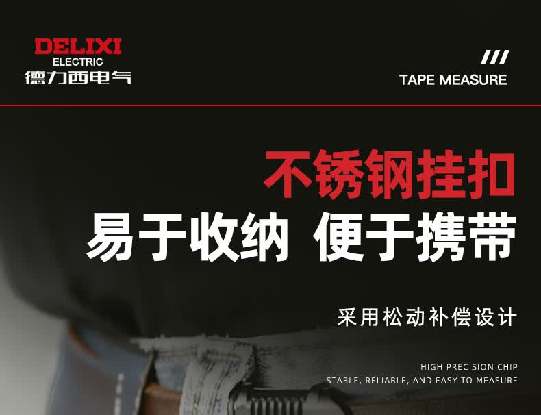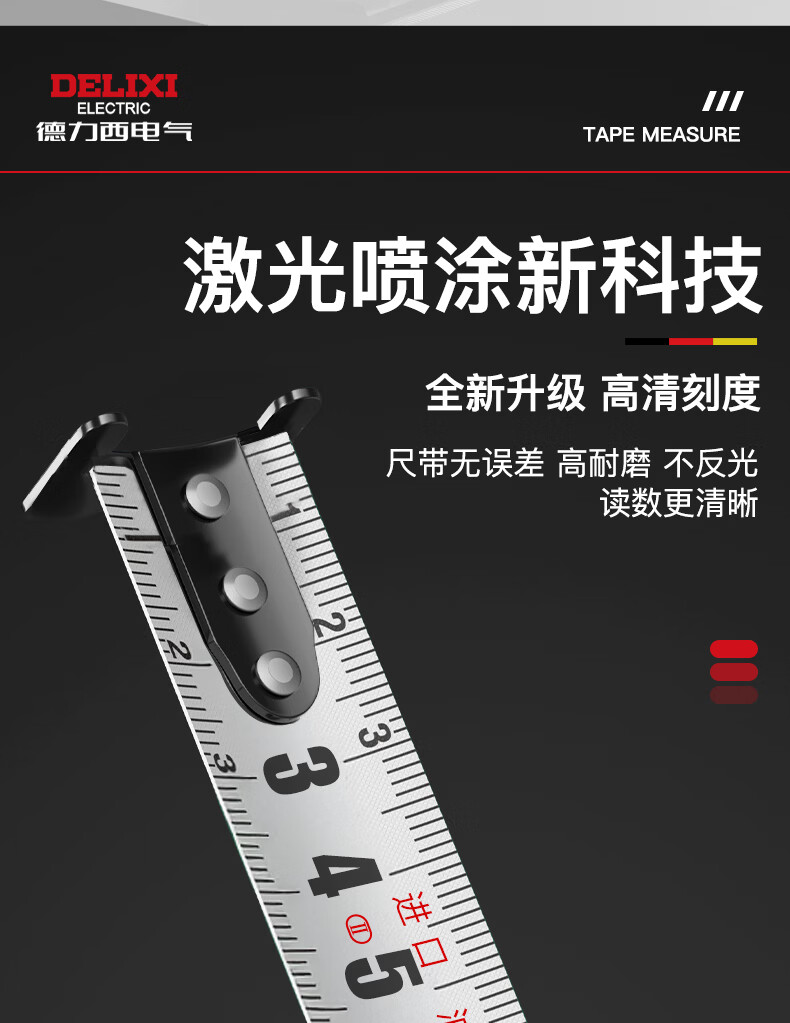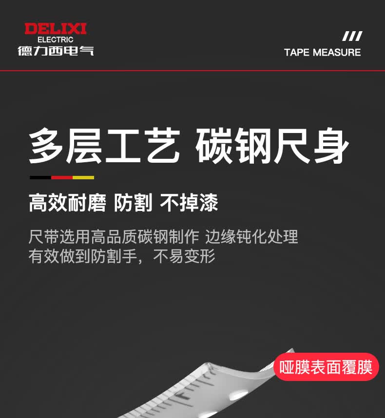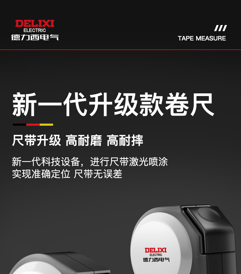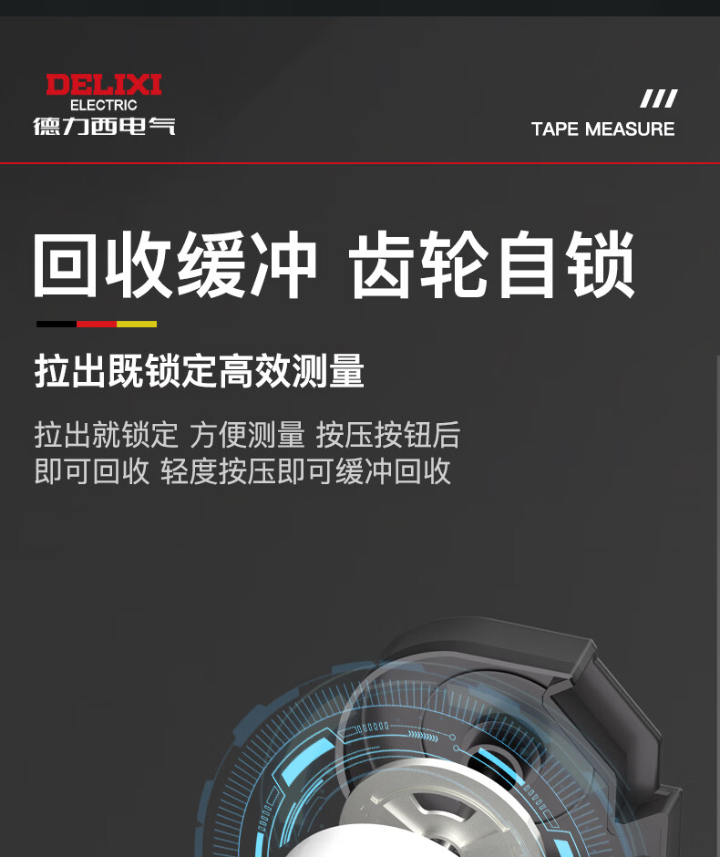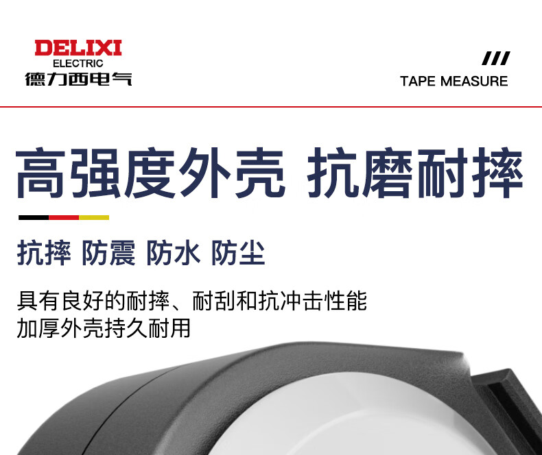 德力西电气(DELIXI ELECTRIC)自锁测量卷尺3米/5米/7.5米 黑幻影系列加厚ABS抗摔防割手高精度 自锁款-加厚ABS外壳【5M*19MM】