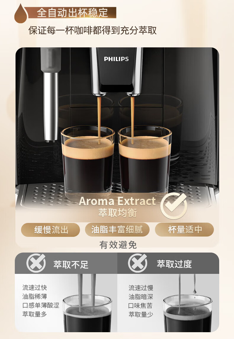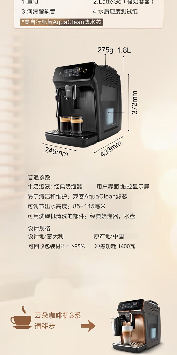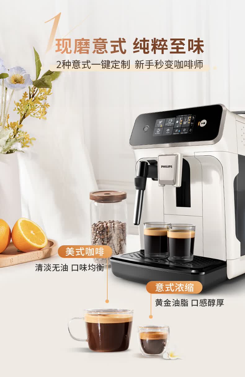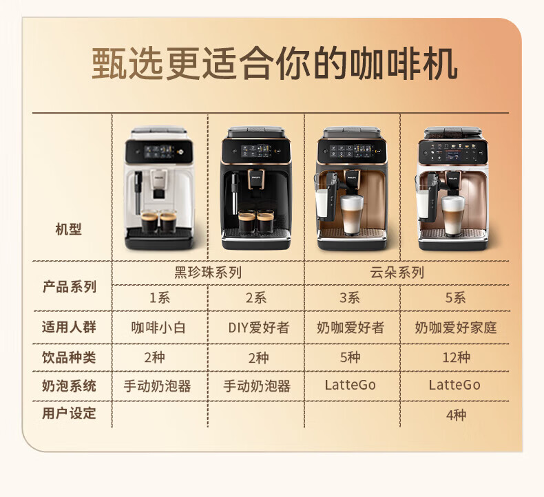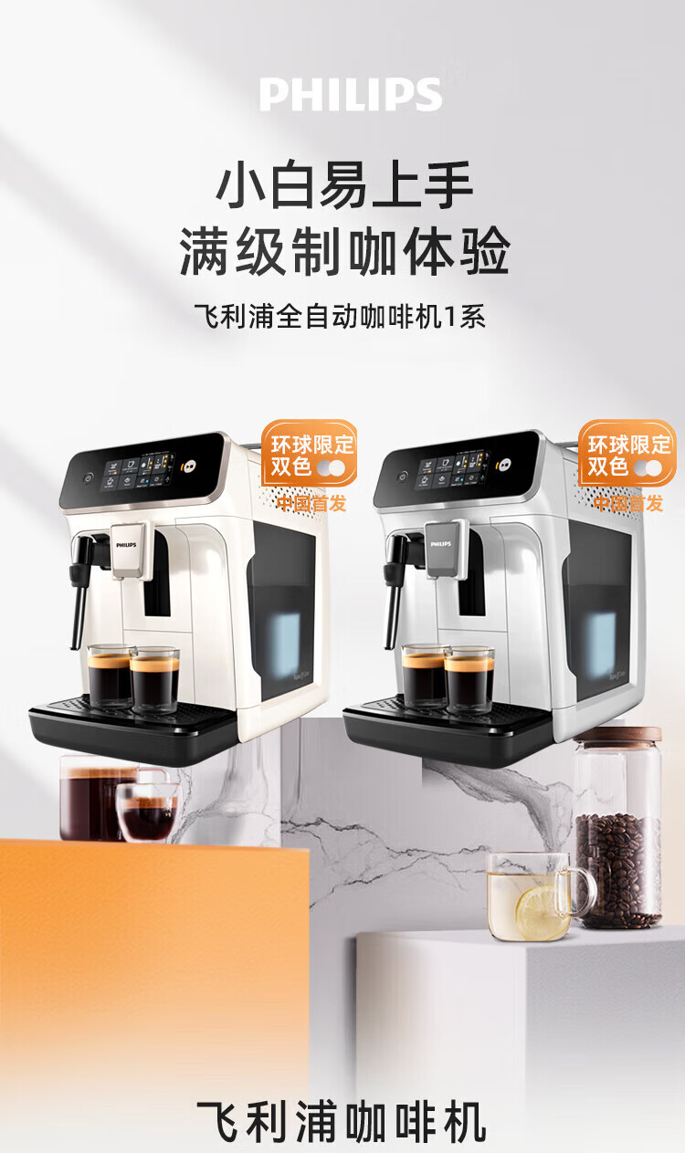 飞利浦【补贴15%】意式全自动咖啡机家用/办公室黑珍珠咖啡机手动奶泡机 12档细致研磨节日礼物 1系小白优选丨12档研磨丨EP1221/69