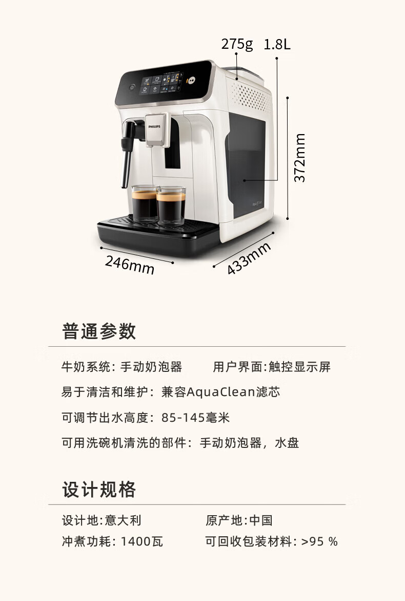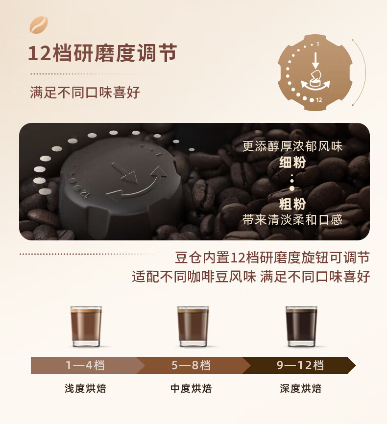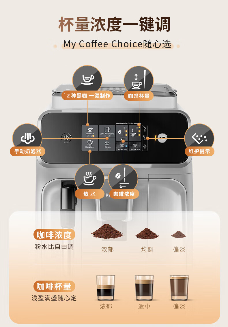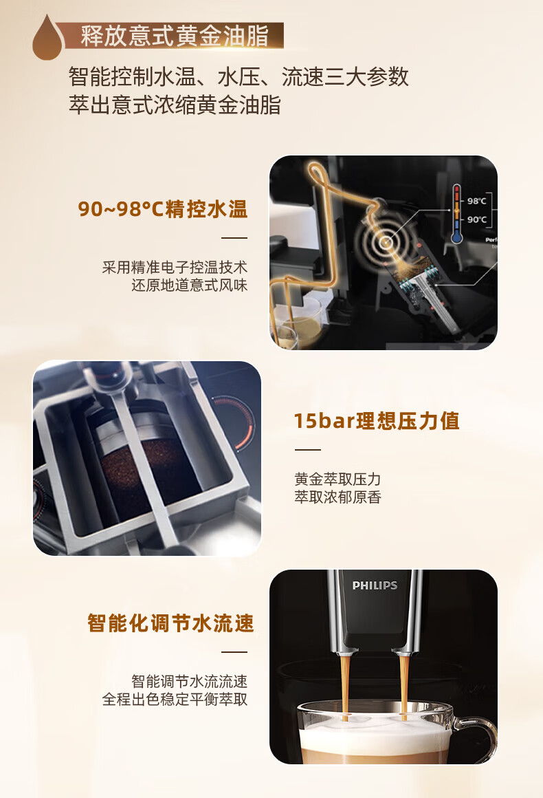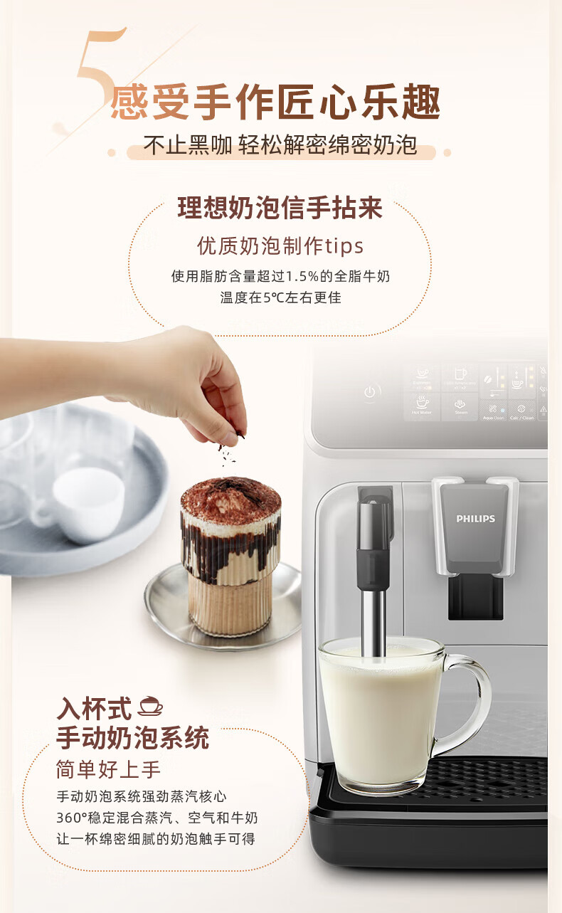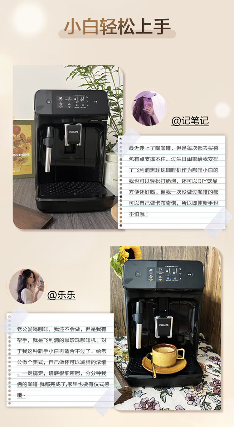 飞利浦【补贴15%】意式全自动咖啡机家用/办公室黑珍珠咖啡机手动奶泡机 12档细致研磨节日礼物 1系小白优选丨12档研磨丨EP1221/69