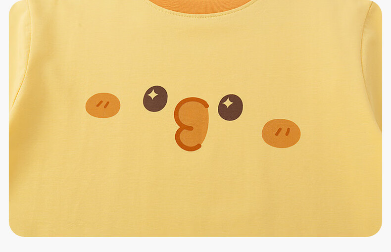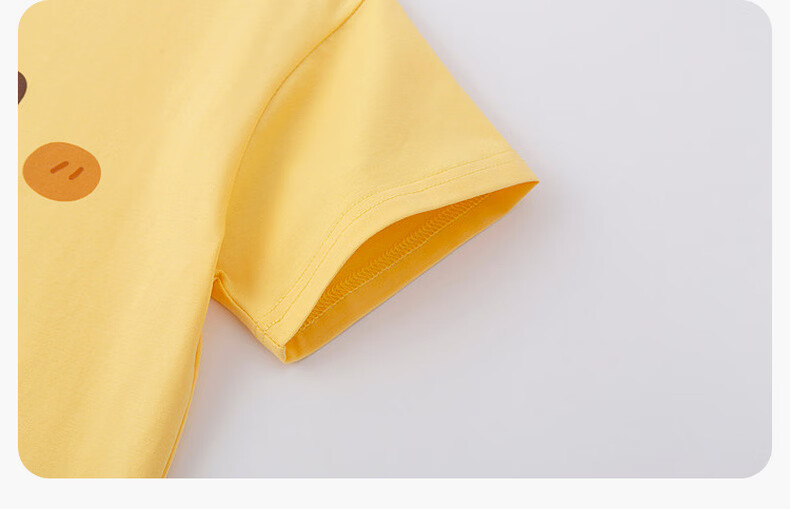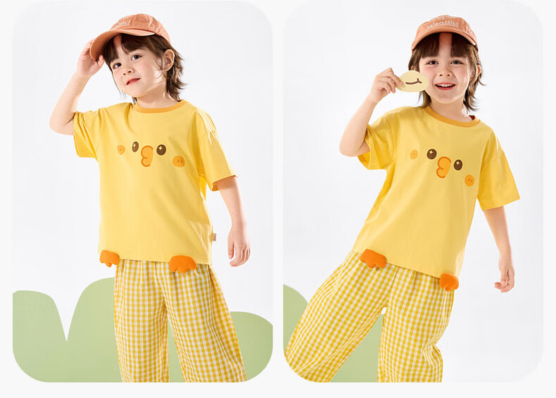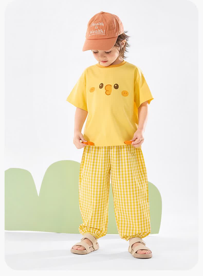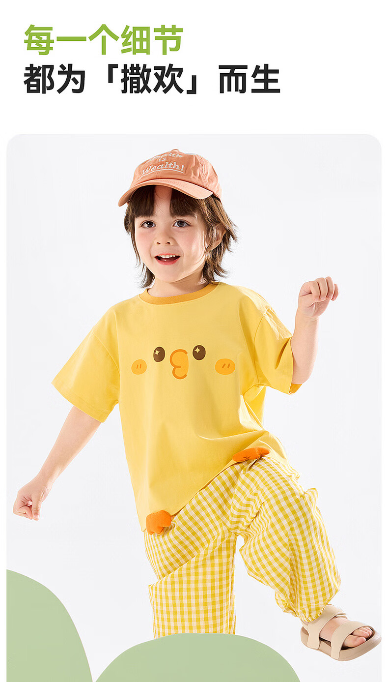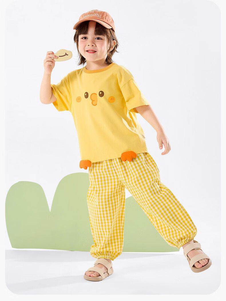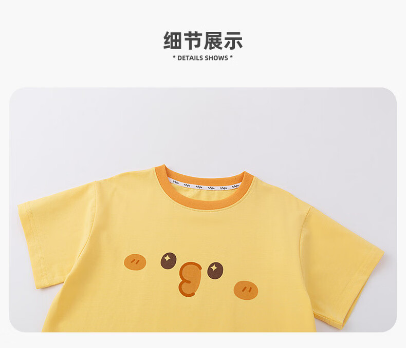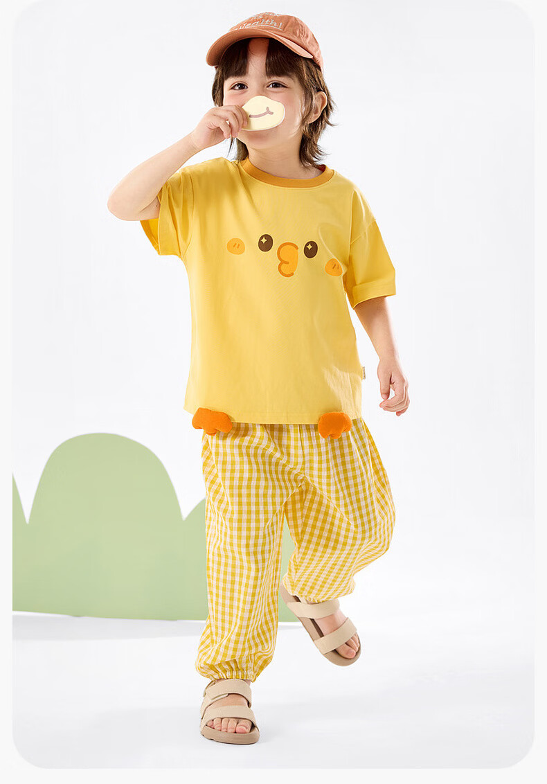 嘟嘟家儿童夏季套装宽松男童短袖T恤上衣卡通女童夏装休闲裤宝宝两件套 奶黄色 100