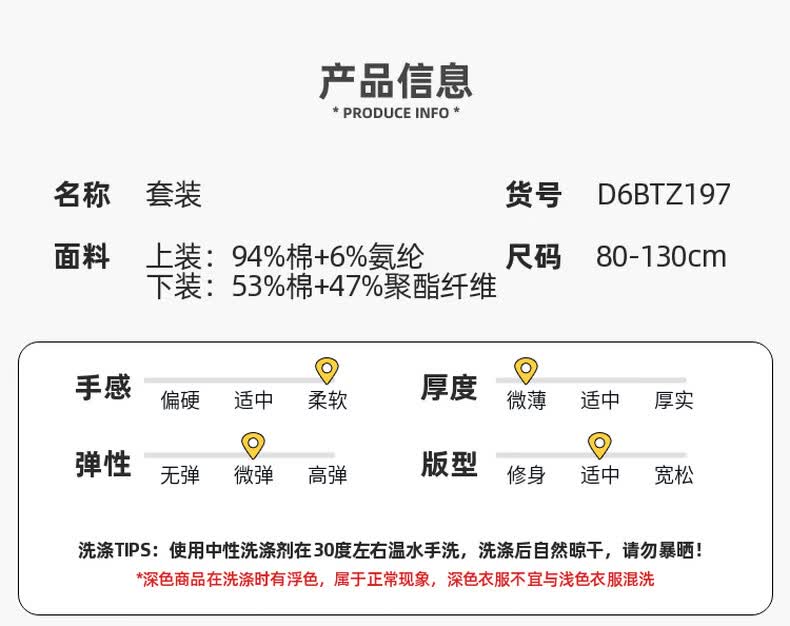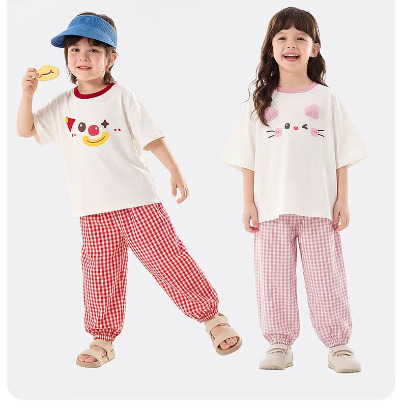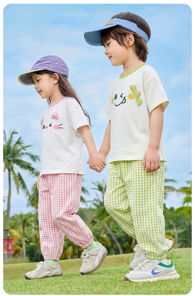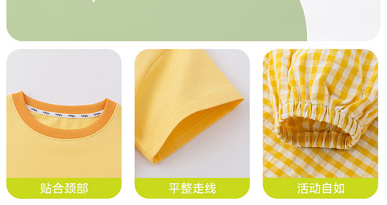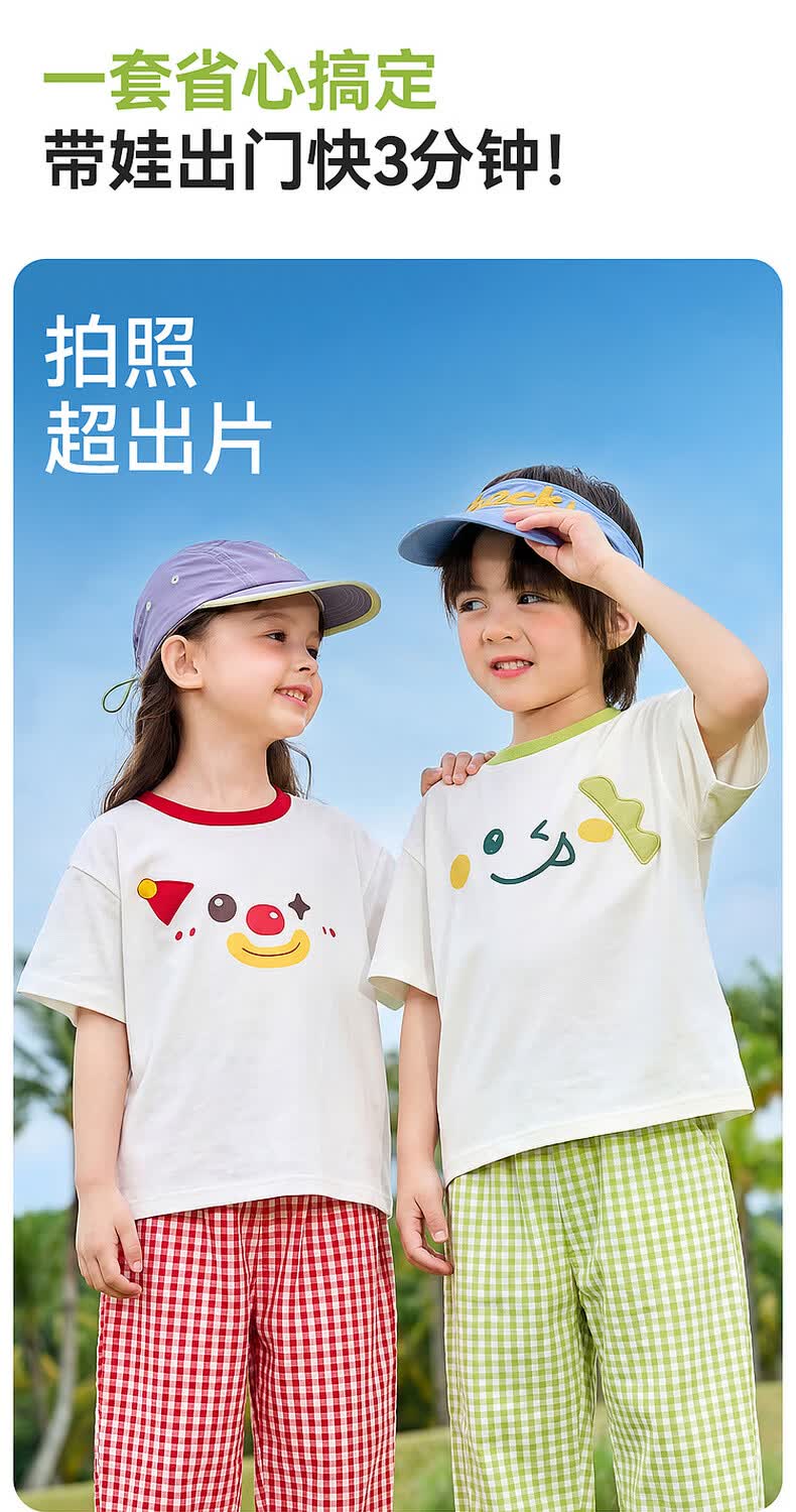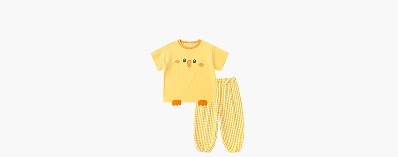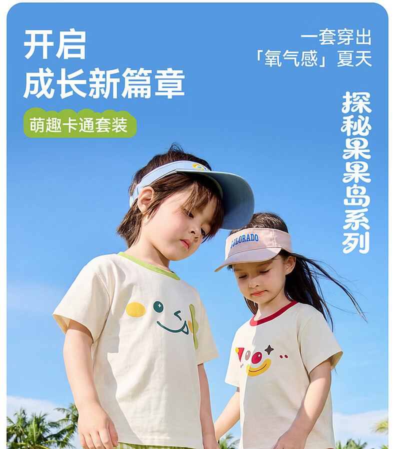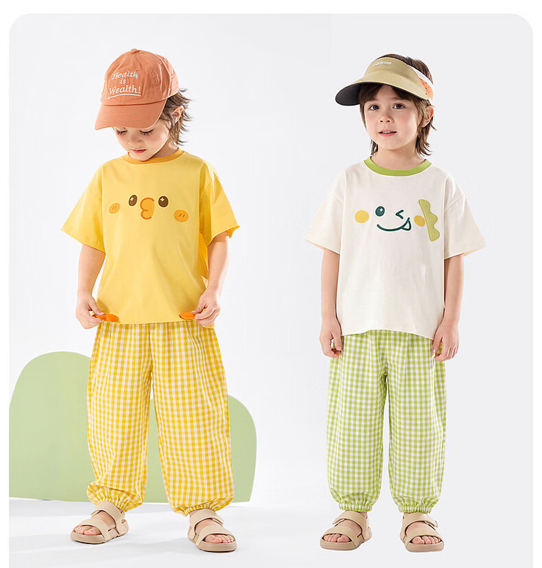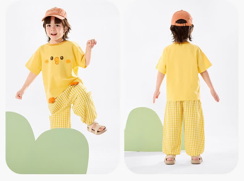 嘟嘟家儿童夏季套装宽松男童短袖T恤上衣卡通女童夏装休闲裤宝宝两件套 奶黄色 100