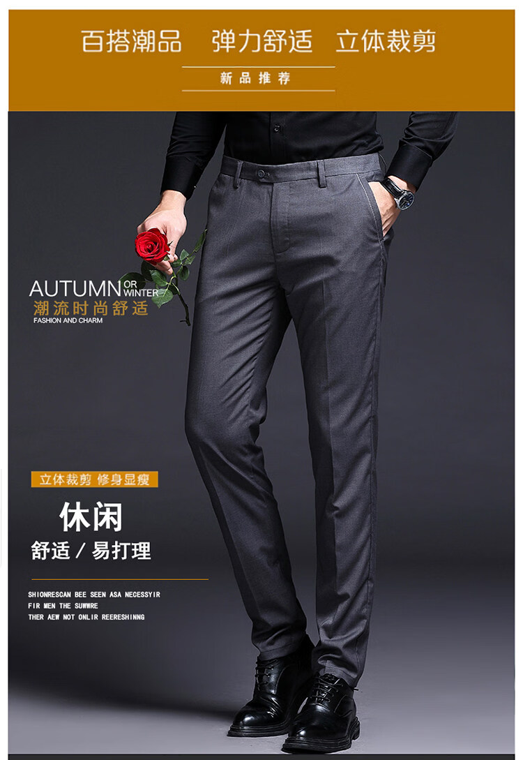 丨利郎丨男士西裤2026春季新款直筒修身商务正装轻薄免烫休闲裤 蓝色 薄款 38 【3尺0】