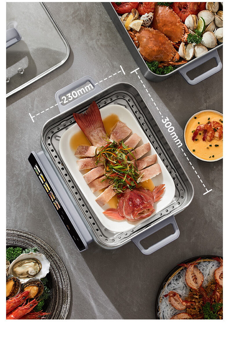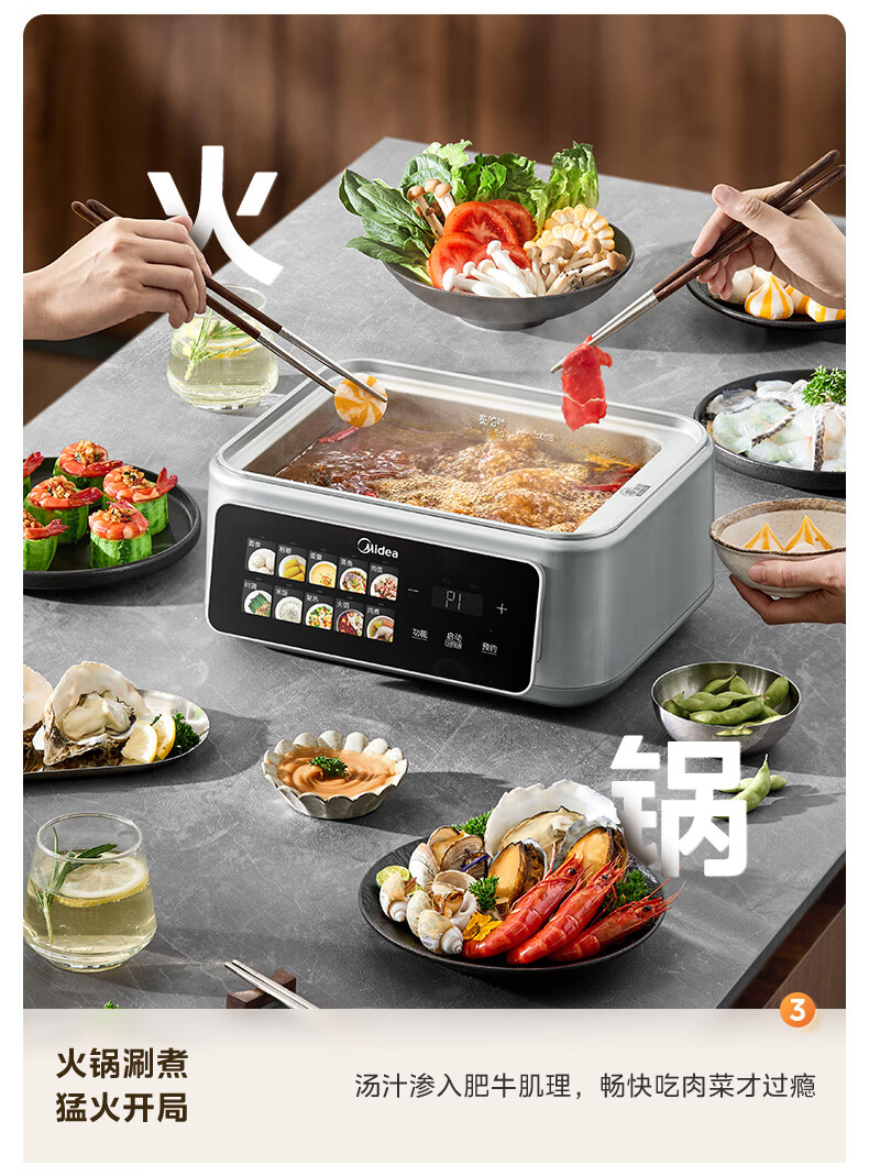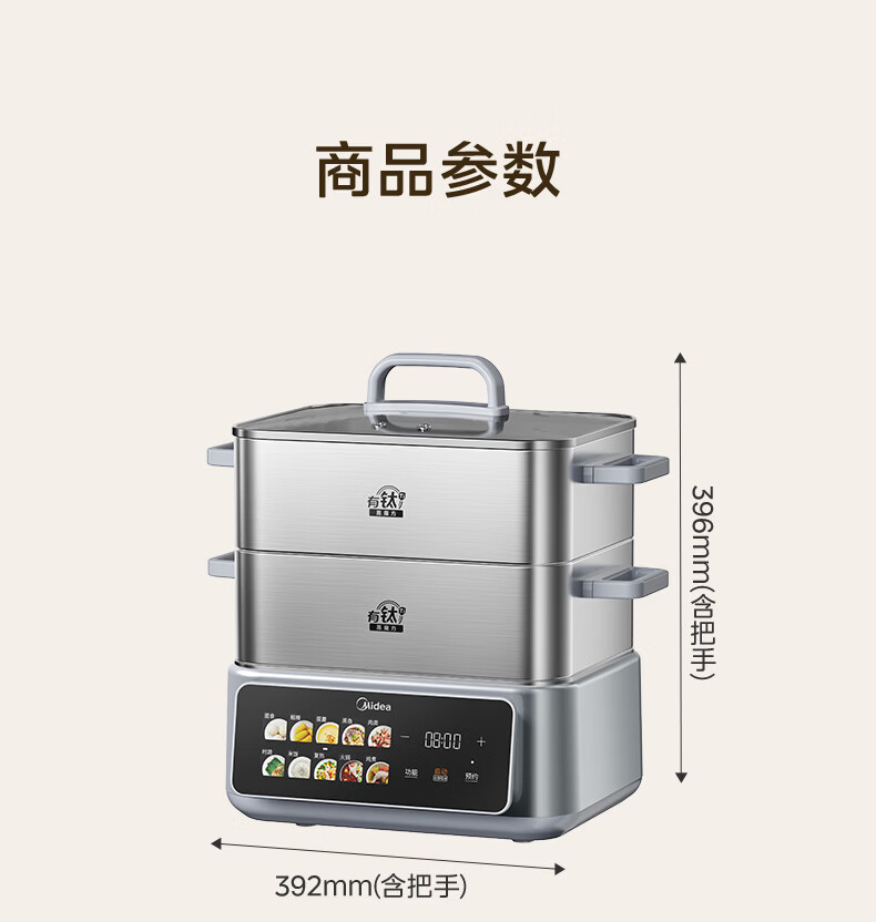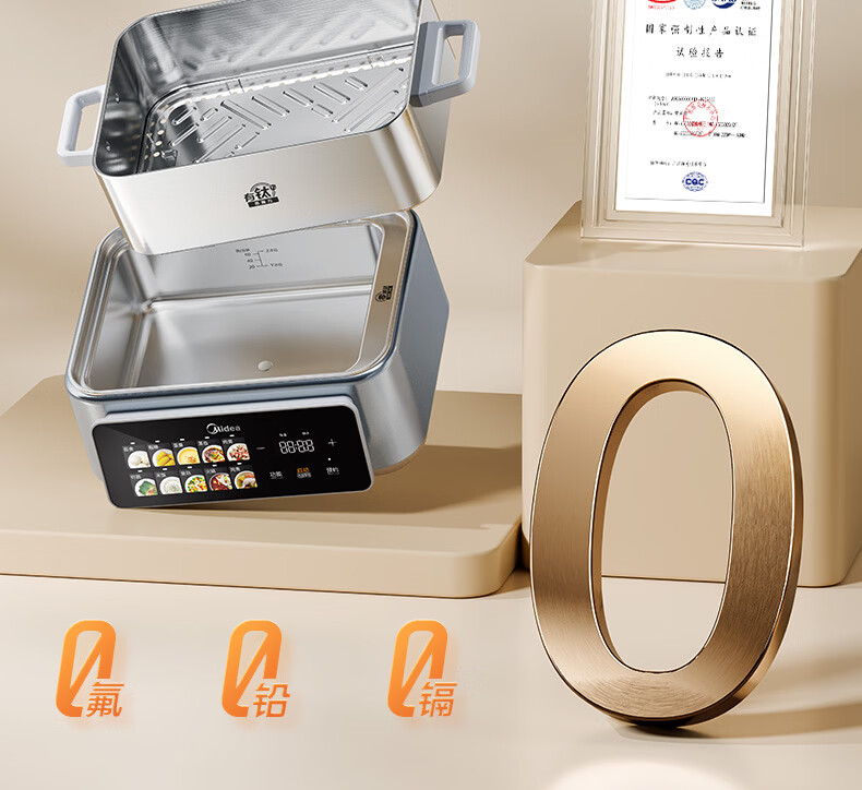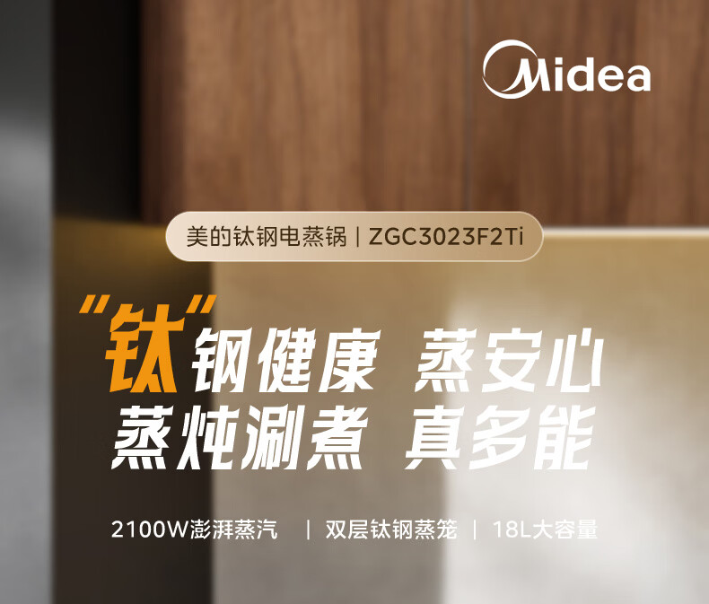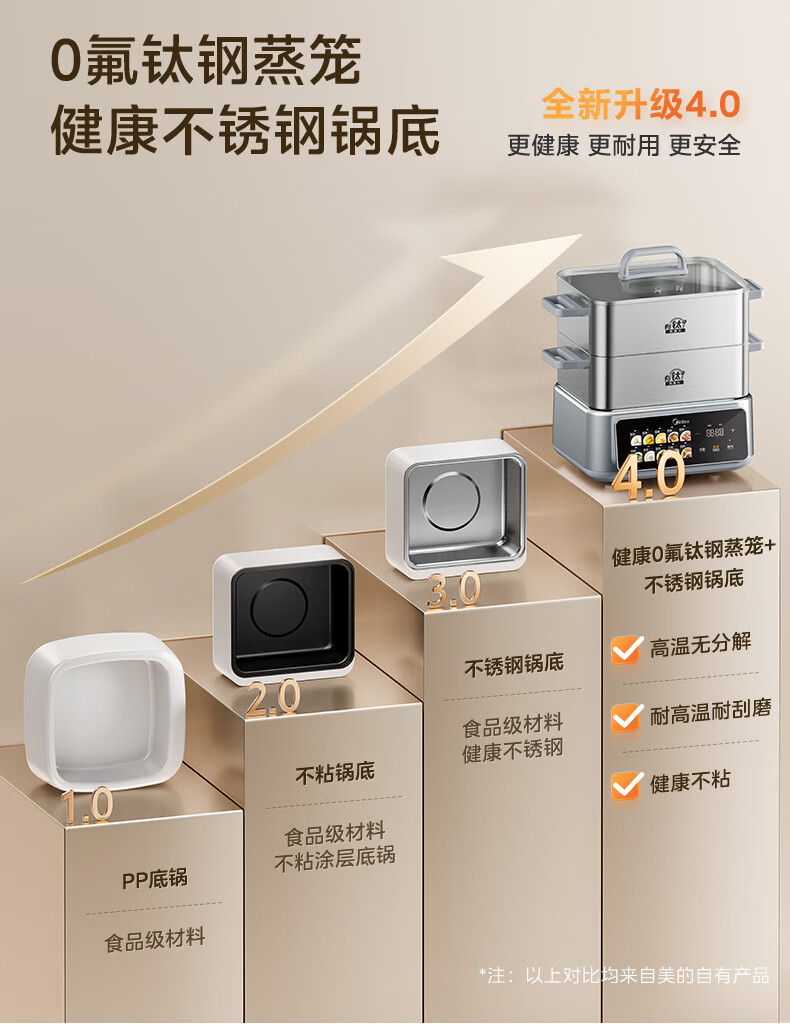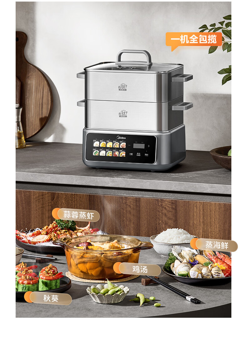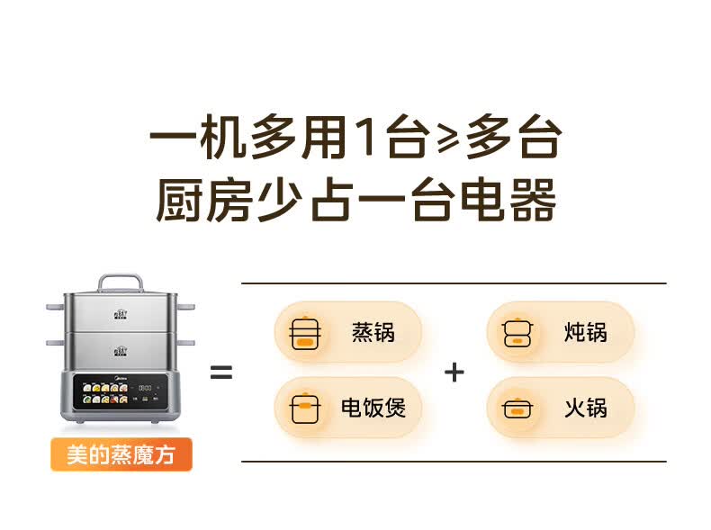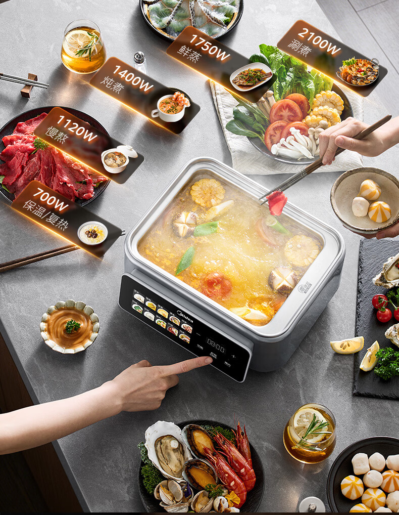 美的(Midea)钛钢蒸魔方电蒸锅炖蒸涮煮一体多功能电热锅家用18L三层大容量0涂层有钛不锈钢煮锅ZGC3023F2Ti