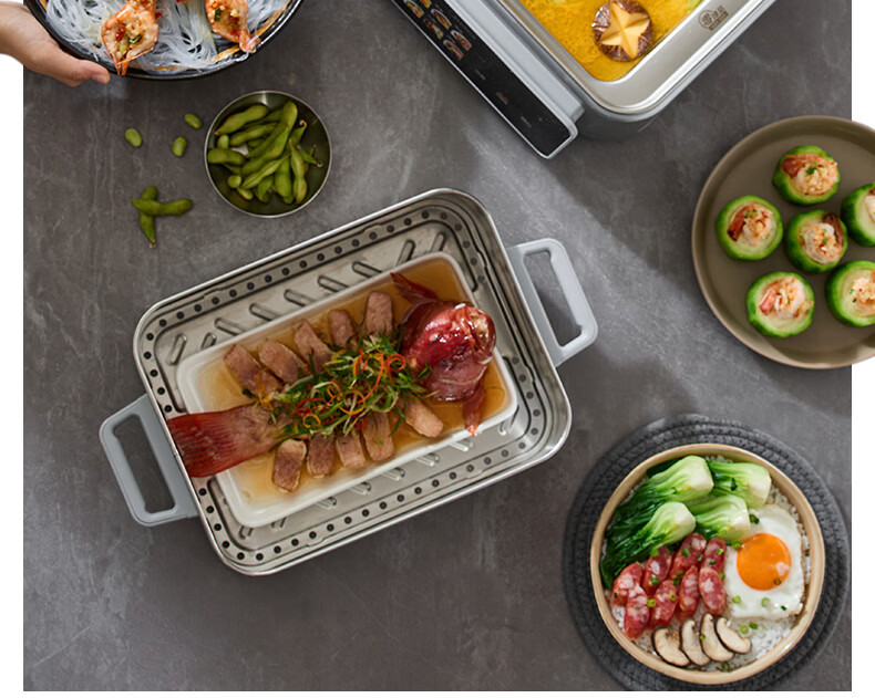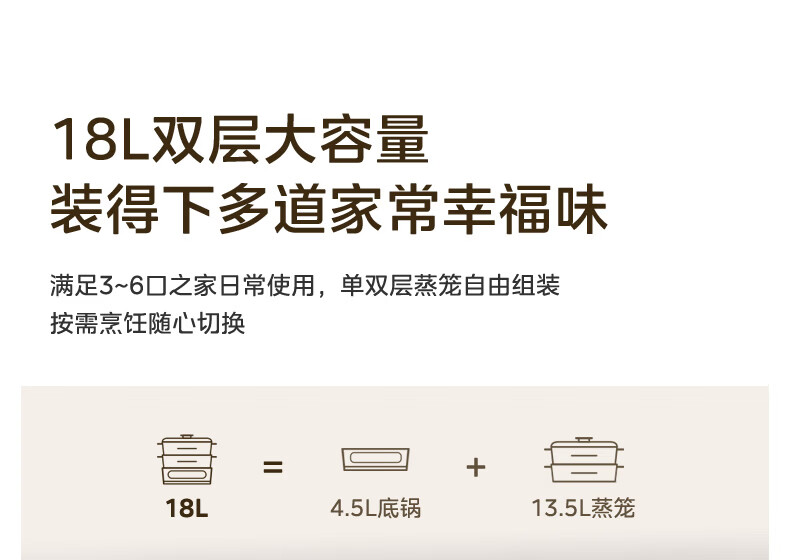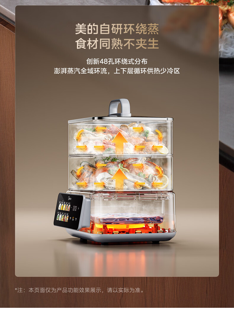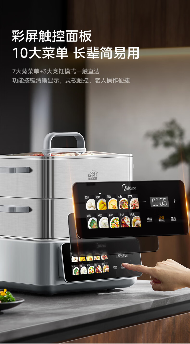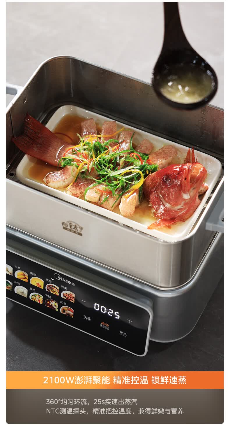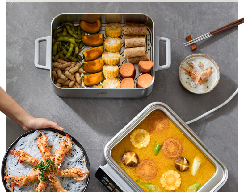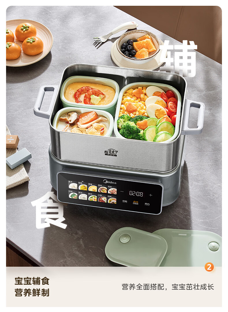美的(Midea)钛钢蒸魔方电蒸锅炖蒸涮煮一体多功能电热锅家用18L三层大容量0涂层有钛不锈钢煮锅ZGC3023F2Ti