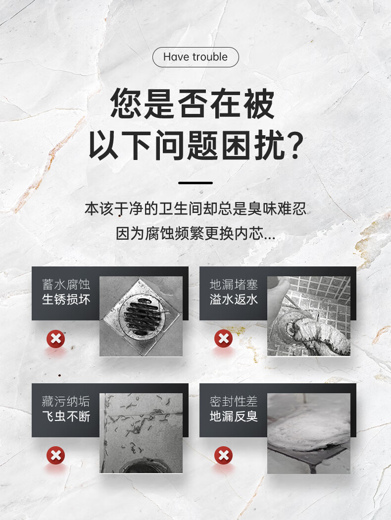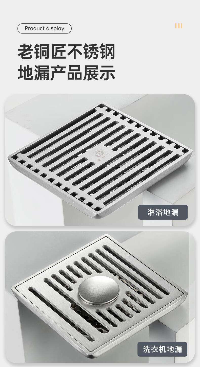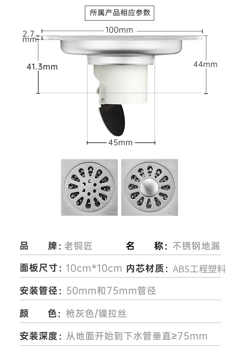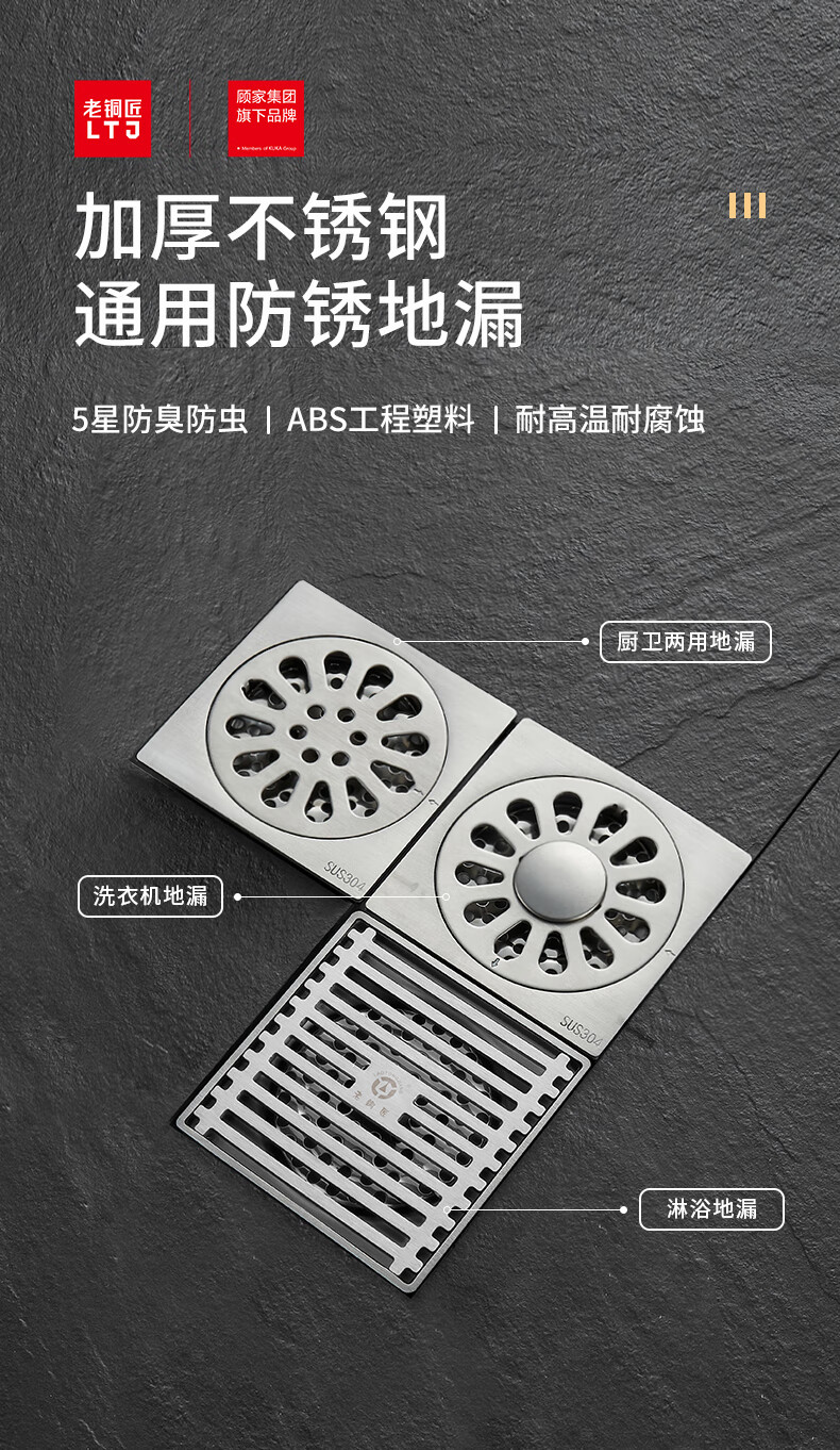 老铜匠(LTJ)防臭地漏304不锈钢卫生间浴室淋浴洗衣机厨房通用地漏 【加厚304不锈钢】淋浴地漏