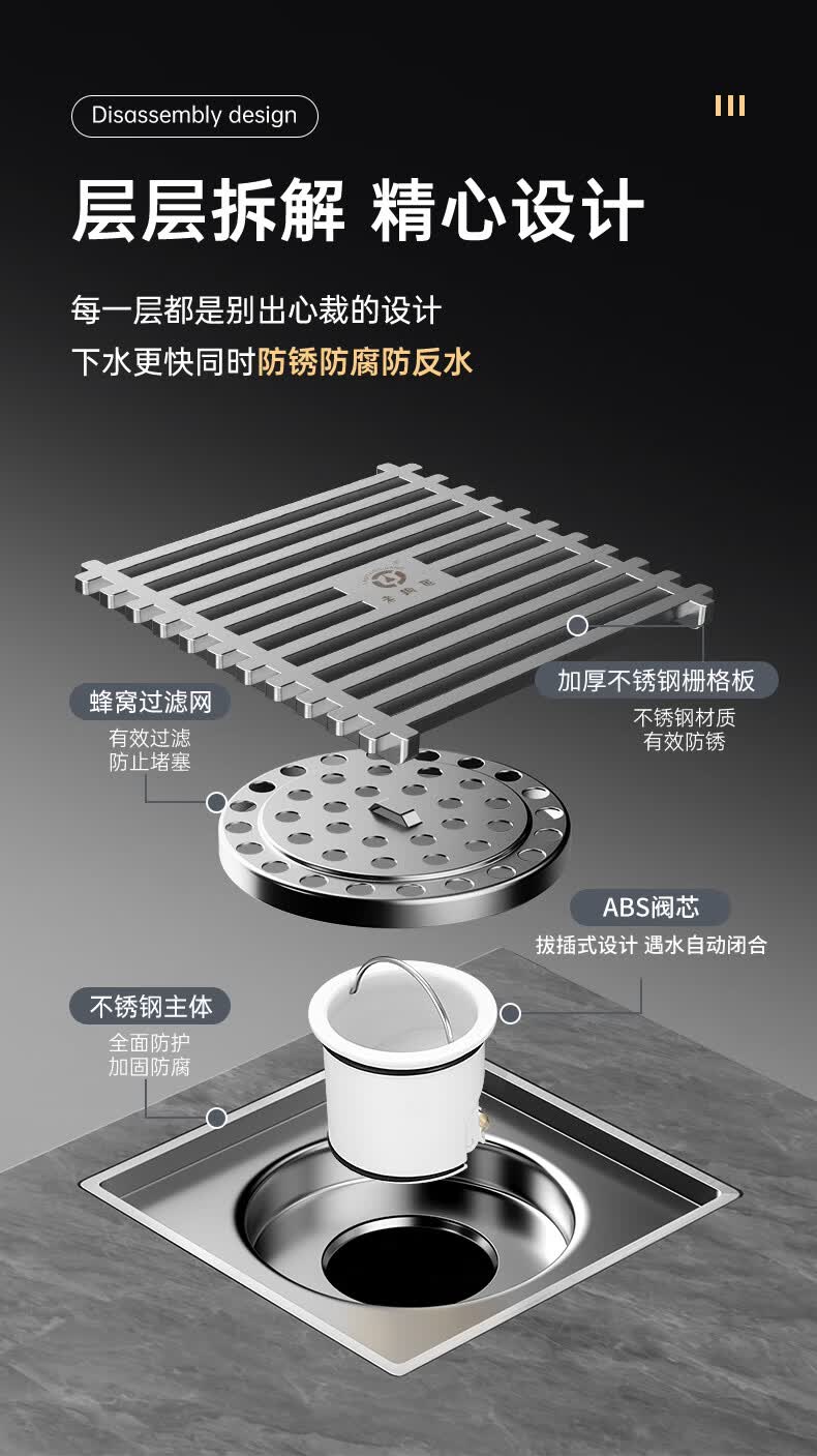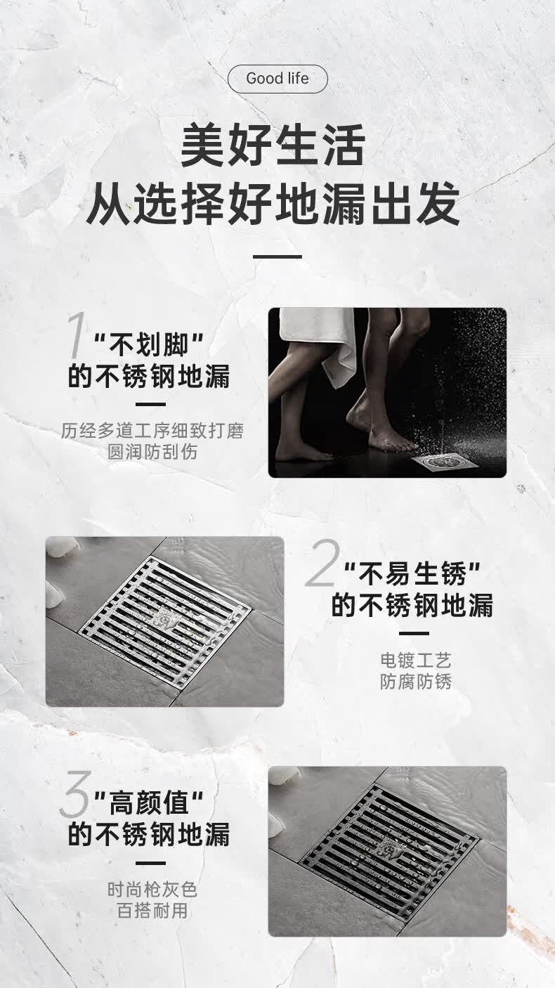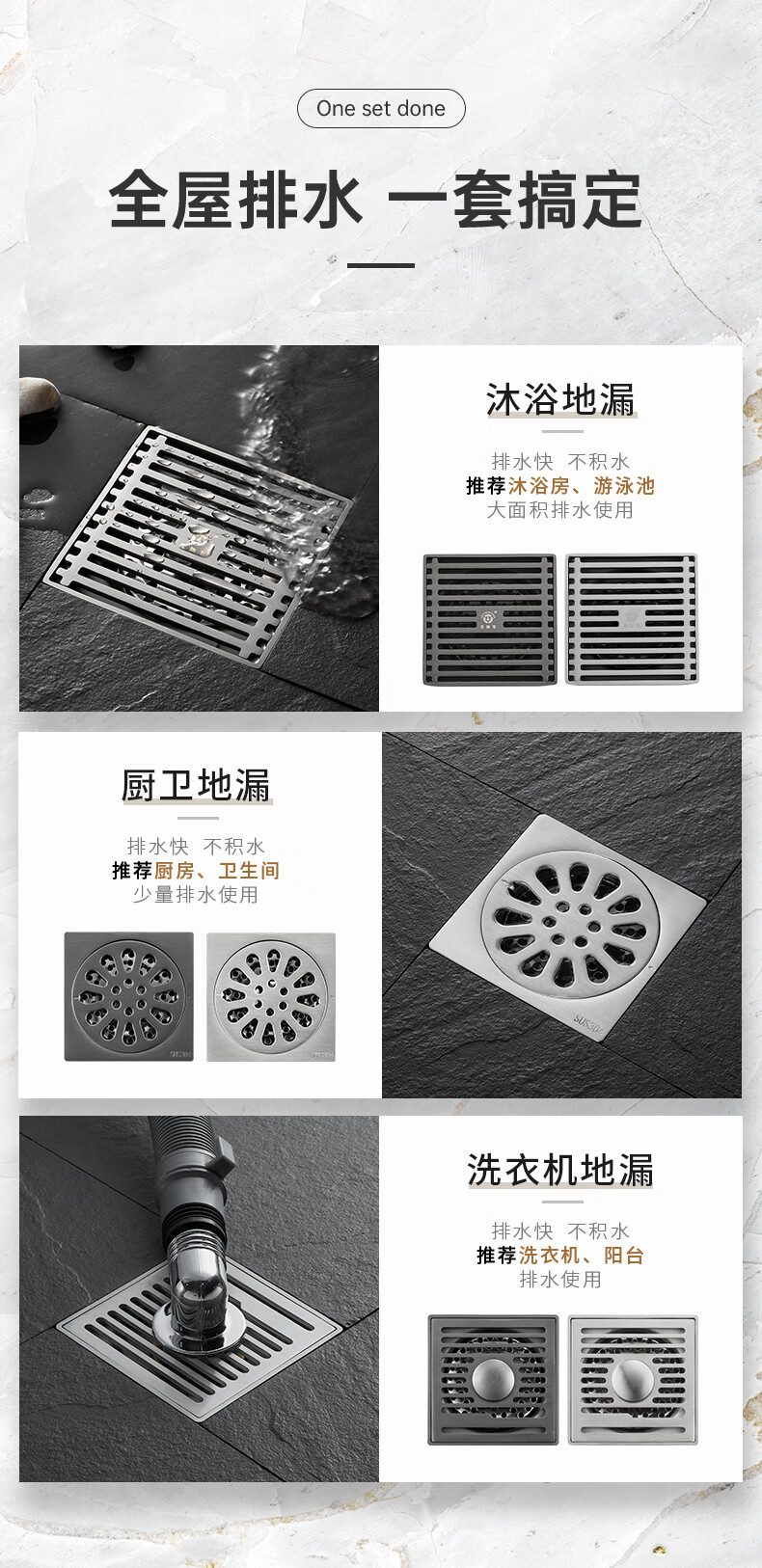 老铜匠(LTJ)防臭地漏304不锈钢卫生间浴室淋浴洗衣机厨房通用地漏 【加厚304不锈钢】淋浴地漏