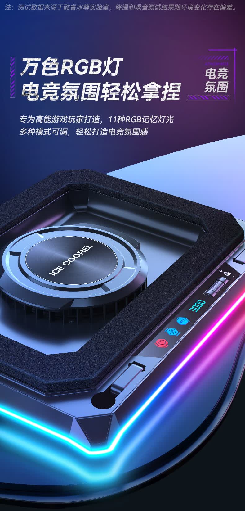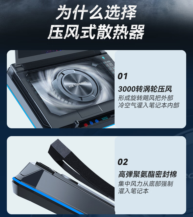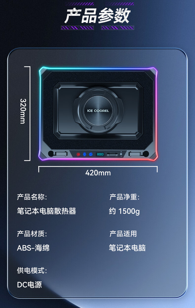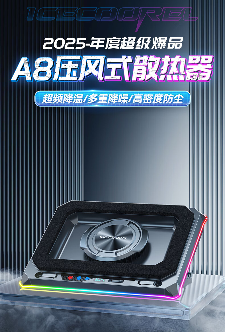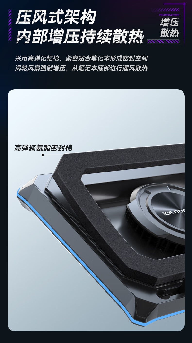 酷睿冰尊(ICE COOREL)笔记本散热器支架 压风式电竞RGB大风力调速降温静音适用联想拯救者极光华硕