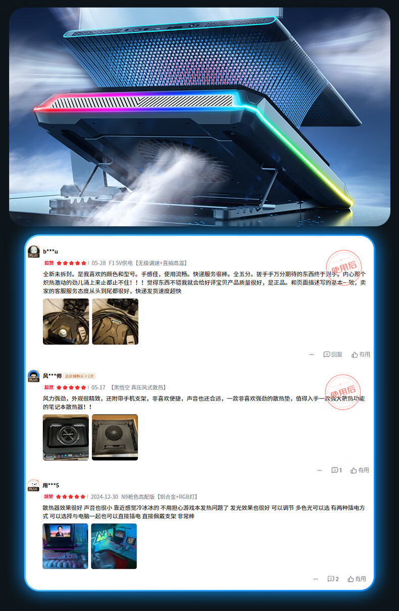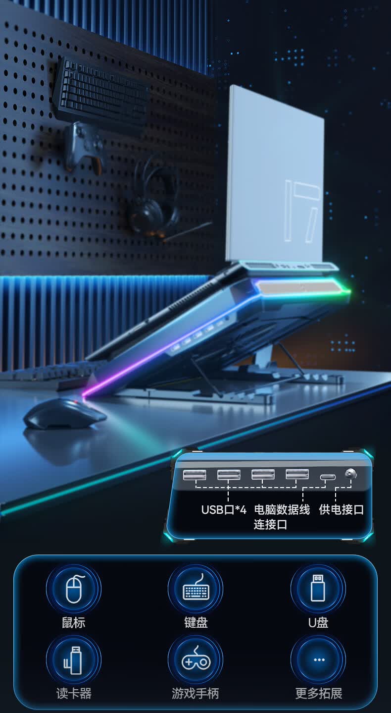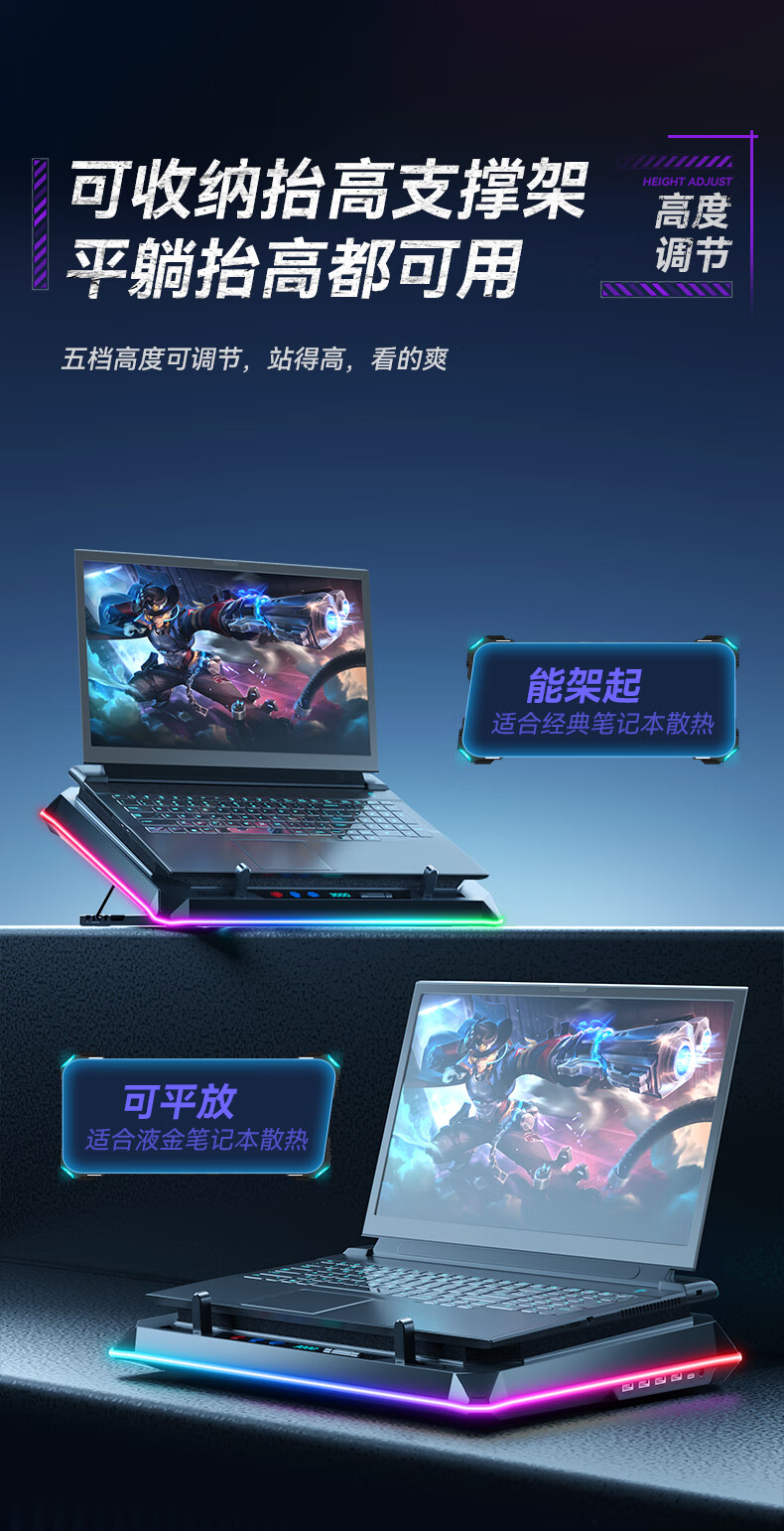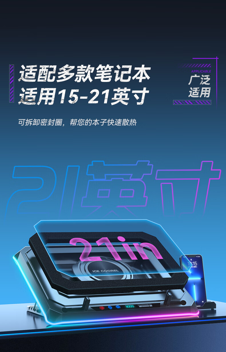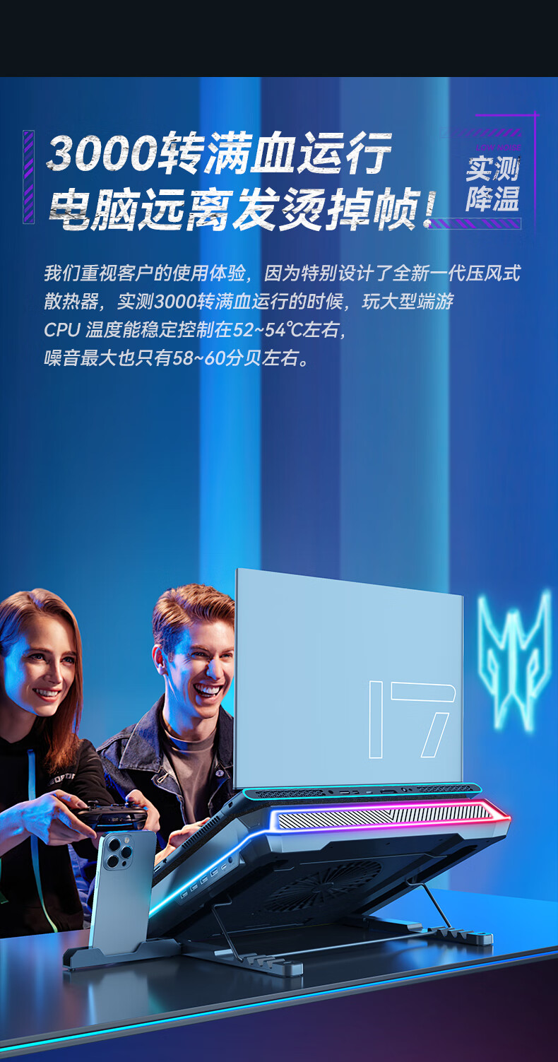 酷睿冰尊(ICE COOREL)笔记本散热器支架 压风式电竞RGB大风力调速降温静音适用联想拯救者极光华硕
