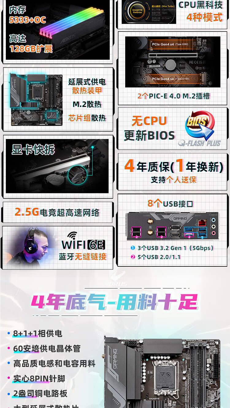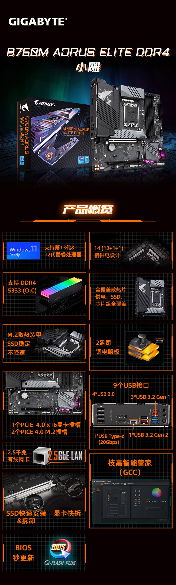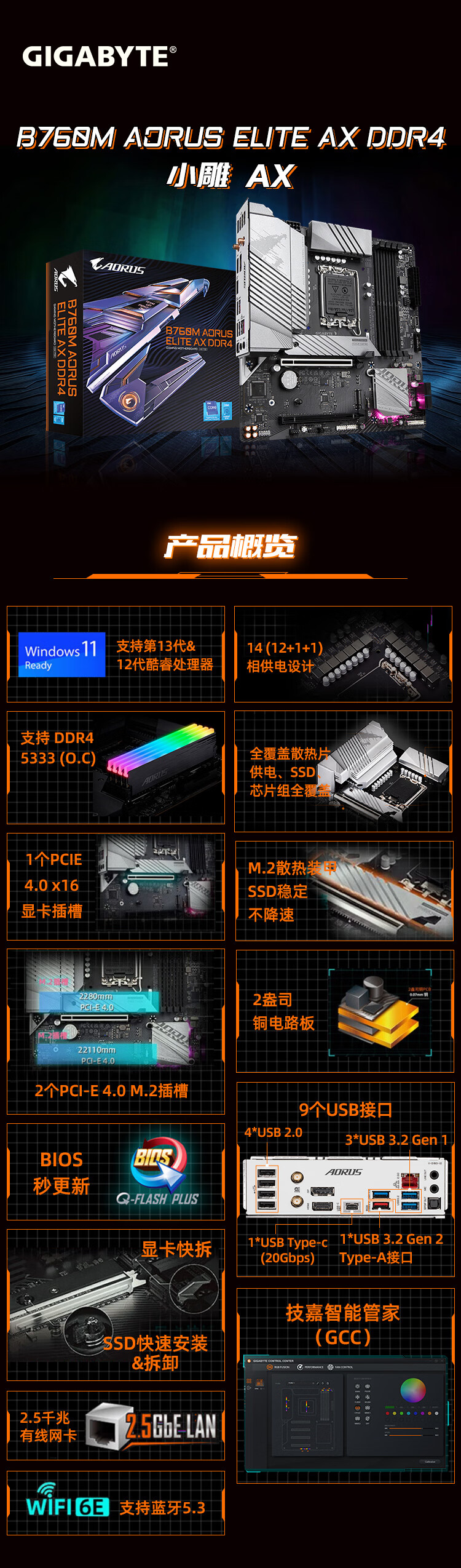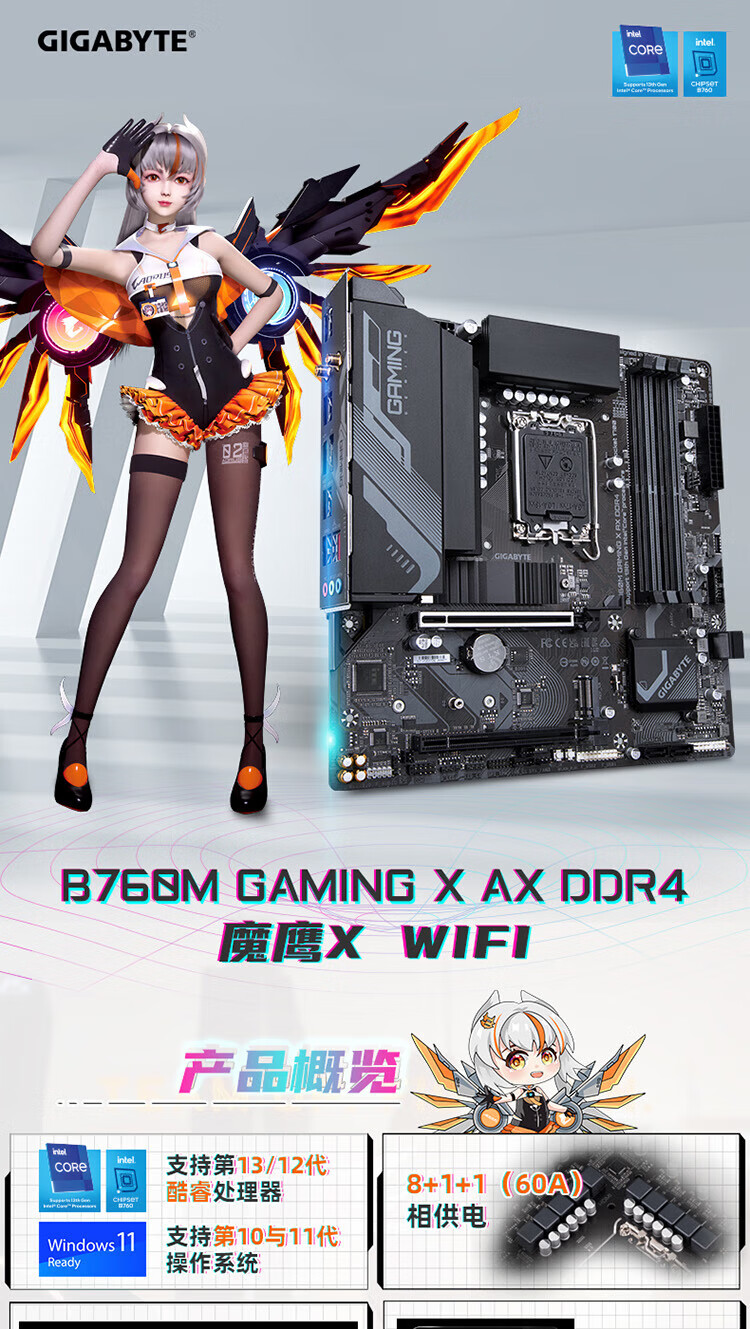 技嘉i5 12490F/13490F英特尔盒装13600KF/14600KF 搭 B760M魔鹰X/小雕/冰雕/Z790M主板CPU套装板套装 B760M GAMING X WF6E D4 G5 i5 14600KF/14核20线程