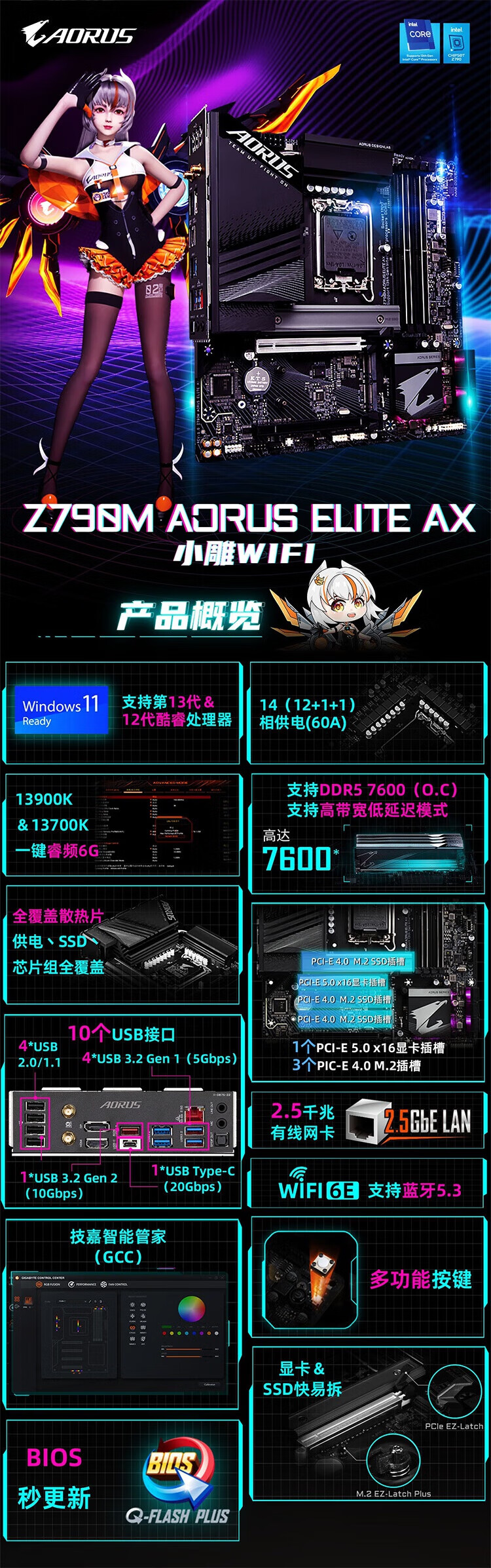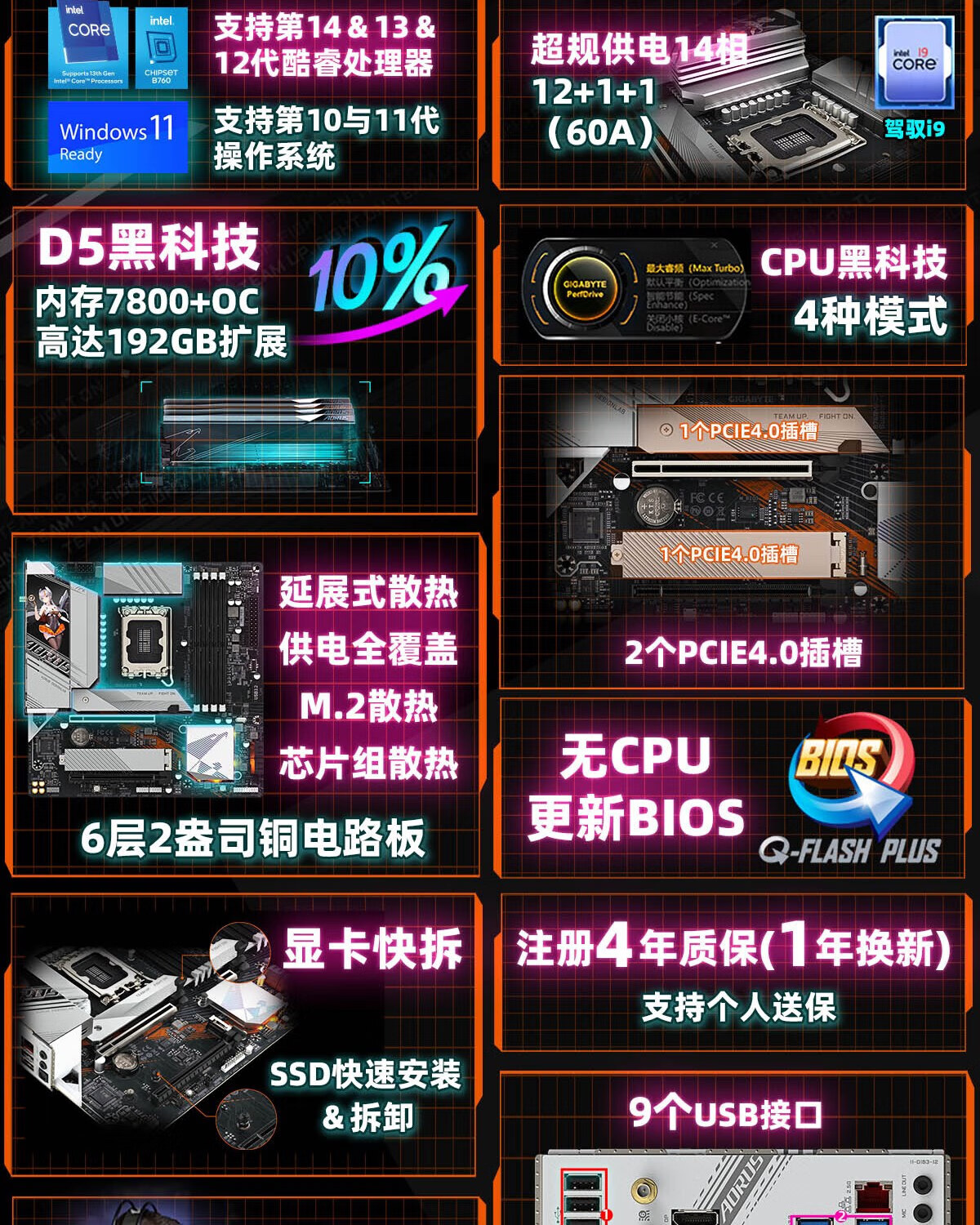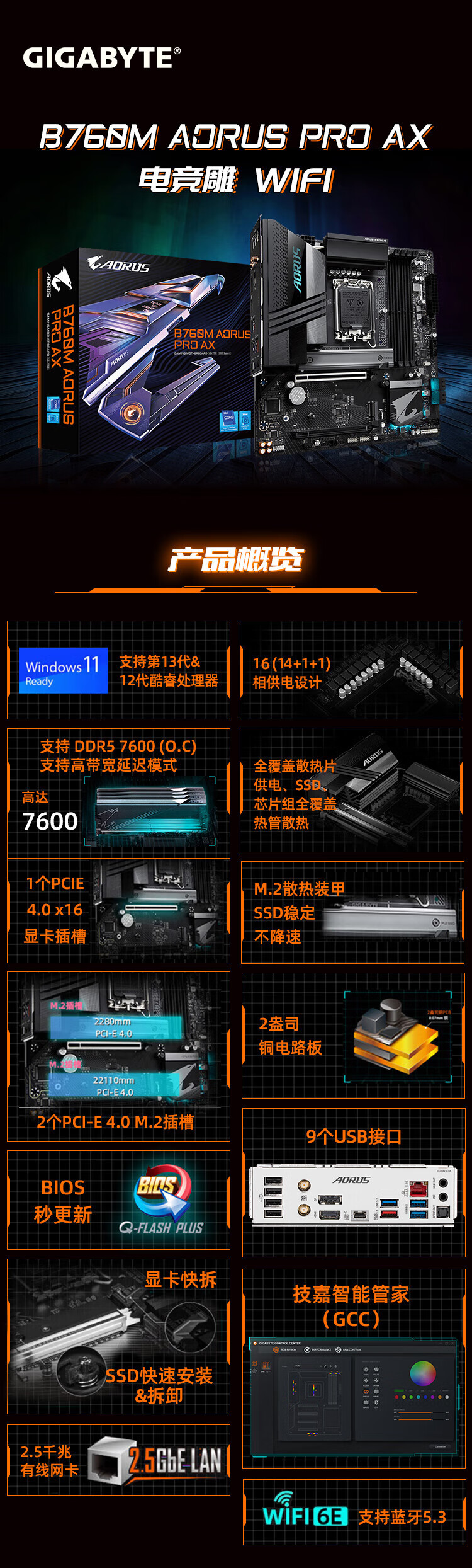 技嘉i5 12490F/13490F英特尔盒装13600KF/14600KF 搭 B760M魔鹰X/小雕/冰雕/Z790M主板CPU套装板套装 B760M GAMING X WF6E D4 G5 i5 14600KF/14核20线程