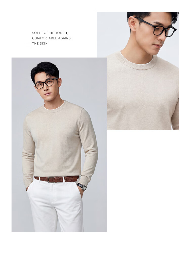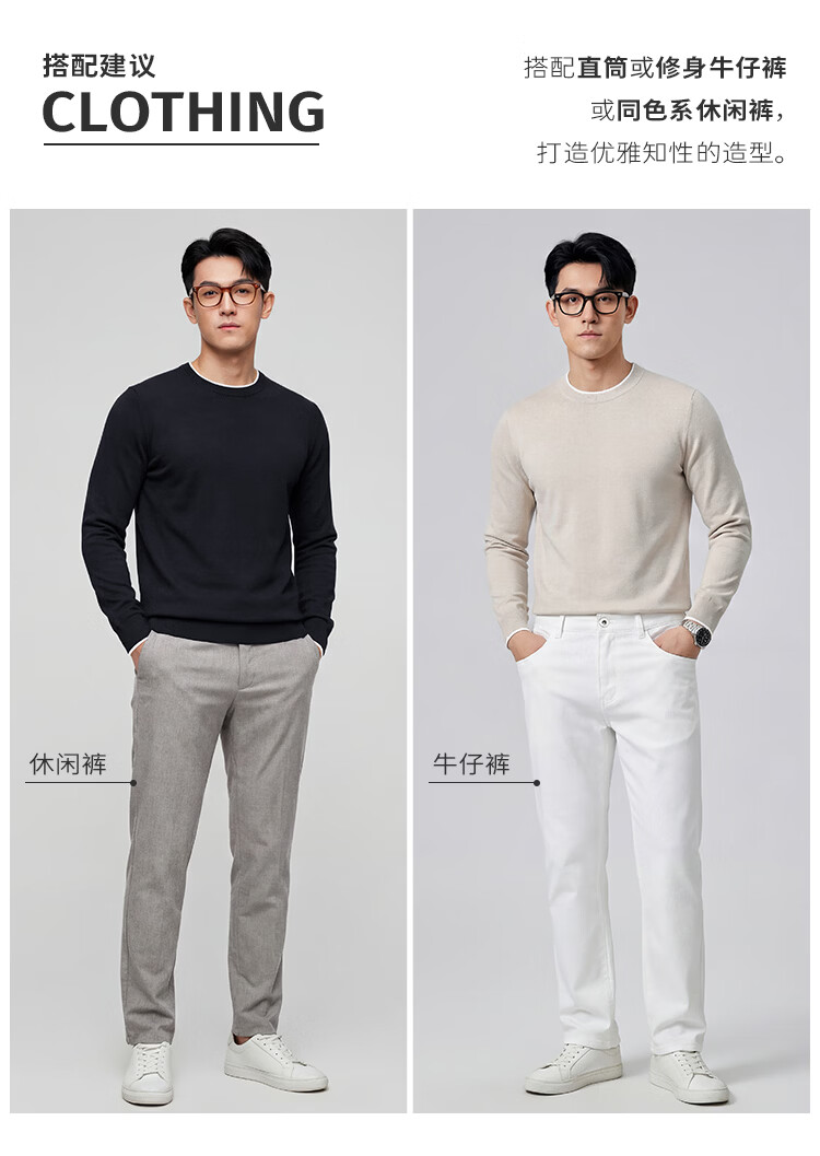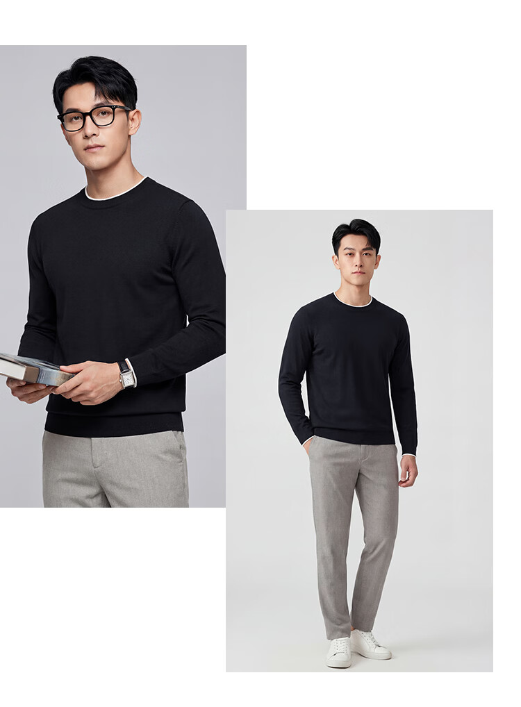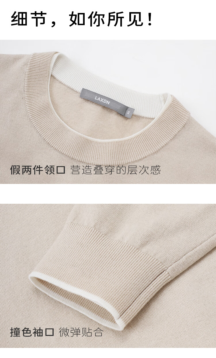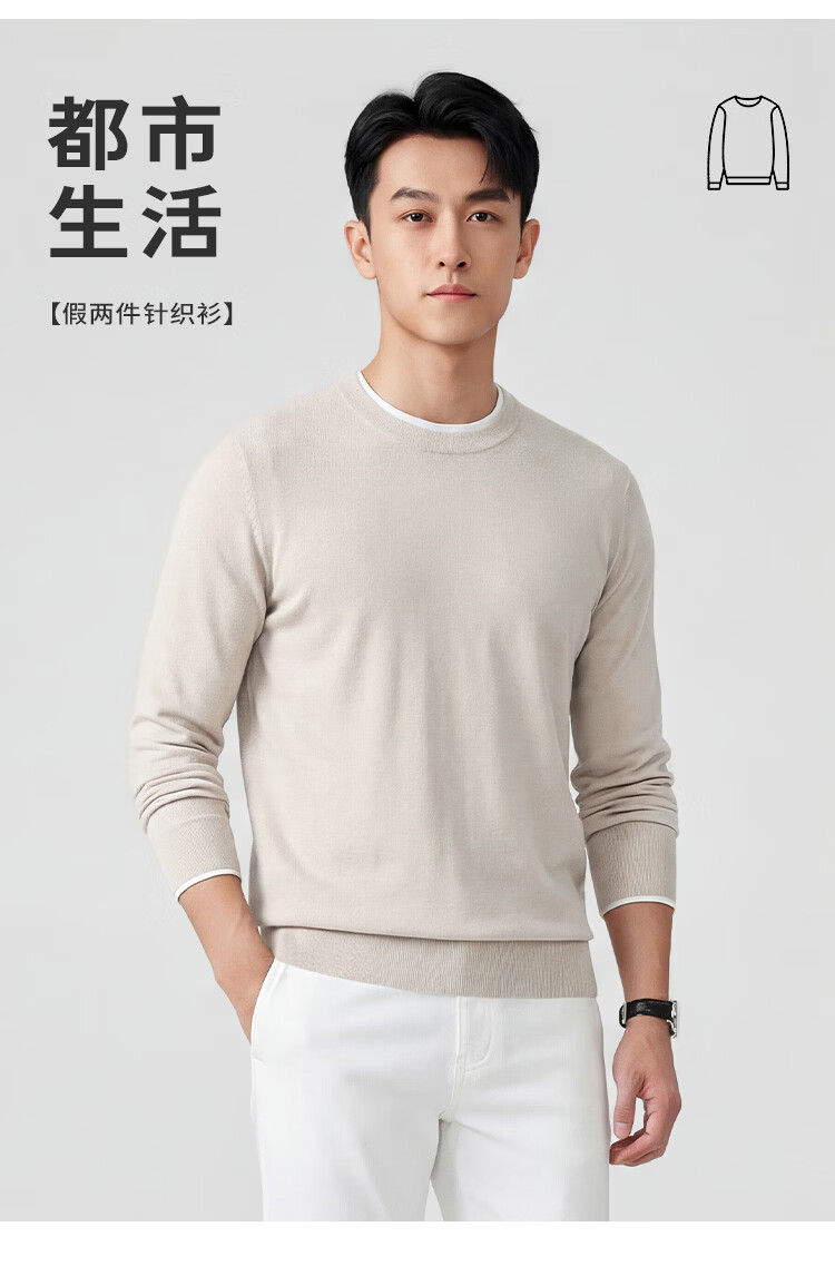 莱克斯顿针织衫男春秋【含山羊绒】圆领透气亲肤百搭假两件上衣毛衣男 藏青色 S