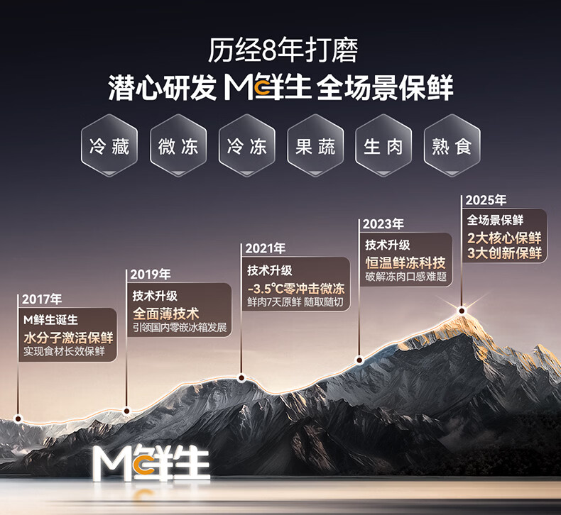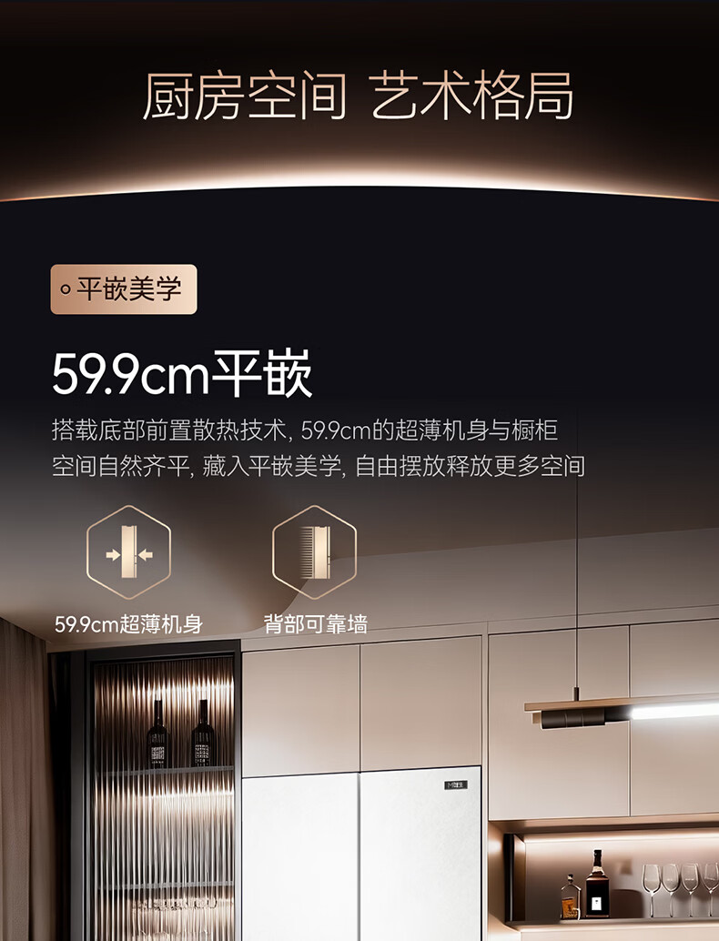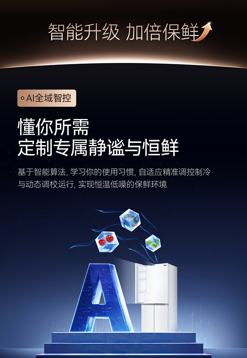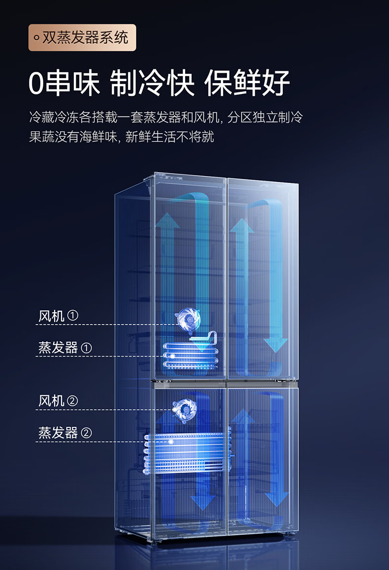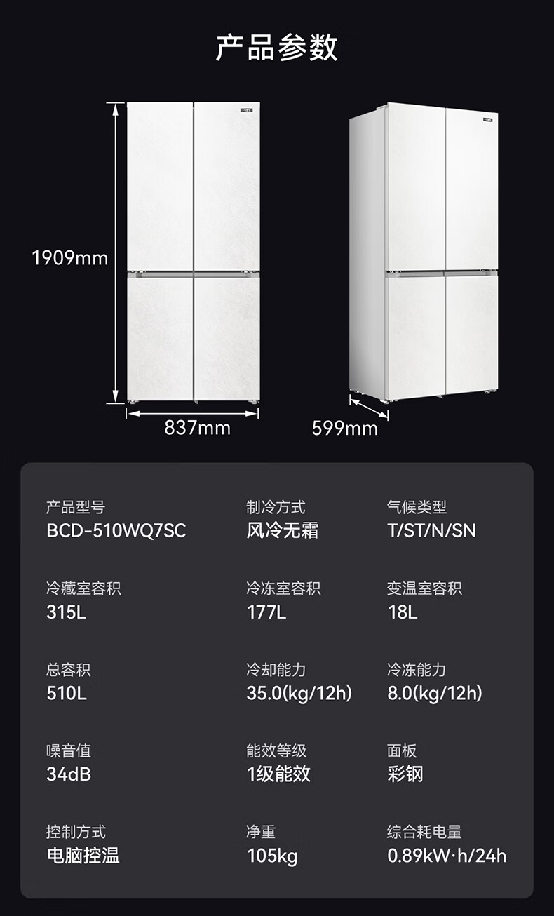 美菱M鲜生510升十字门冰箱恒温鲜冻超薄零嵌入式双系统底部散热一级能效BCD-510WQ7SC