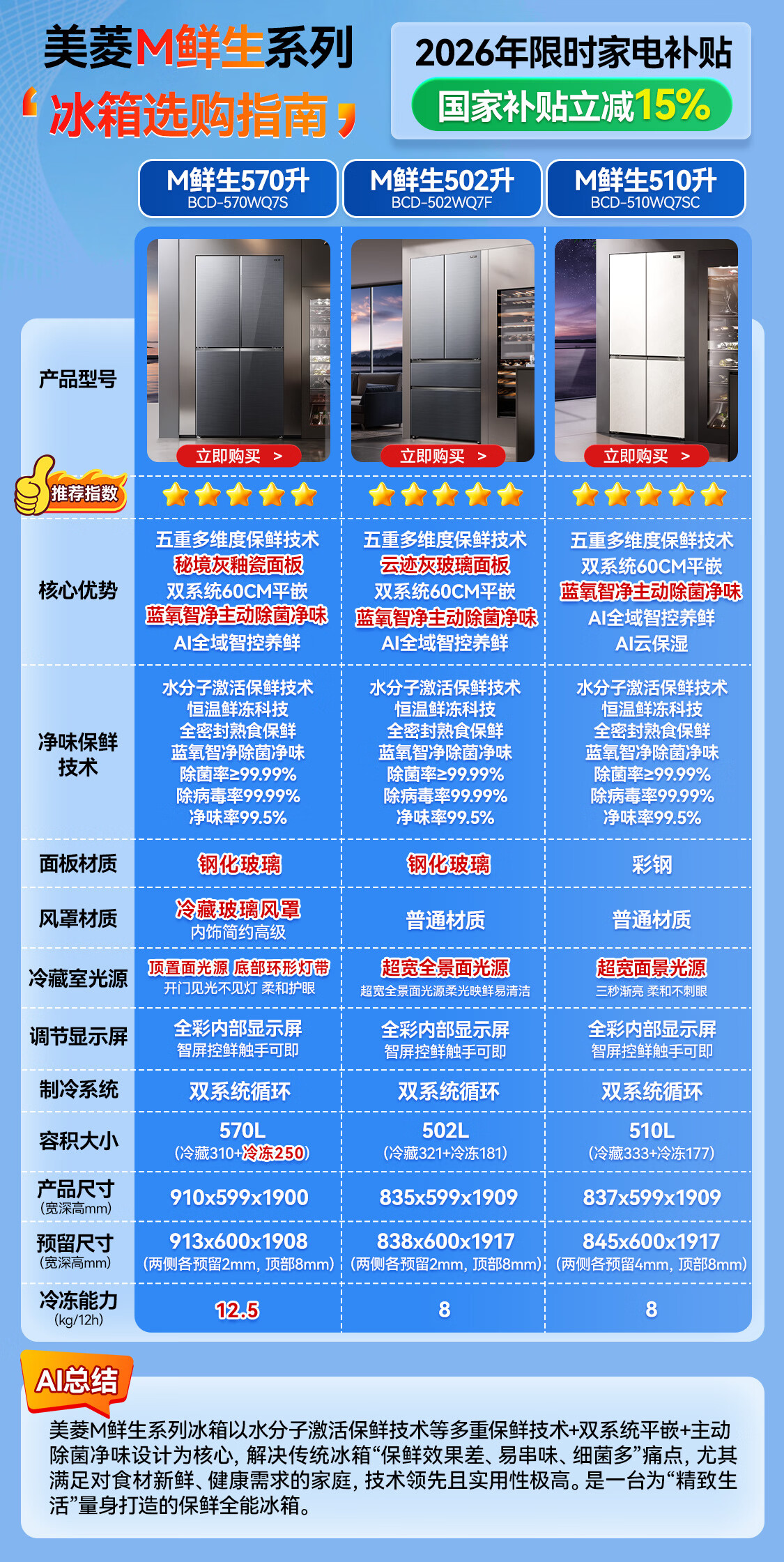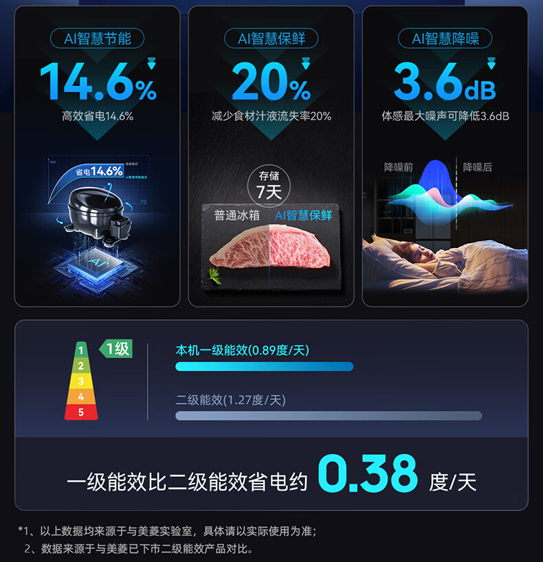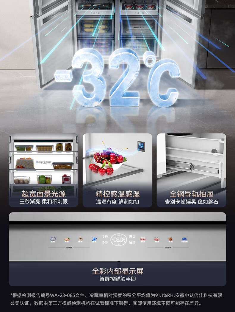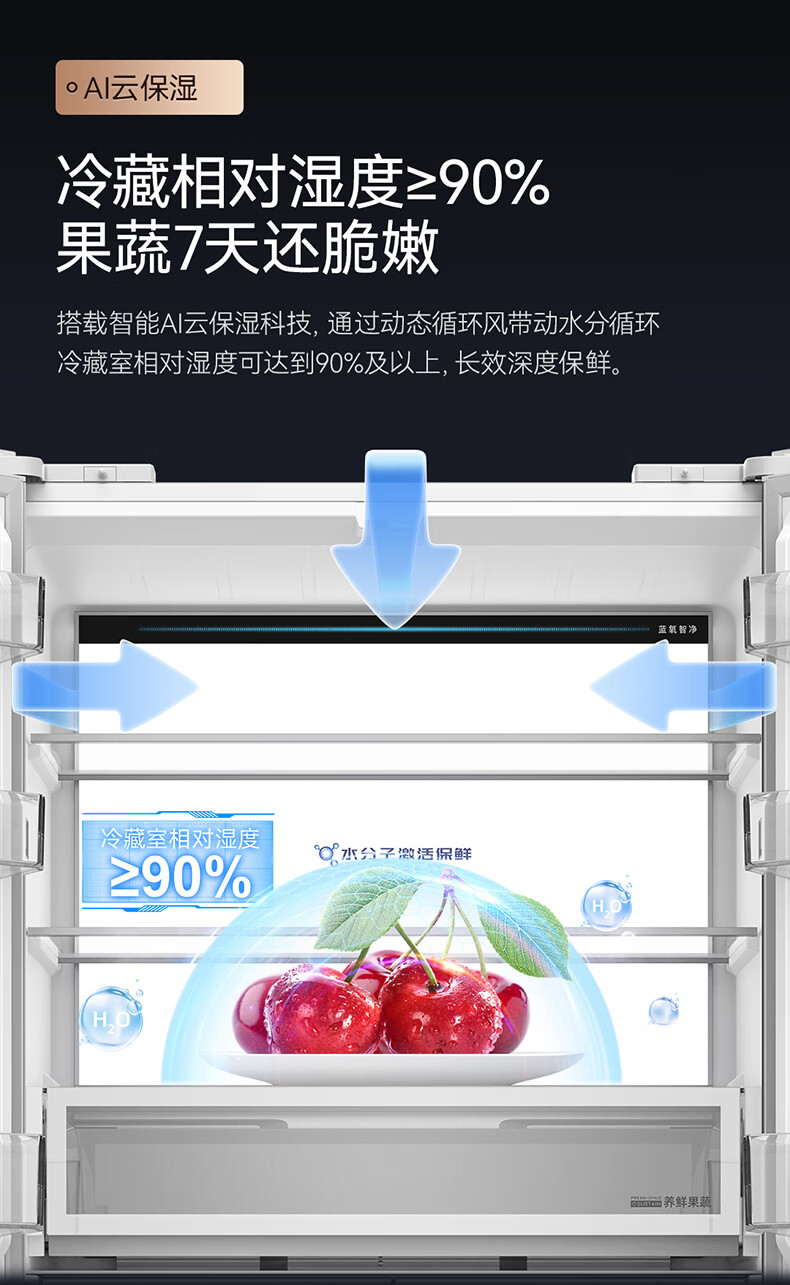 美菱M鲜生510升十字门冰箱恒温鲜冻超薄零嵌入式双系统底部散热一级能效BCD-510WQ7SC