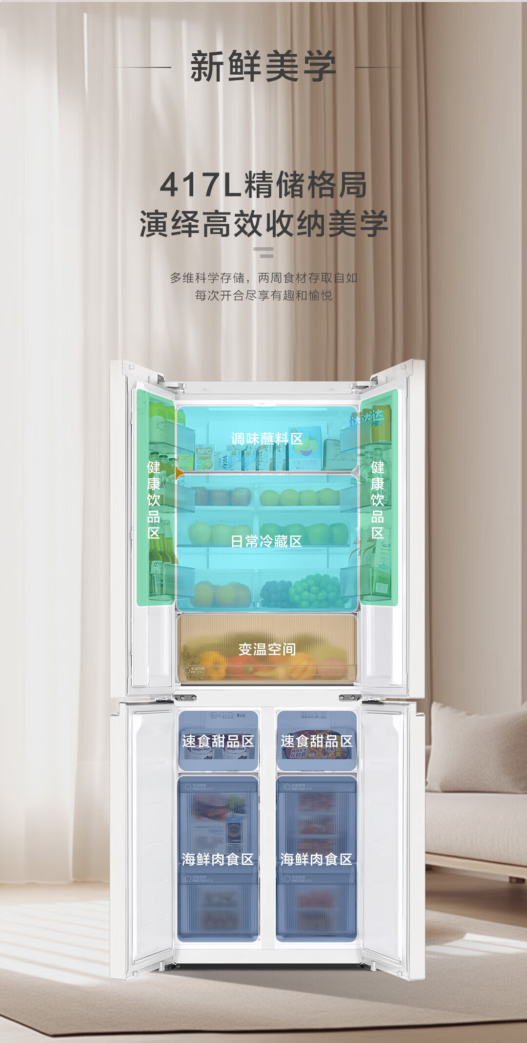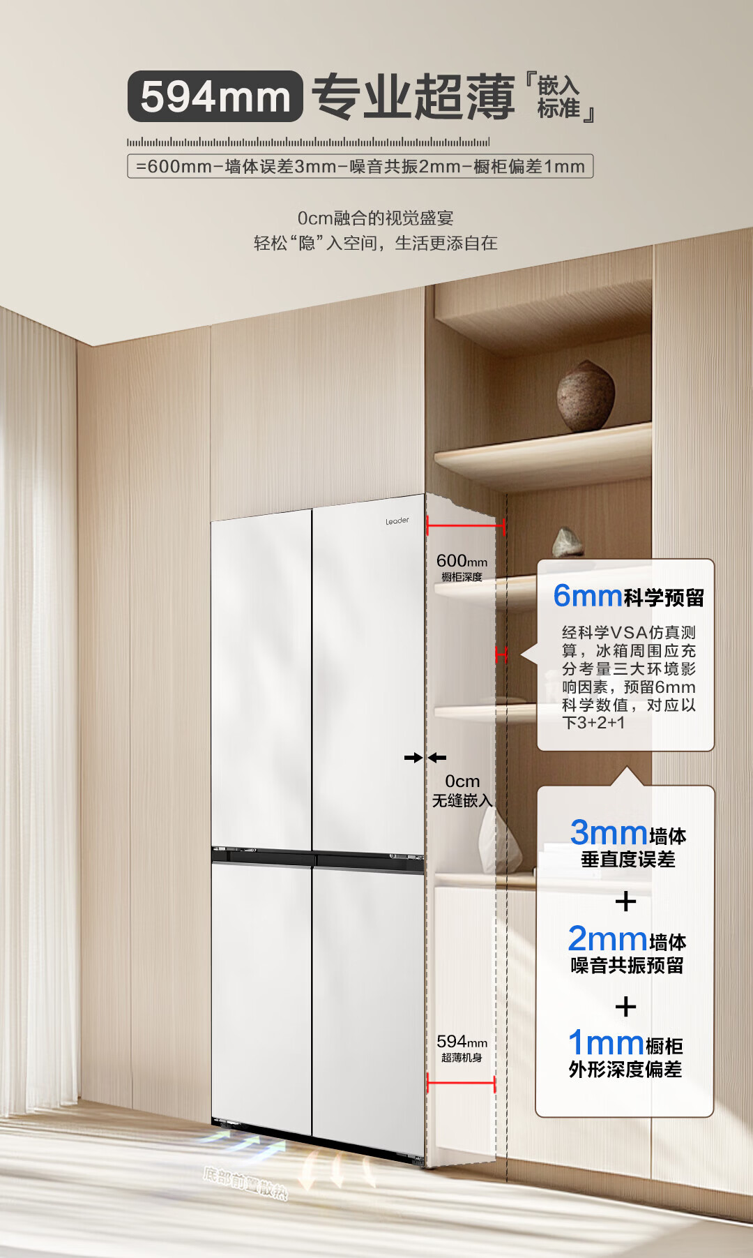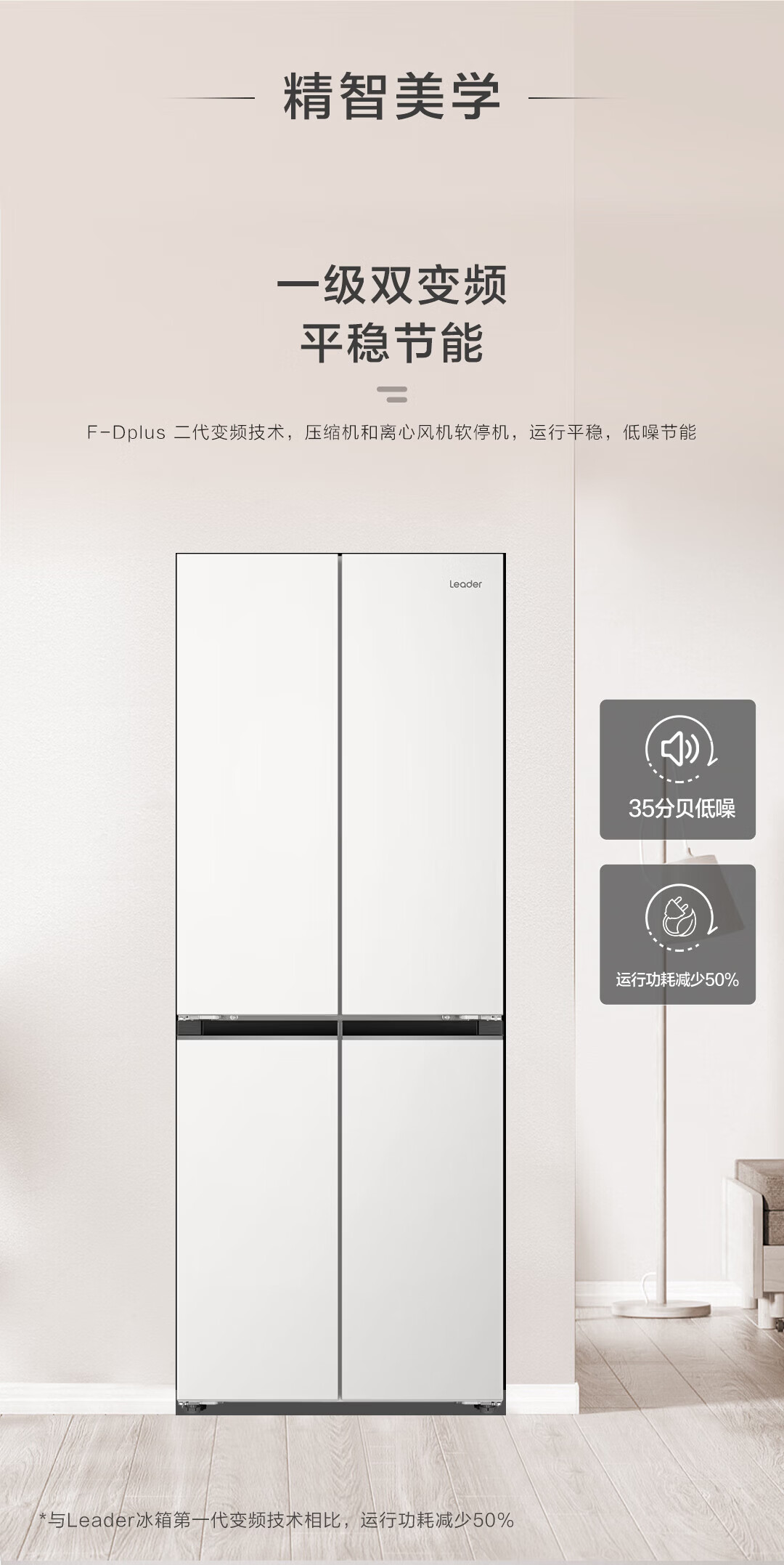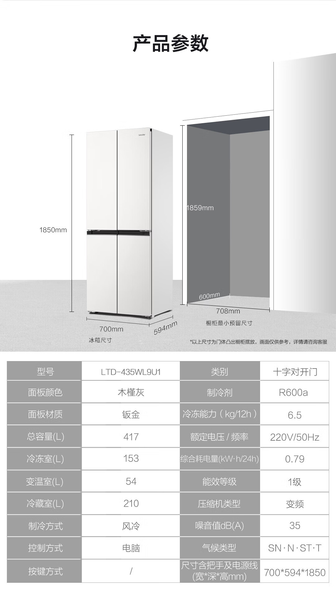 海尔(Haier)冰箱417升十字对开门四门594mm超薄零嵌入70cm宽一级能效双变频家用冰箱leader435系列国家补贴 咨询领优惠【417L+超薄零嵌入+黑金净化】