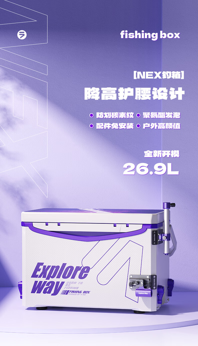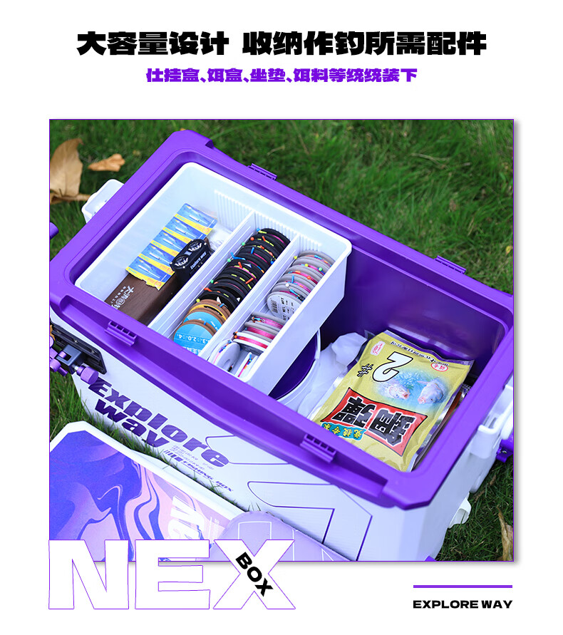 一味官旗化氏NEX钓箱全套 聚氨酯加厚四脚升降钓鱼箱桶钓鱼装备小钓箱 26.9L 实用版-右手版【满足90%垂钓场景】