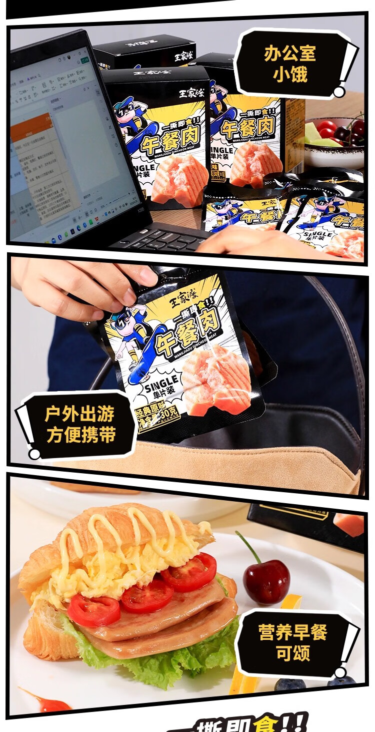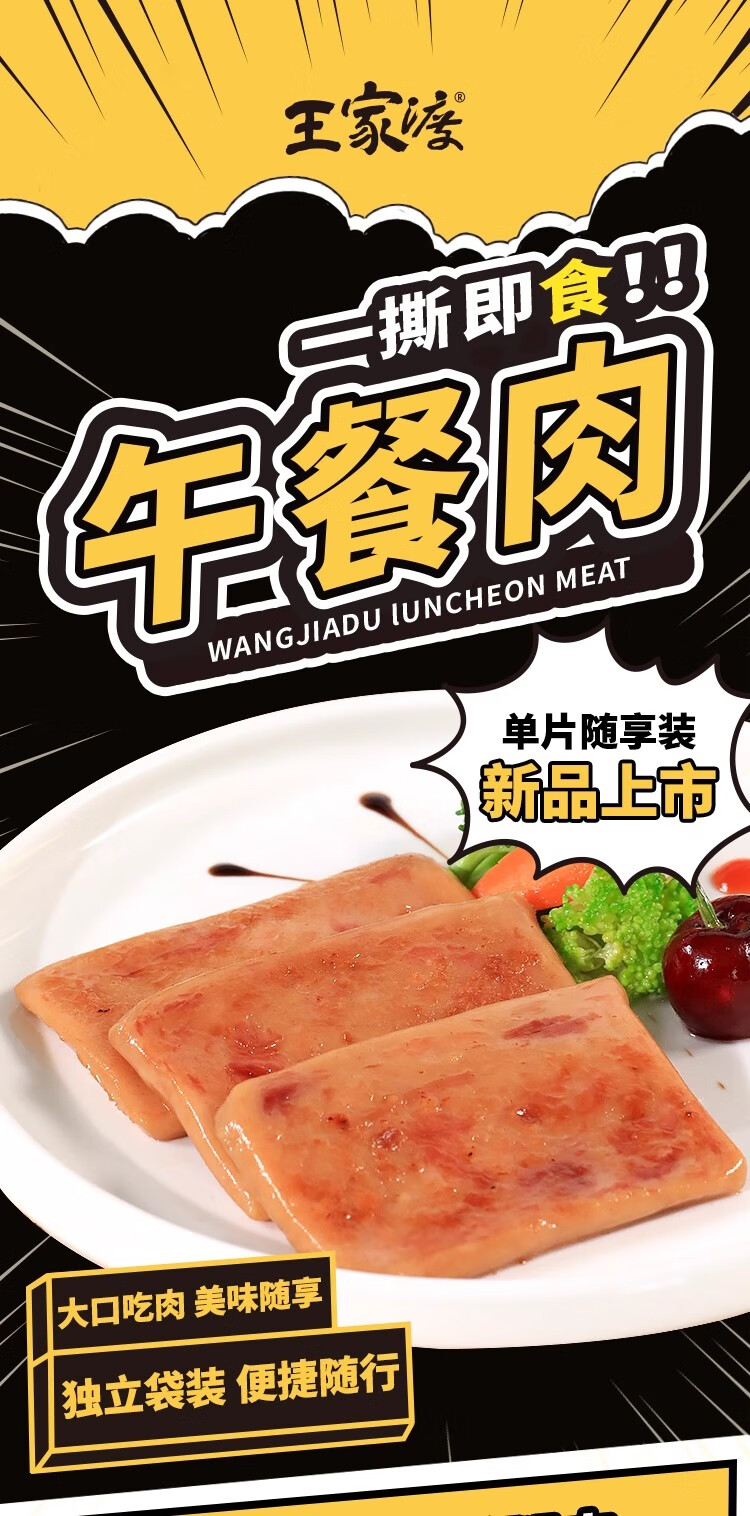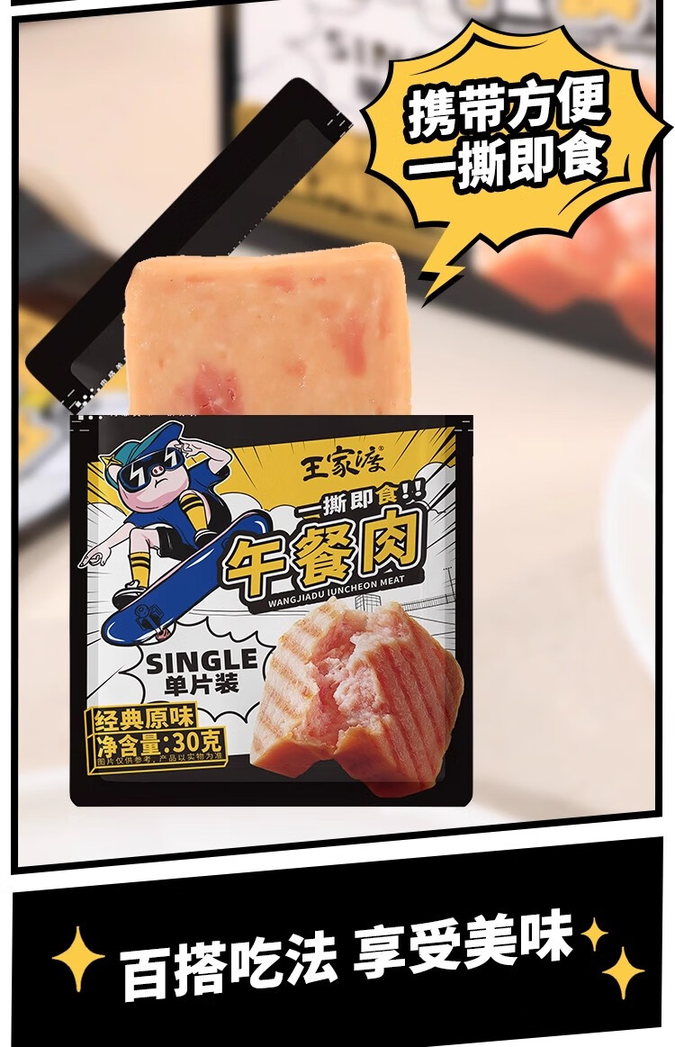 王家渡午餐肉独立片装开袋即食儿童早餐罐头火锅空气炸锅夜宵出游 【原味午餐肉】240g*3盒