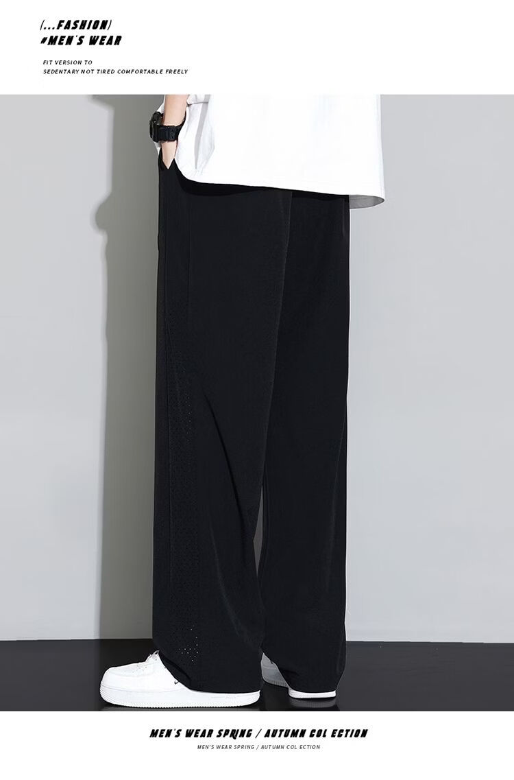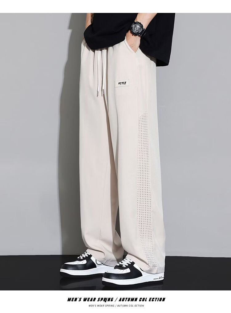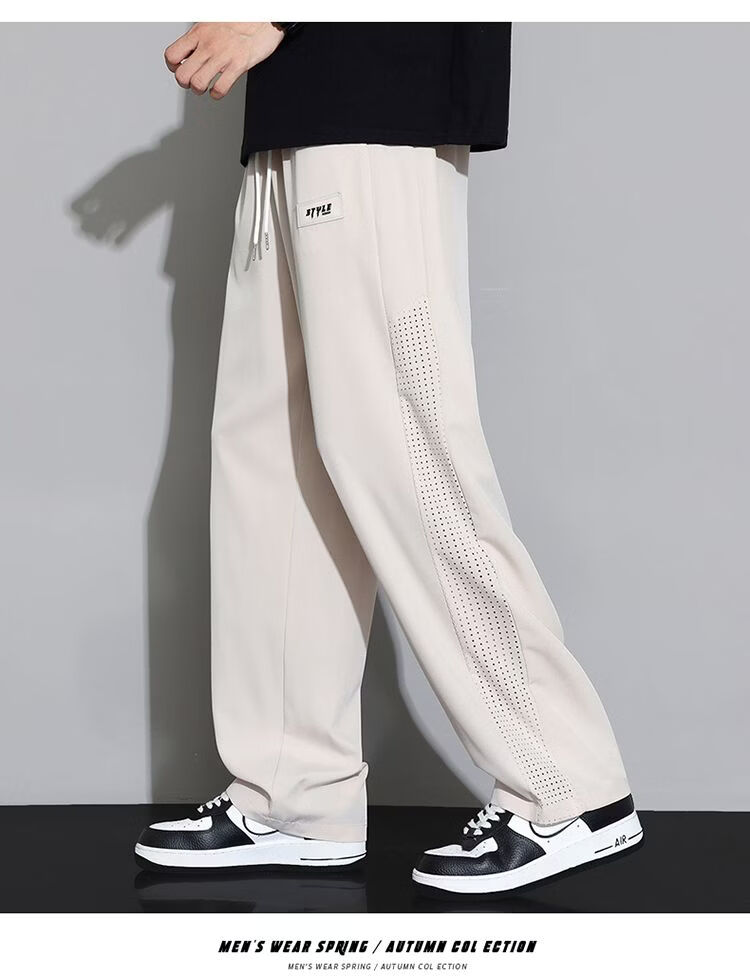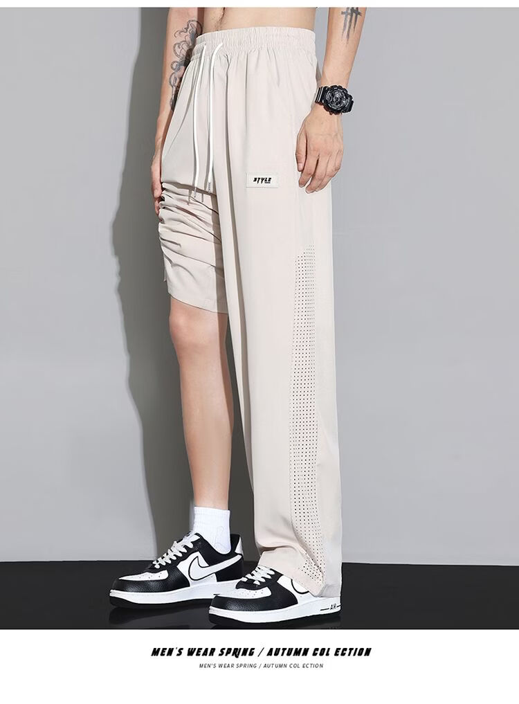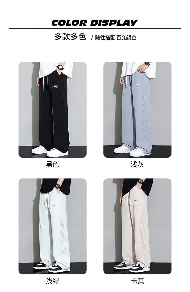 真维斯冰丝裤男夏季薄款空调裤速干网眼宽松直筒长裤子运动休闲裤 卡其 M