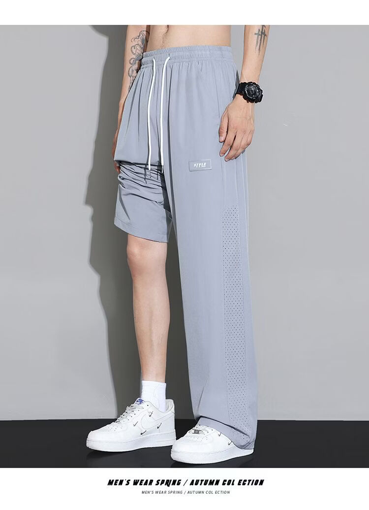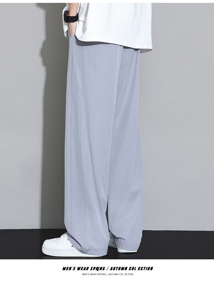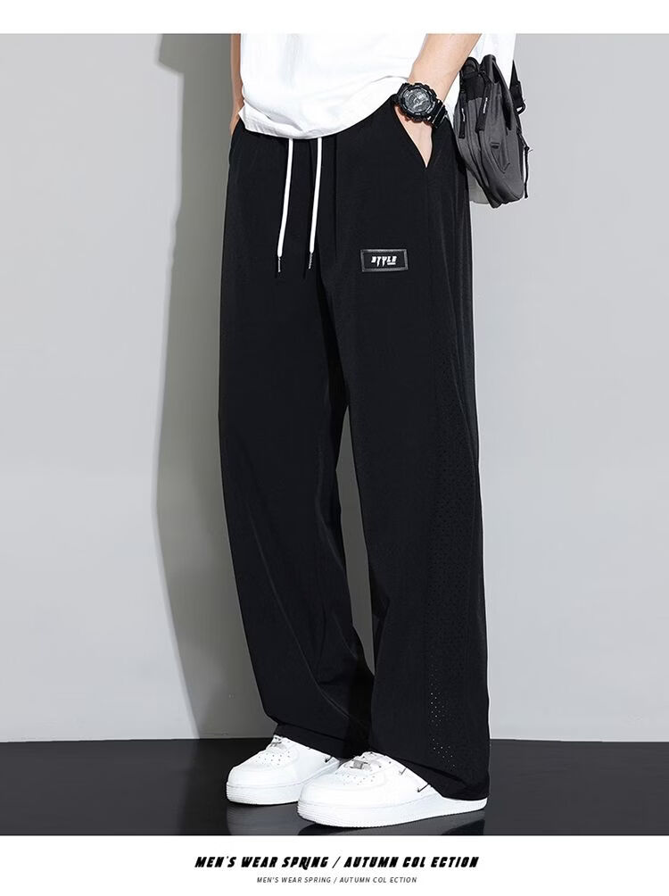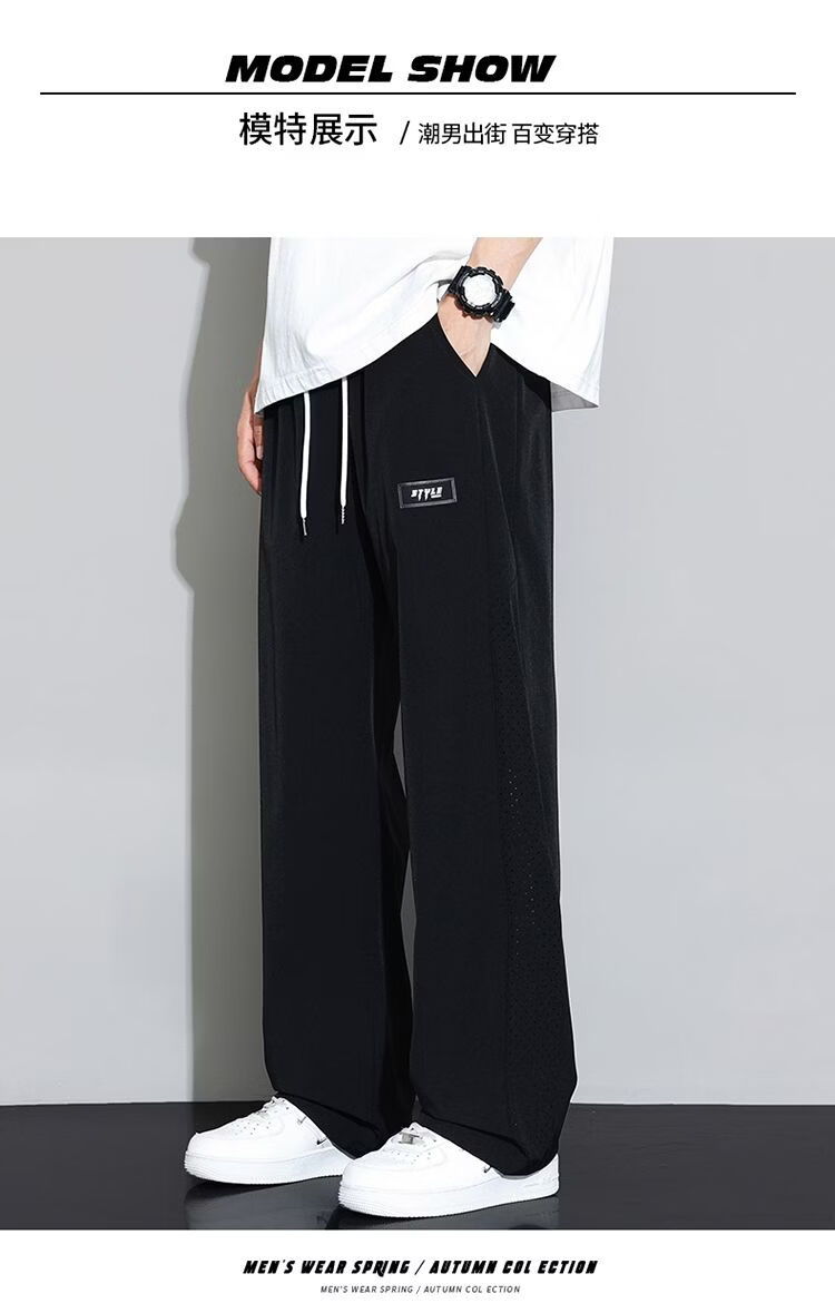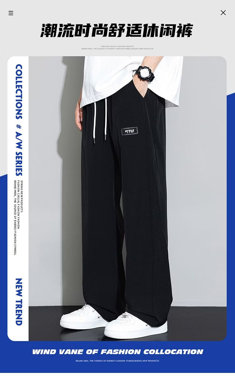 真维斯冰丝裤男夏季薄款空调裤速干网眼宽松直筒长裤子运动休闲裤 卡其 M